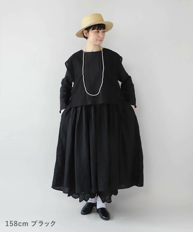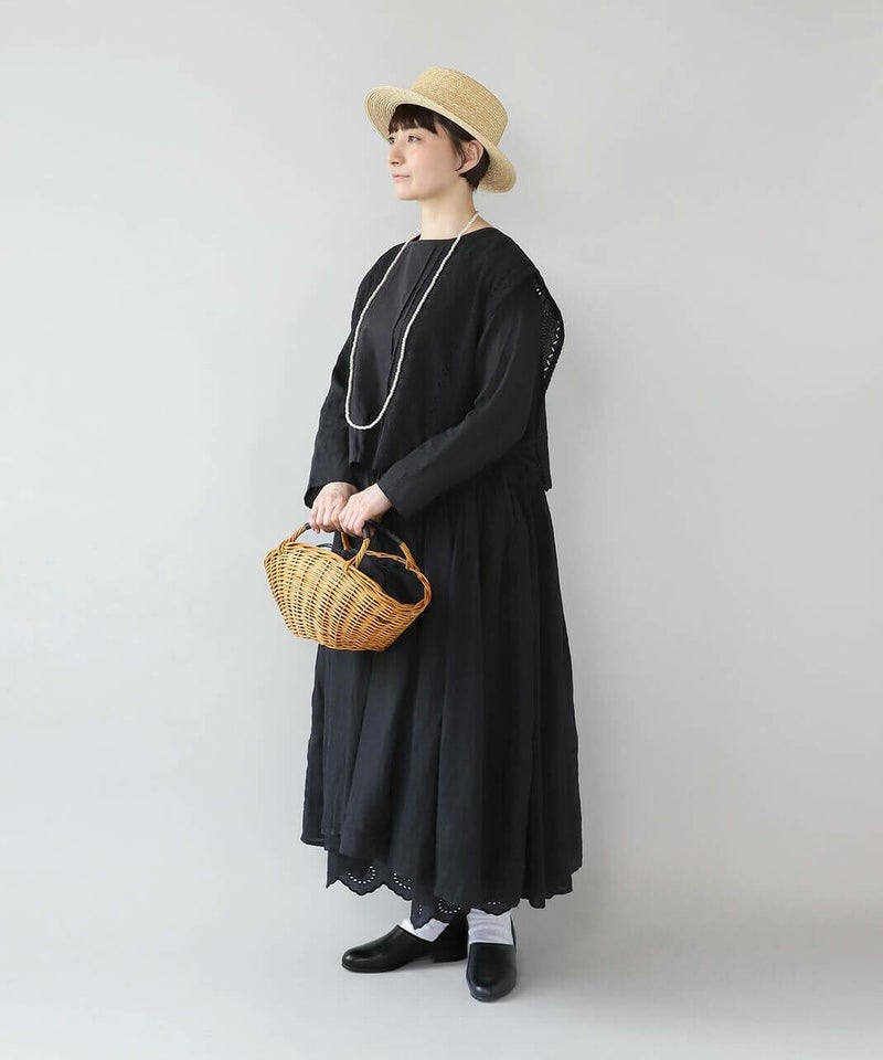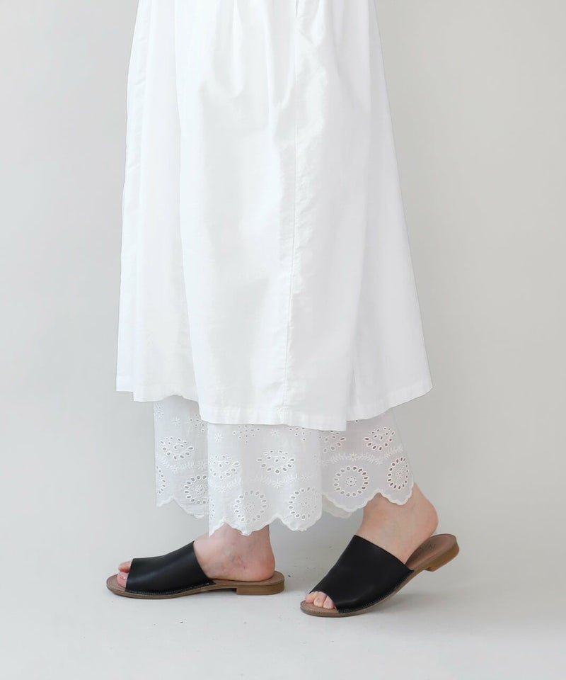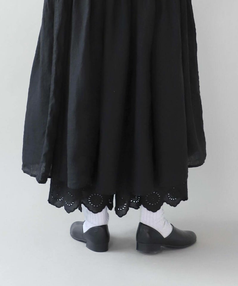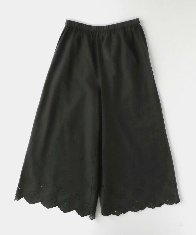 薄手のコットン生地を使用したペチパンツです。 全体的にゆったりとしたサイズ感で、解放感のある履き心地。スカートやワンピースを履く際、生地が足にまとわりつくのを軽減します。また、インナーの透け防止にも効果的。裾にはスカラップ刺繍が施されており、可愛らしいデザインです。