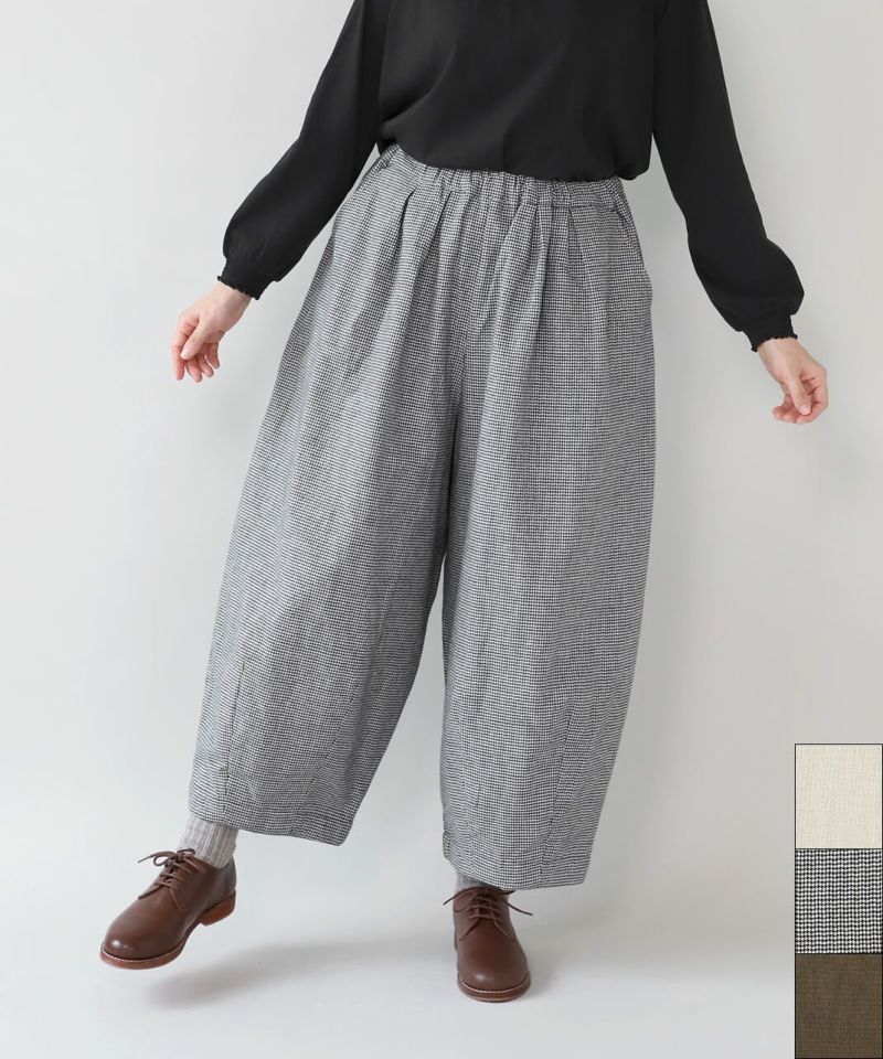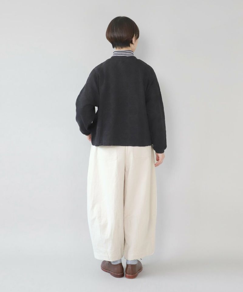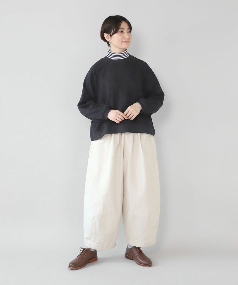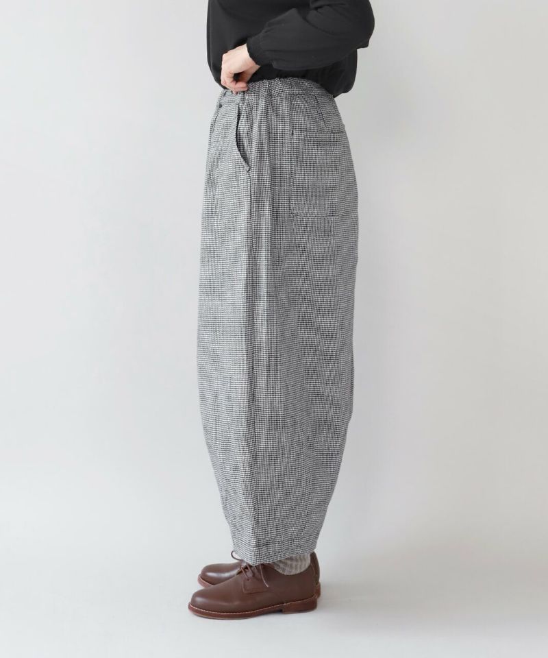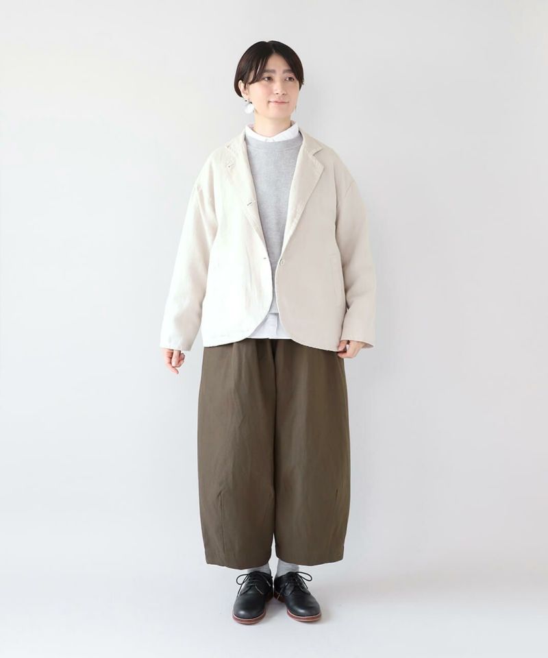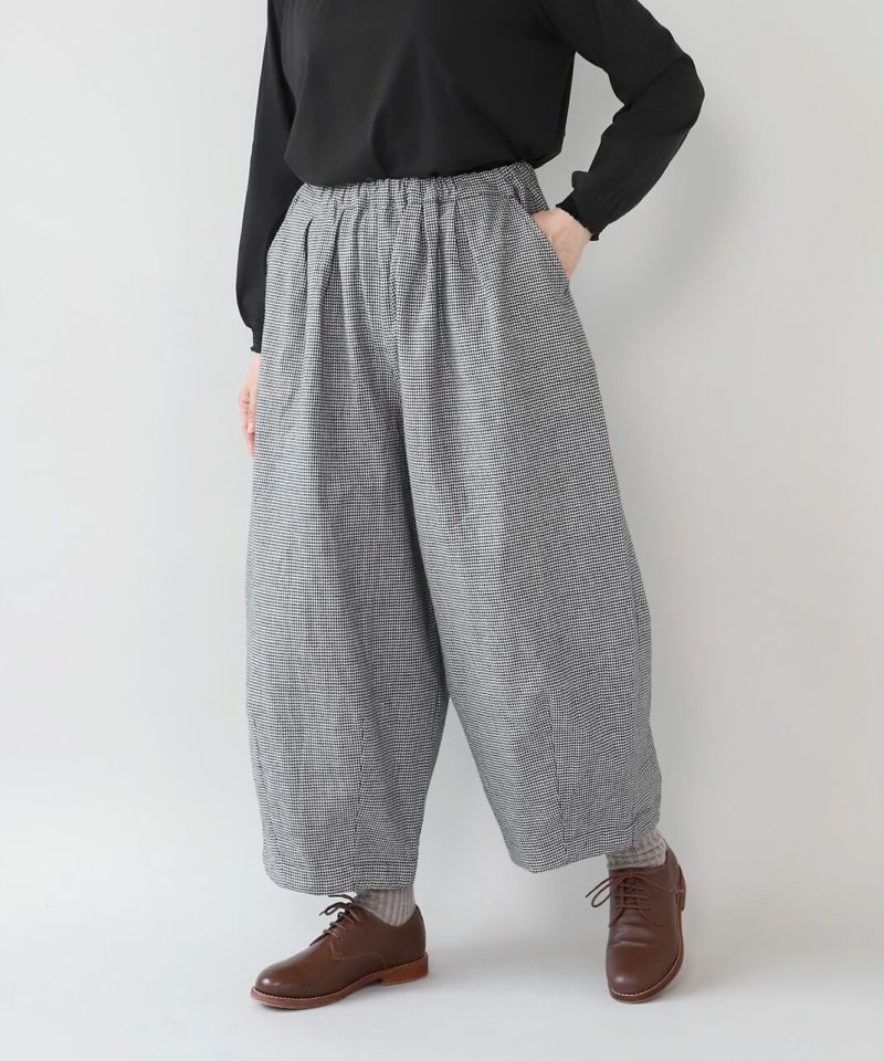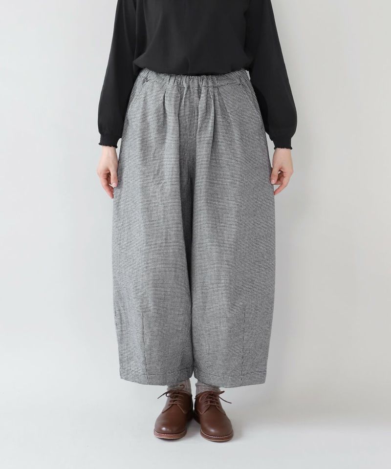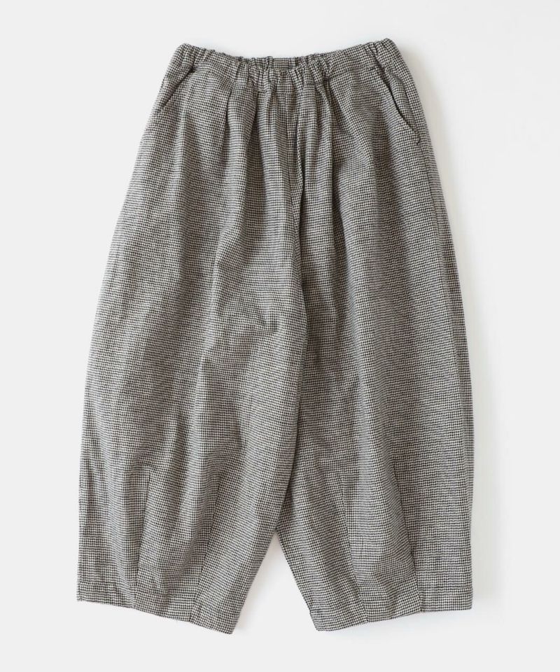 ダブルガーゼ仕立てのコットンリネン生地を使用したタックバルーンパンツです。ウエスト周りがゴム仕様のためリラックスした履き心地。はじめは少しハリがありますが、履くほどに馴染むダブルガーゼ仕立てです。程よいバルーン感と丈はバランスのとりやすい人気の1着です。
