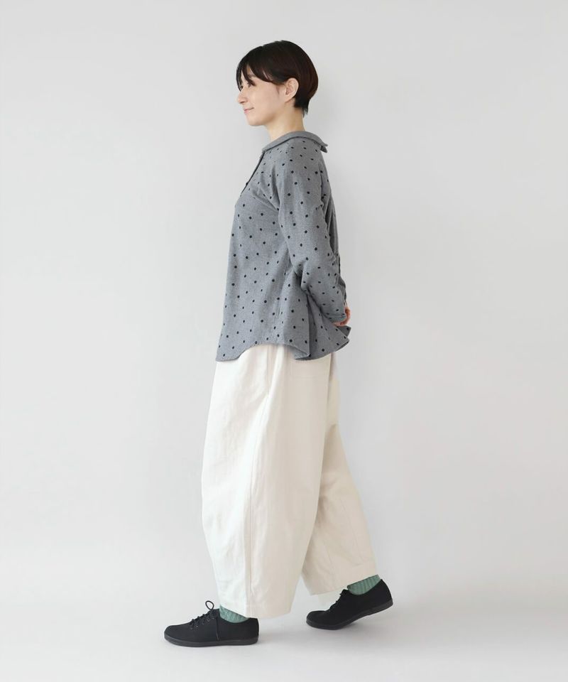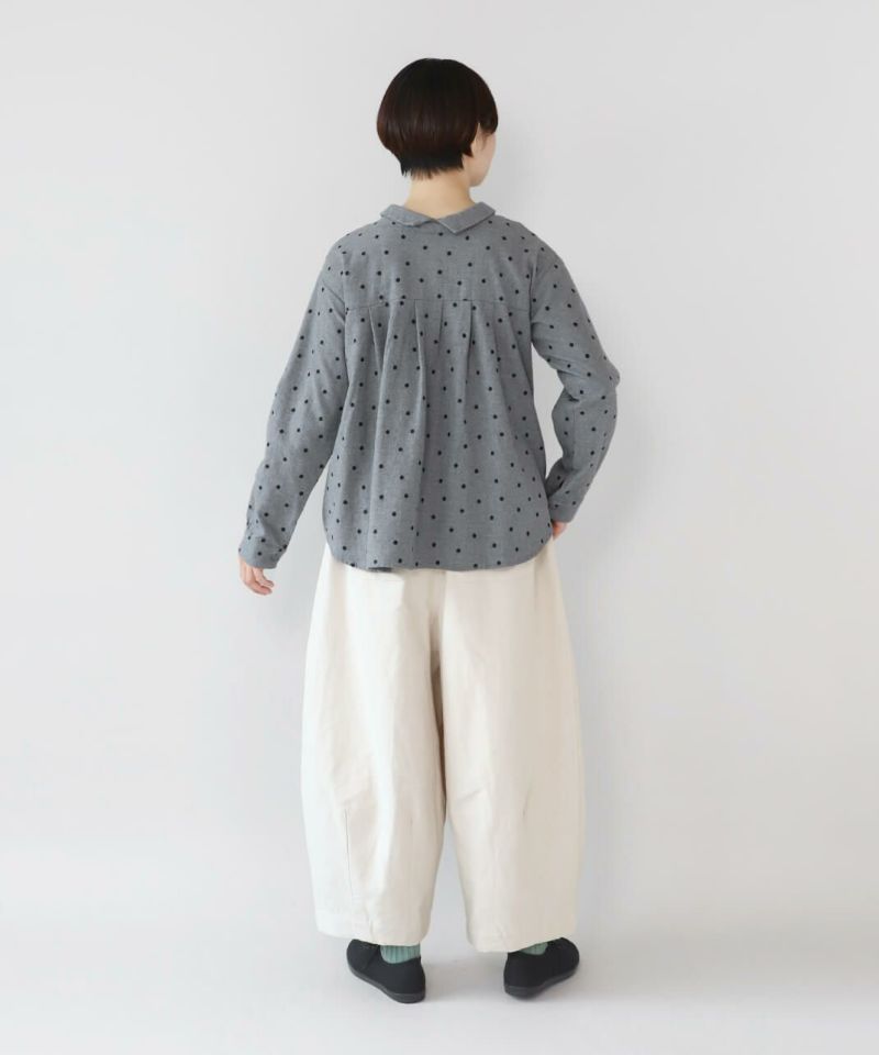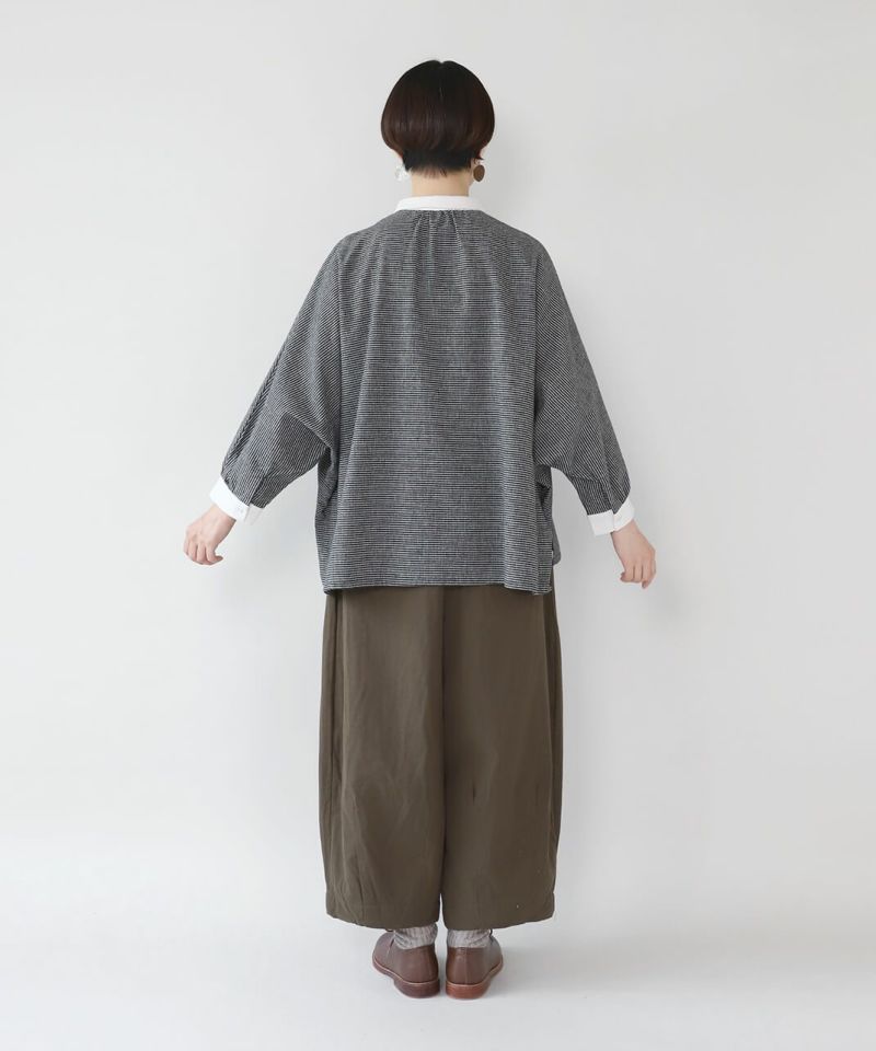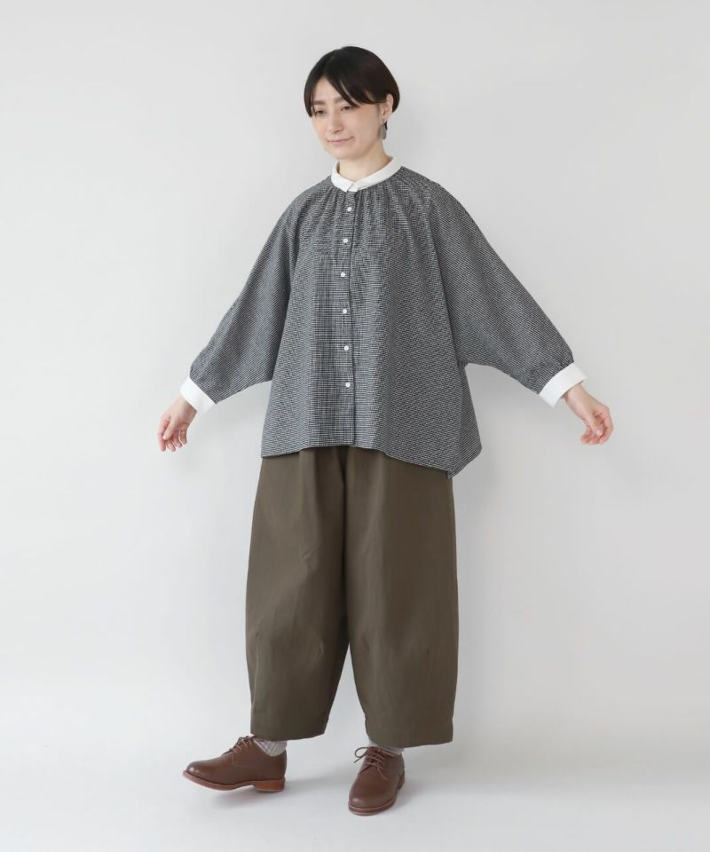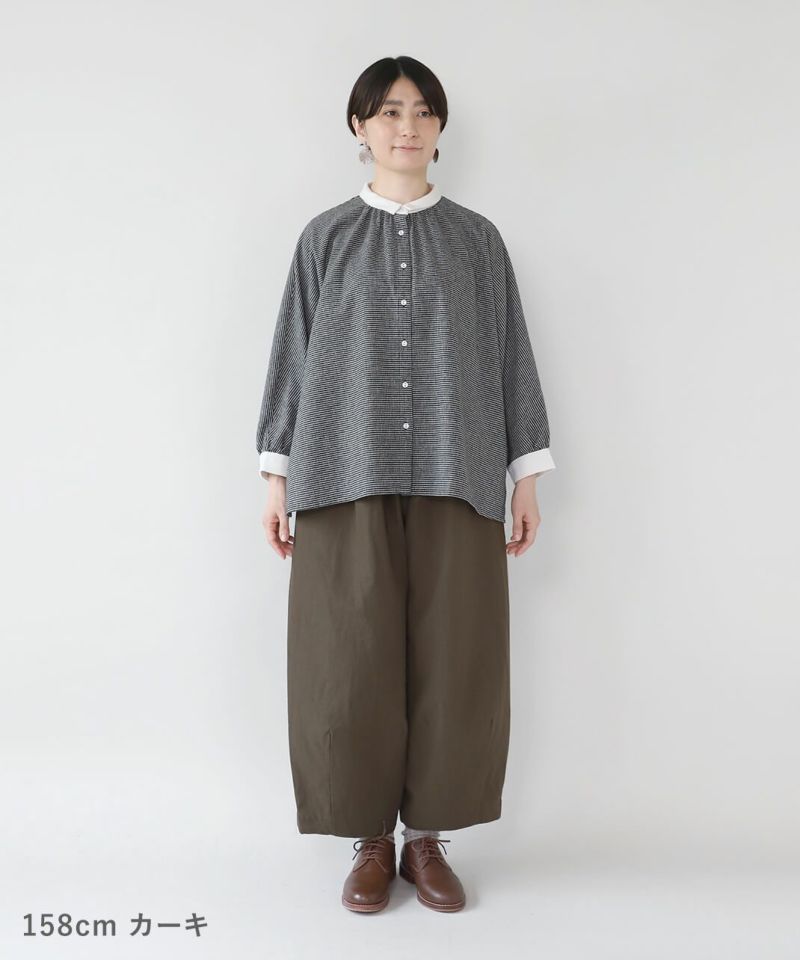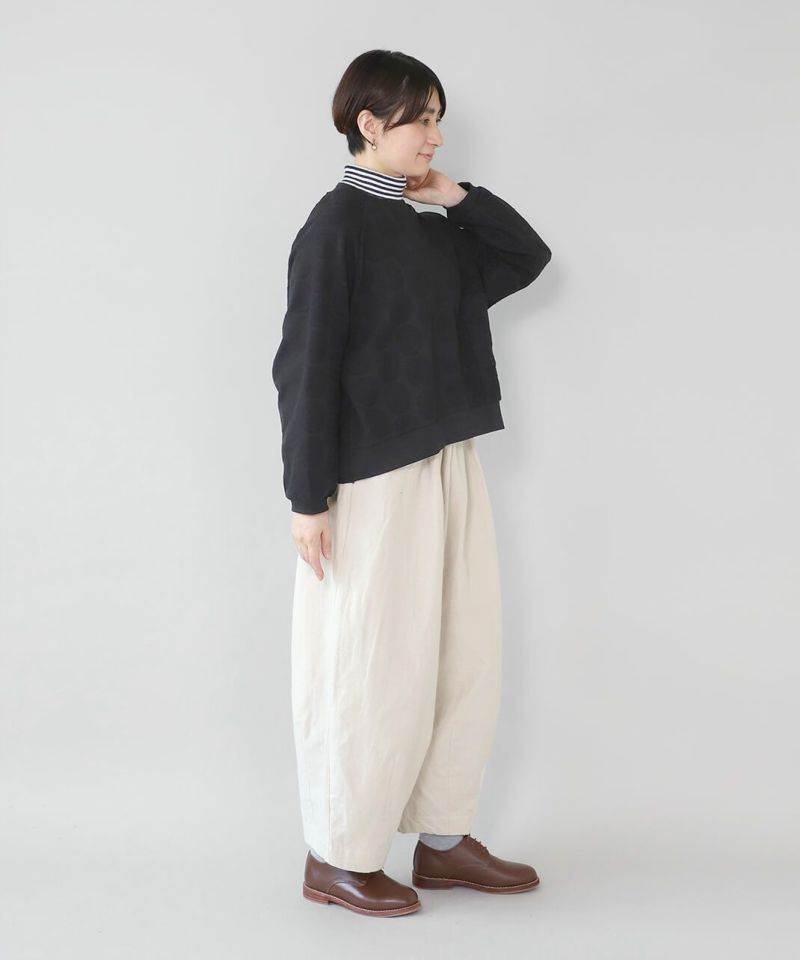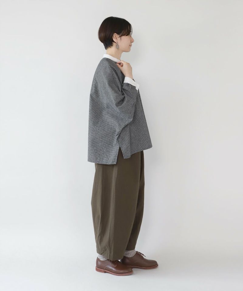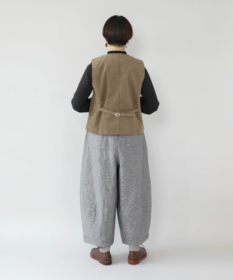 ダブルガーゼ仕立てのコットンリネン生地を使用したタックバルーンパンツです。ウエスト周りがゴム仕様のためリラックスした履き心地。はじめは少しハリがありますが、履くほどに馴染むダブルガーゼ仕立てです。程よいバルーン感と丈はバランスのとりやすい人気の1着です。