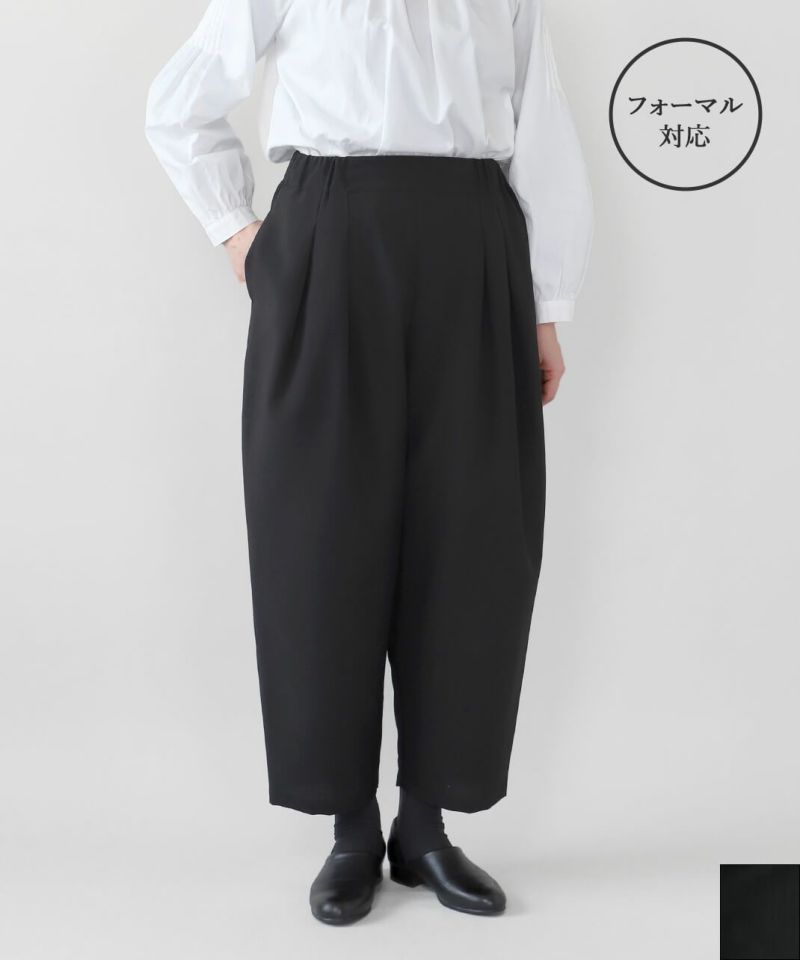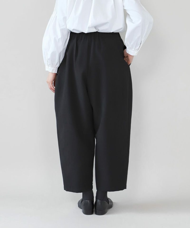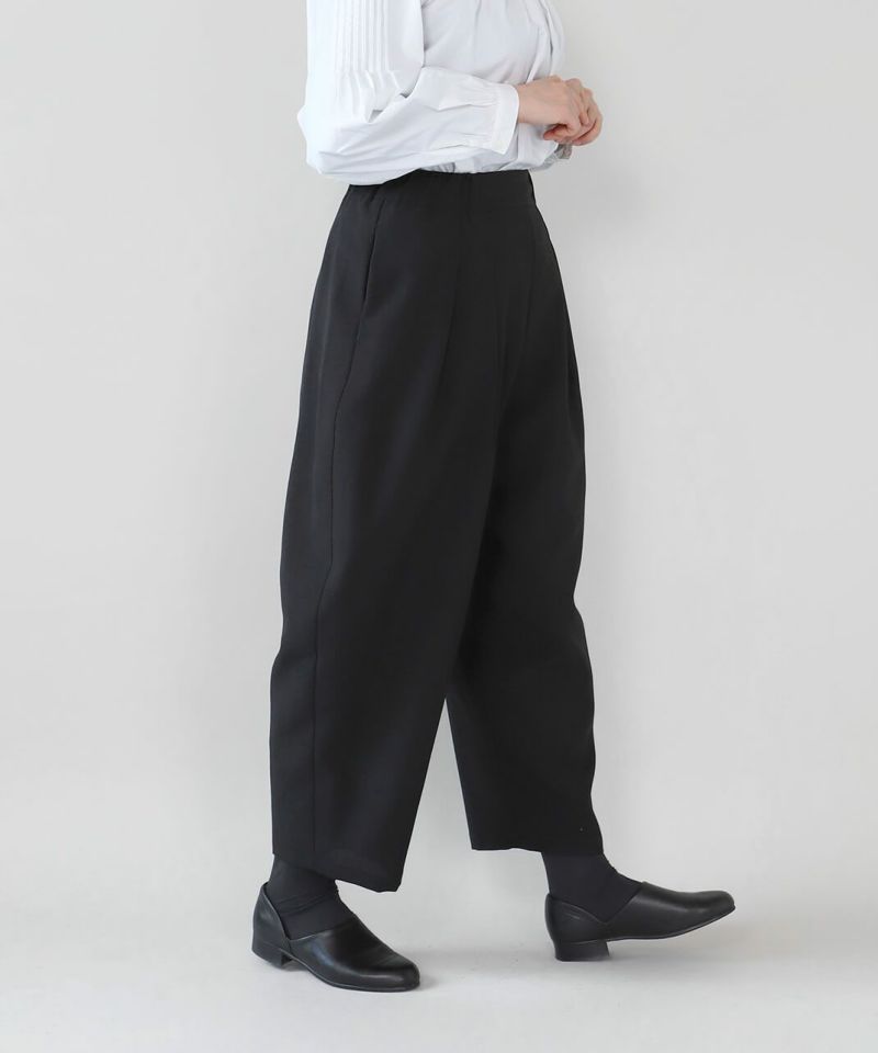 太ももにタックを入れゆとりを持たせた、ワイドテーパードシルエット。