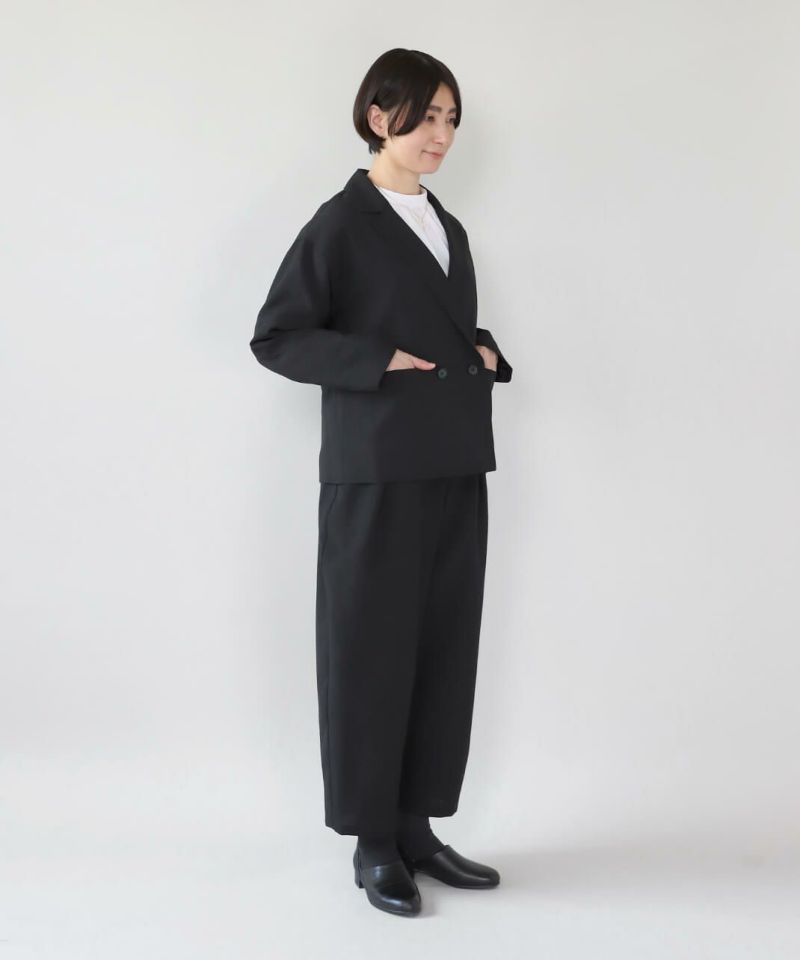 同素材のジャケットとセットアップでの着用もおすすめです。