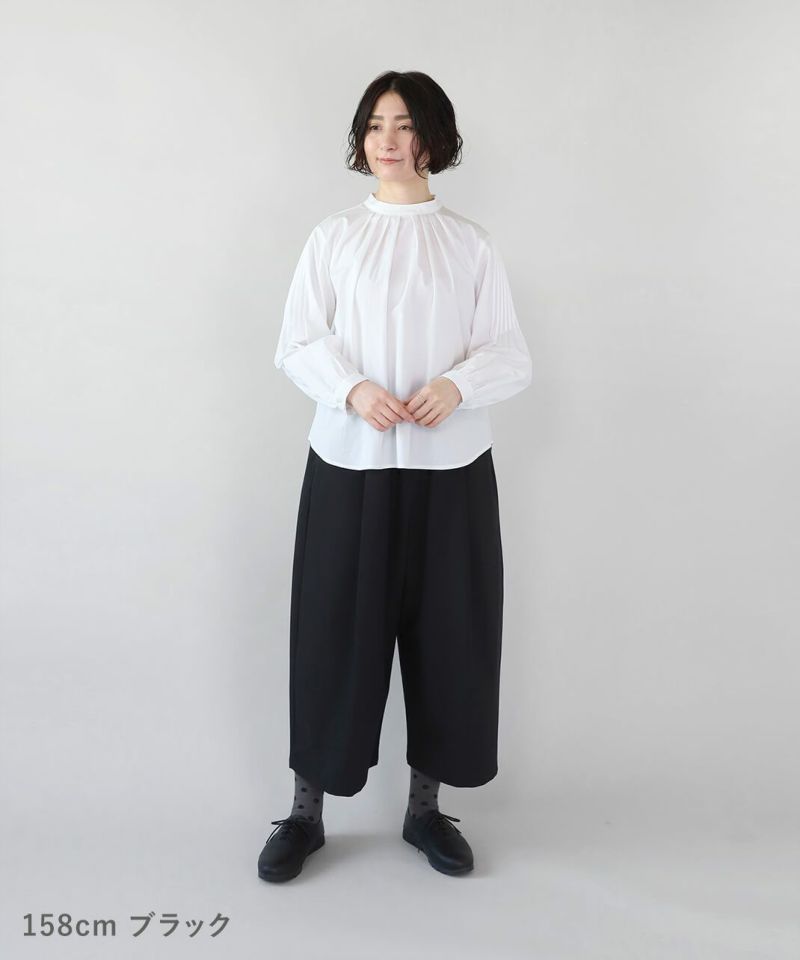 フロント部分に施されたギャザーとタックがゆったりした着心地。