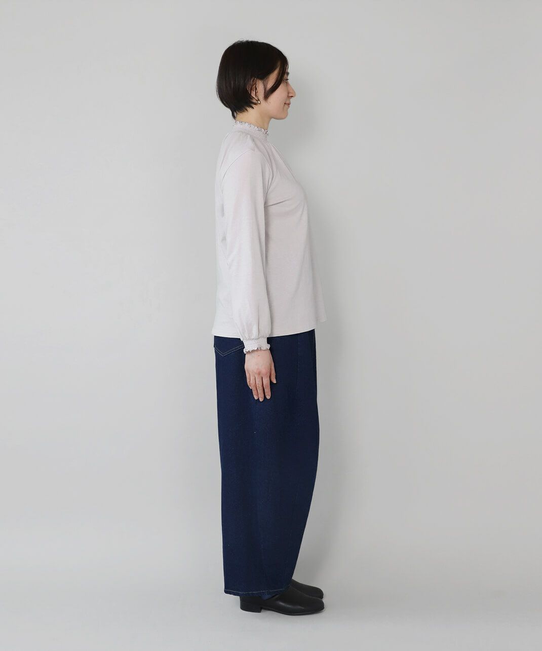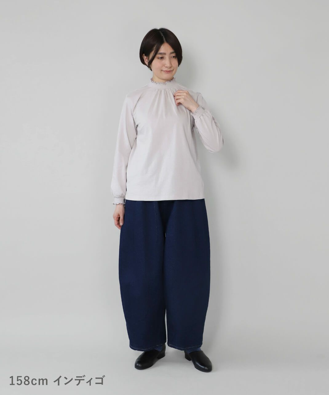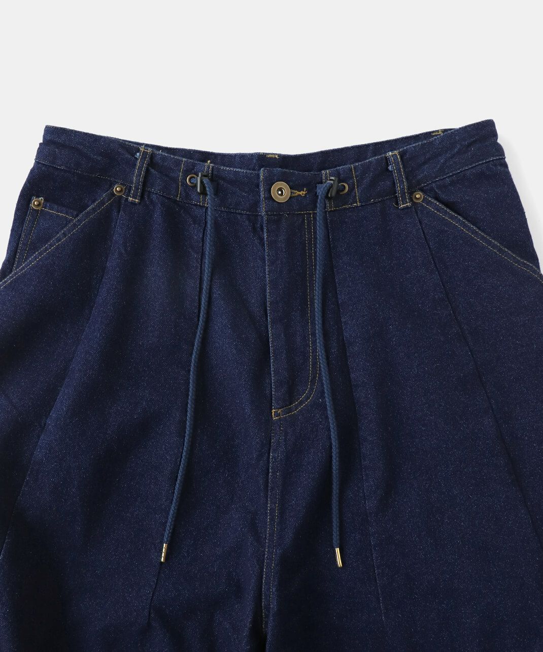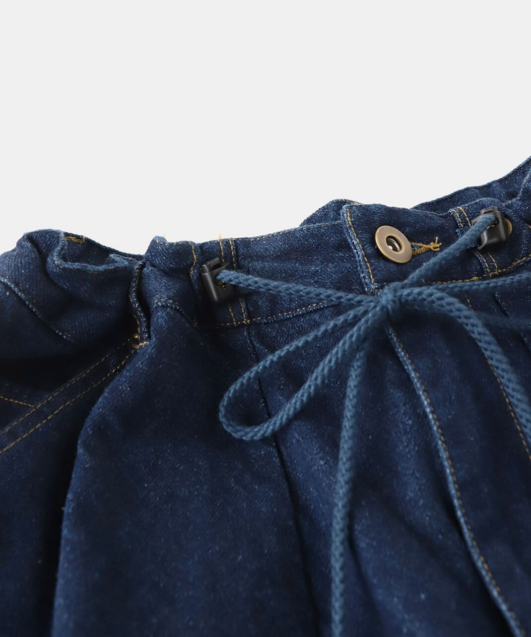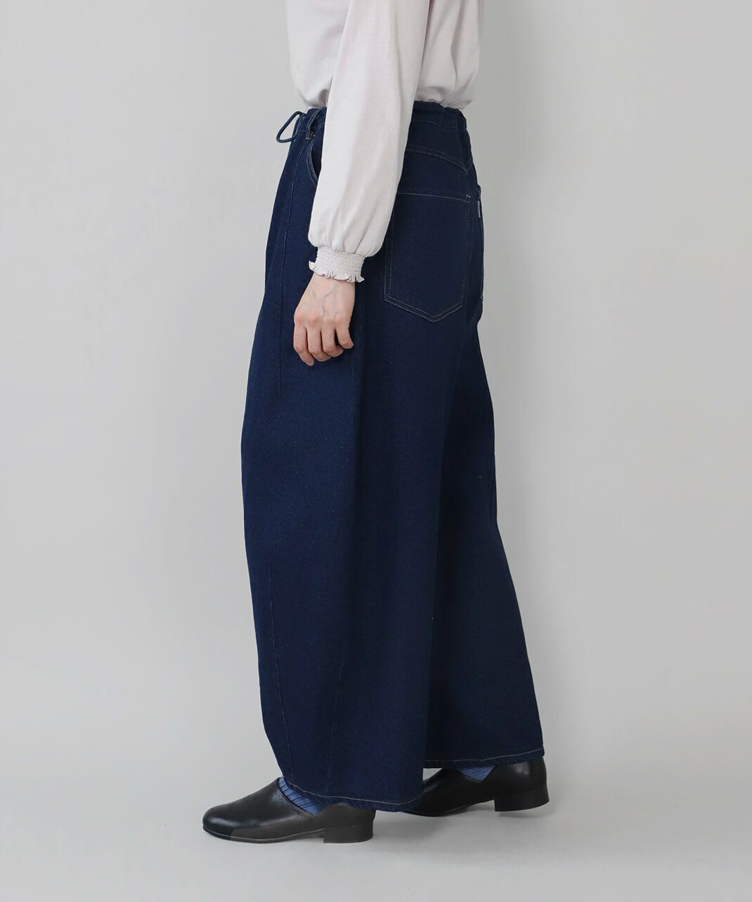 立体的なバルーンシルエットがきれいなタックパンツです。 ウエストのドロストコードでフィット感を調整することができ、スタイリッシュなデザインに。シルエットをキープするやや厚みが感じられるしっかりとした丈夫な素材を使用し、裾のダーツが身体のラインを拾いにくいバルーンシルエットのデザインになっています。デイリー使いに重宝する1着です。