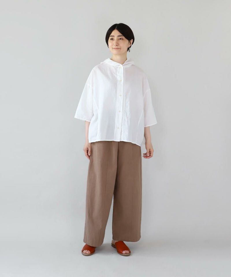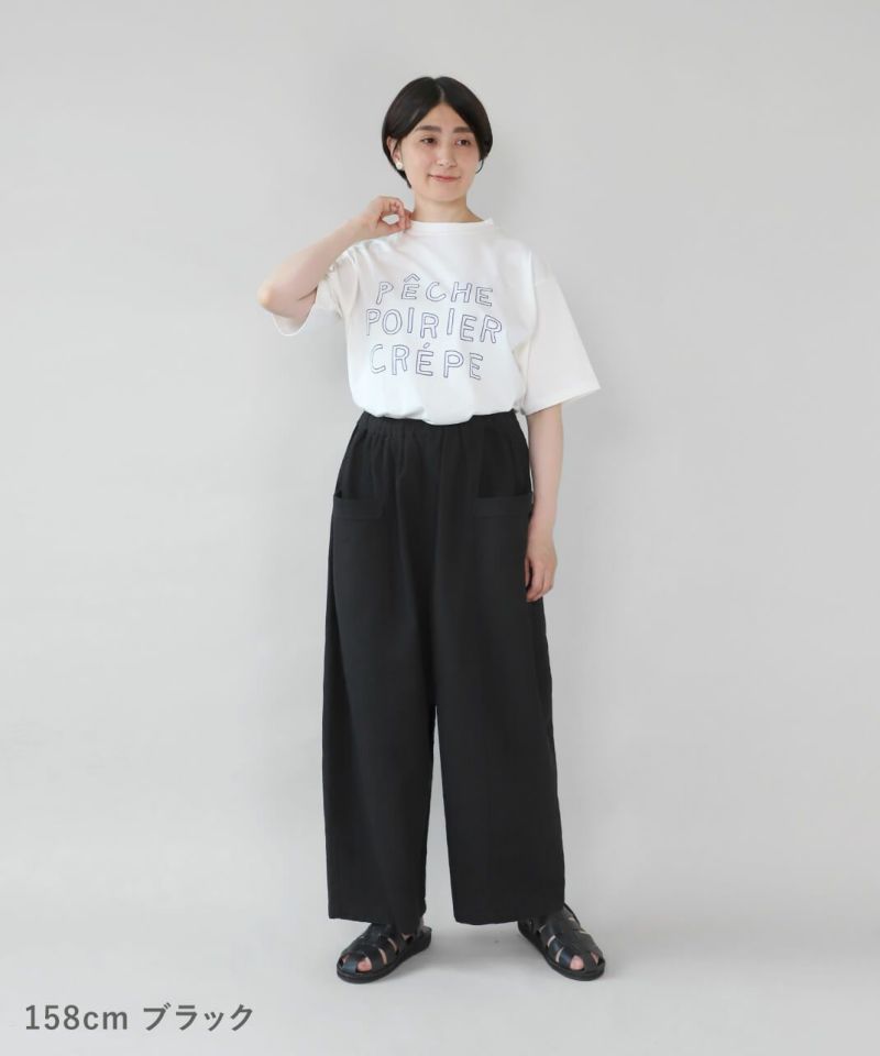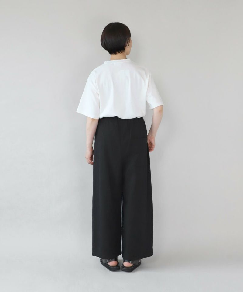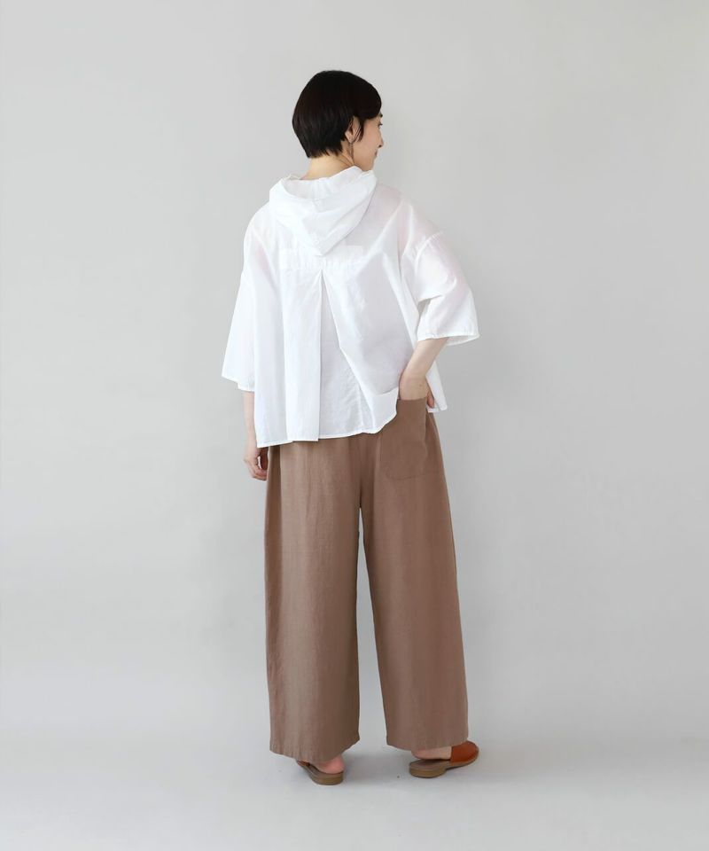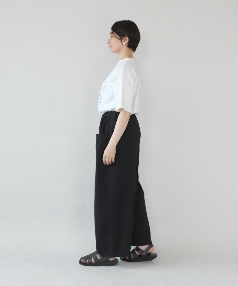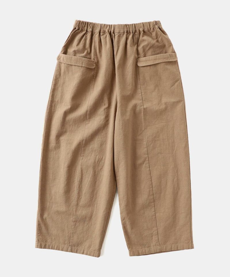 吸湿・吸水性に優れた柔らかな風合いのコットンリネンを使用したパンツです。 ゆるっとしたセミワイドなシルエットでリラックスした着心地。フロントのフラップつきのポケットがコーディネートのアクセントになります。ウエストはゴムと内紐付きのため、サイズ調整が可能です。ほどよい厚みの生地を使用しているため、オールシーズン着用できます。