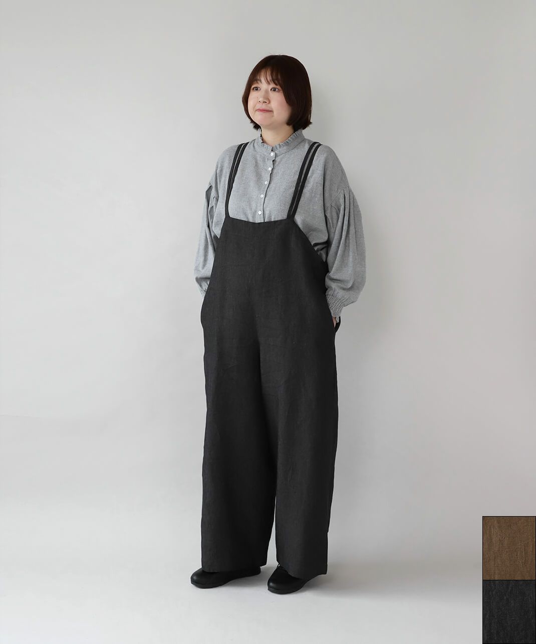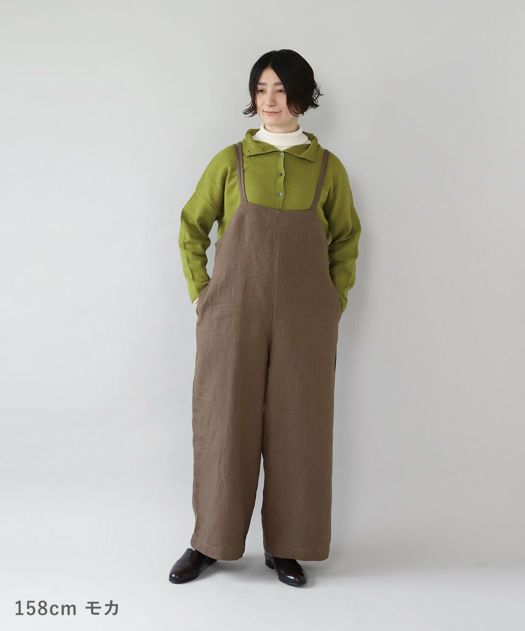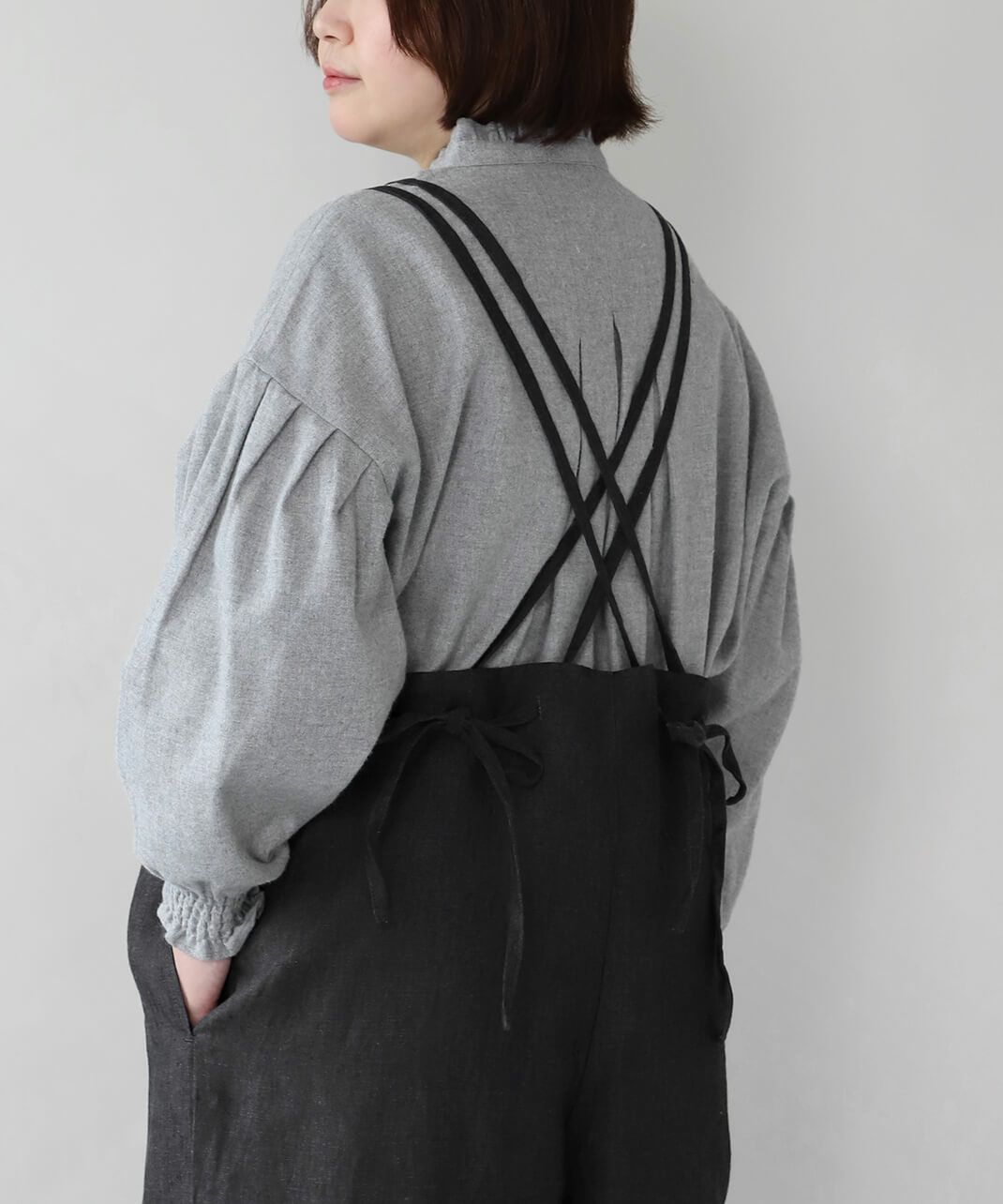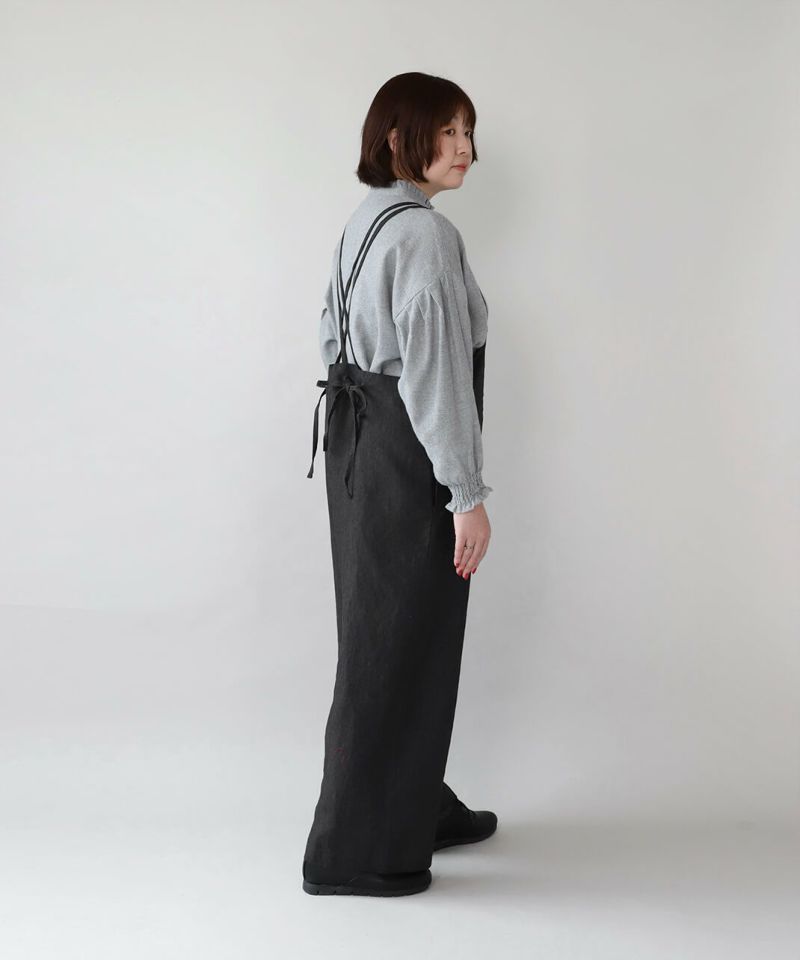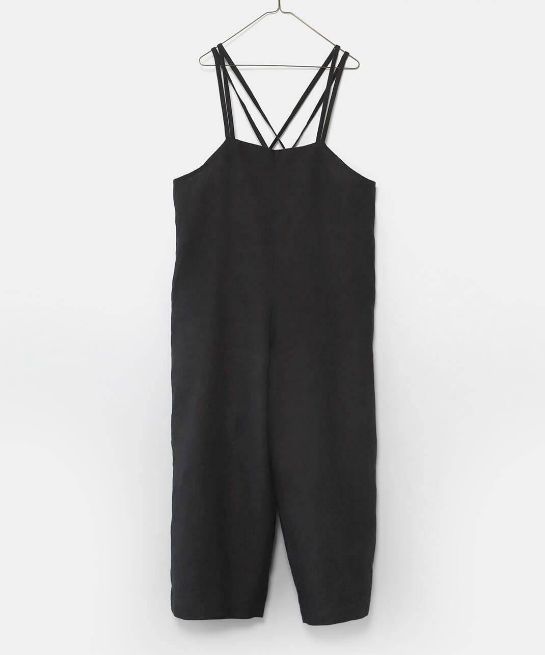 ハリのある太番手のリネン糸を使用したサロペットです。 ゆったりとしたシルエットでリラックスした着心地。二重になった細い肩紐が華奢でおしゃれな印象を演出してくれます。後ろのリボン結びがコーディネートのアクセントになります。紐の長さはそのリボンで調整可能です。リネン特有のナチュラルな風合いがカジュアルにもキレイめにもスタイリングできます。