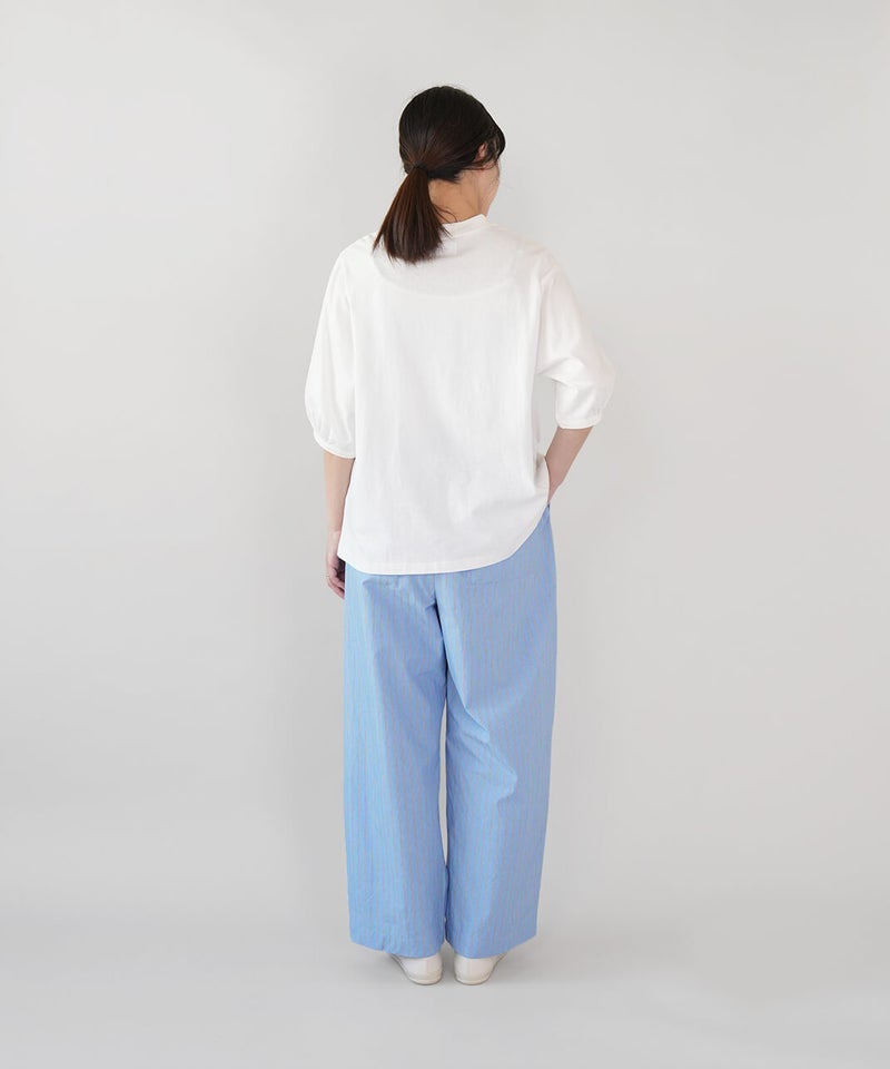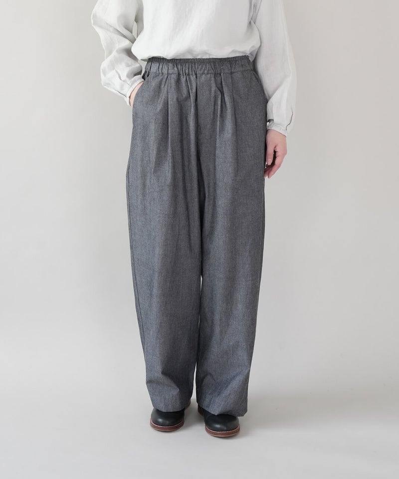 ほどよいハリと耐久性に優れたコットンタイプライター素材を使用したパンツです。タックで適度なゆとりを持たせ、すっきりとしたストレートラインに仕上げました。ルーズすぎない絶妙なシルエットがコーディネートに馴染みます。ワンピースやチュニックとも重ね着しやすく、1枚持っていると重宝します。