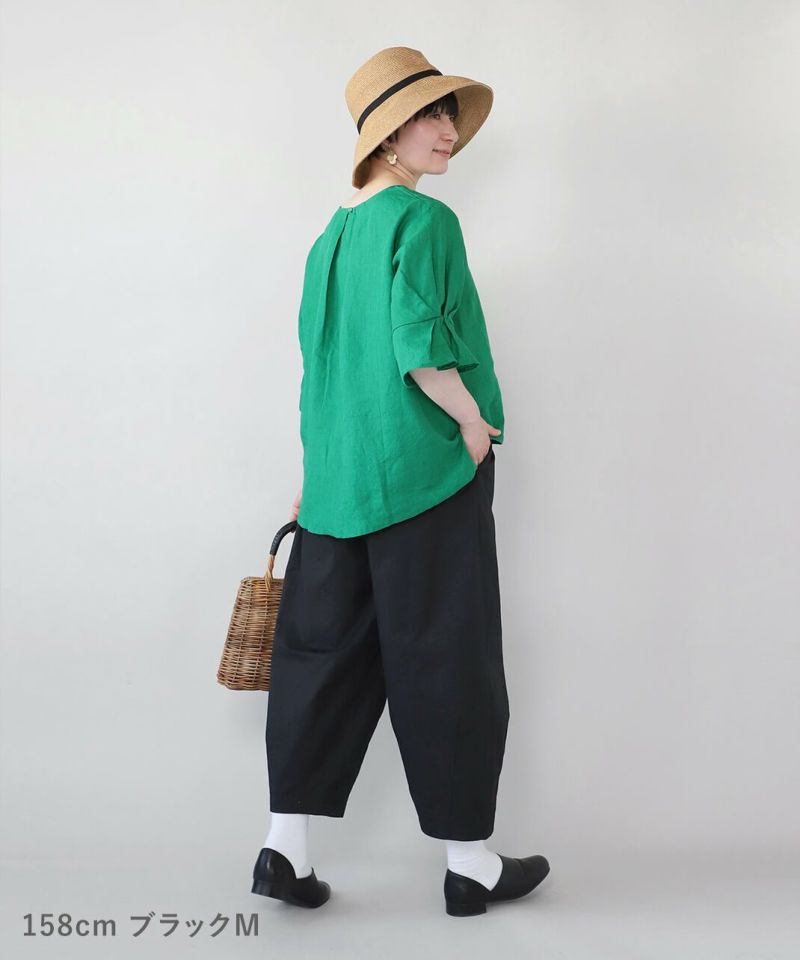生地には年中着まわせるコットン素材を使用。ゆったりとした履き心地で、裏地付きが嬉しいポイント。通年着回せる1着です。
