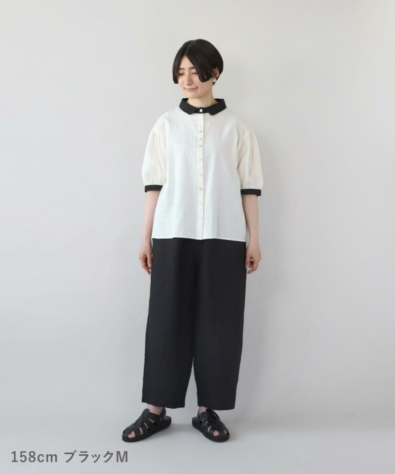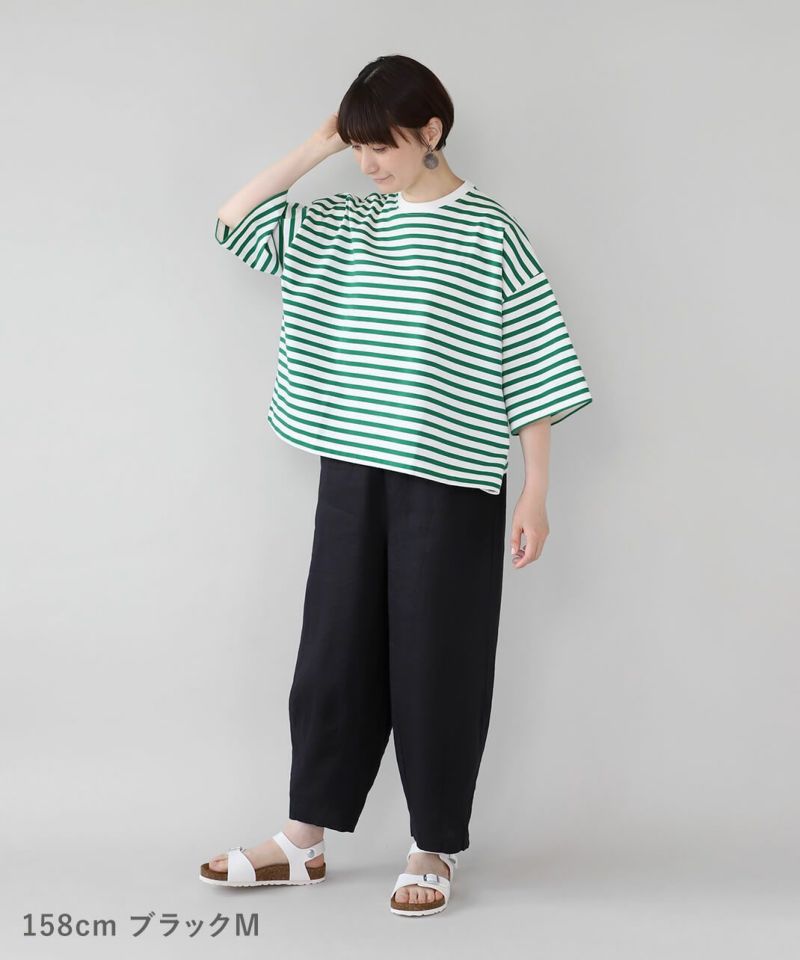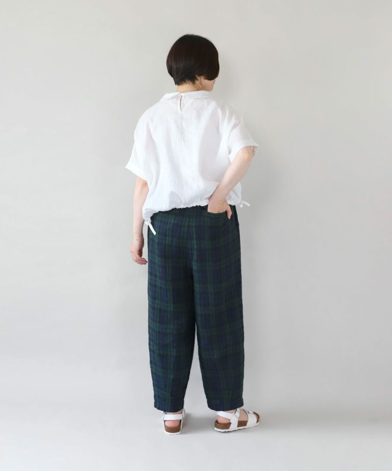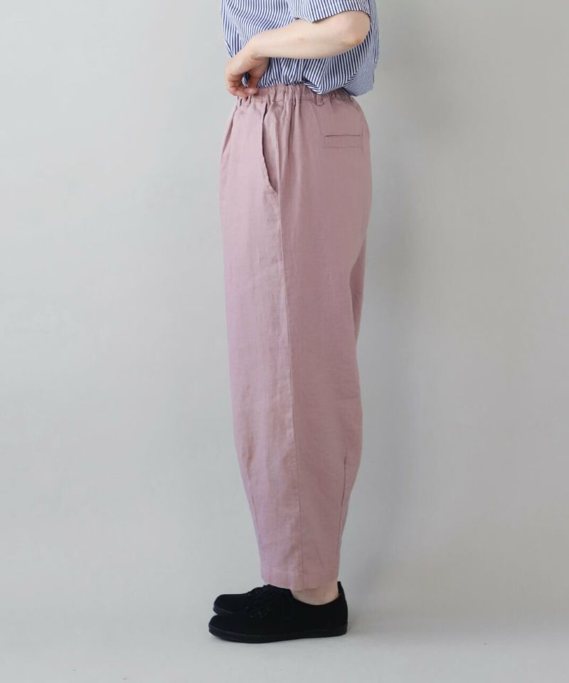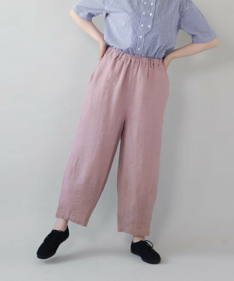 生地には柔らかな14番手リネンを使用し、ナチュラルな風合いに仕上げました。ゆったりとした履き心地で、裏地付きが嬉しいポイント。通年着回せる1着です。