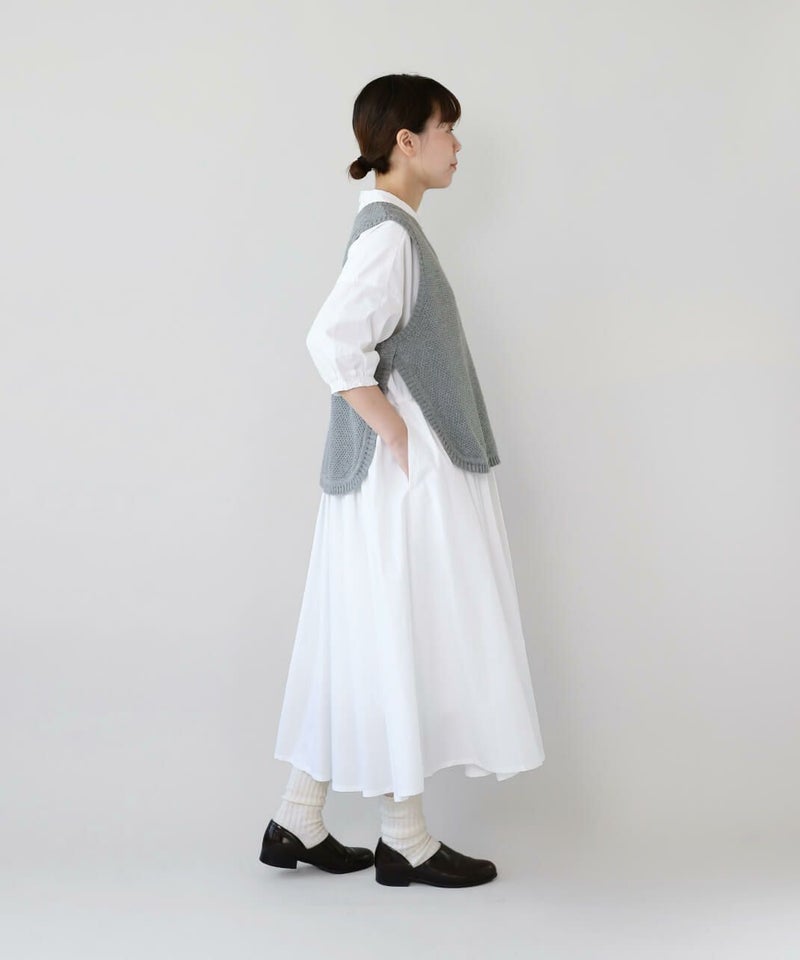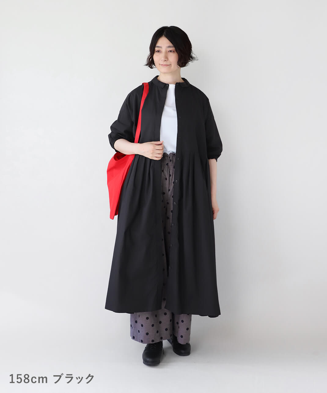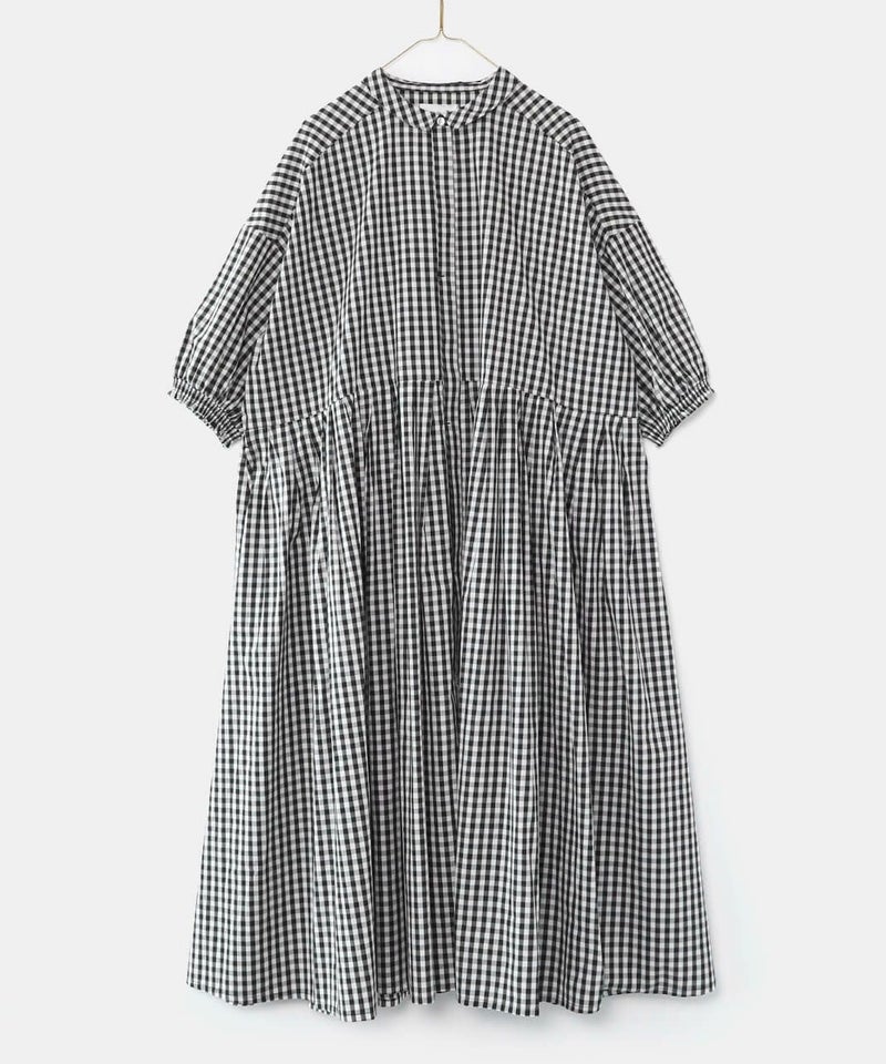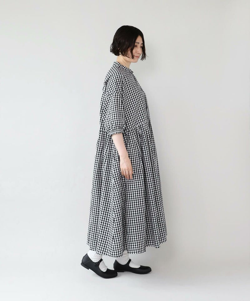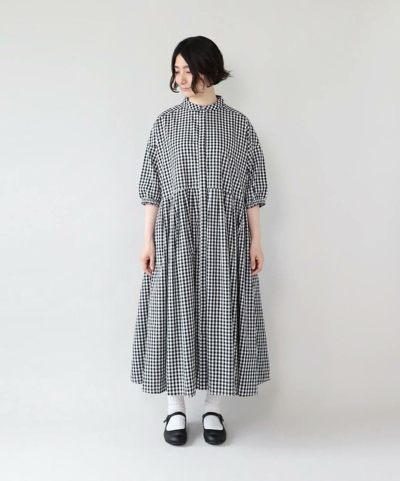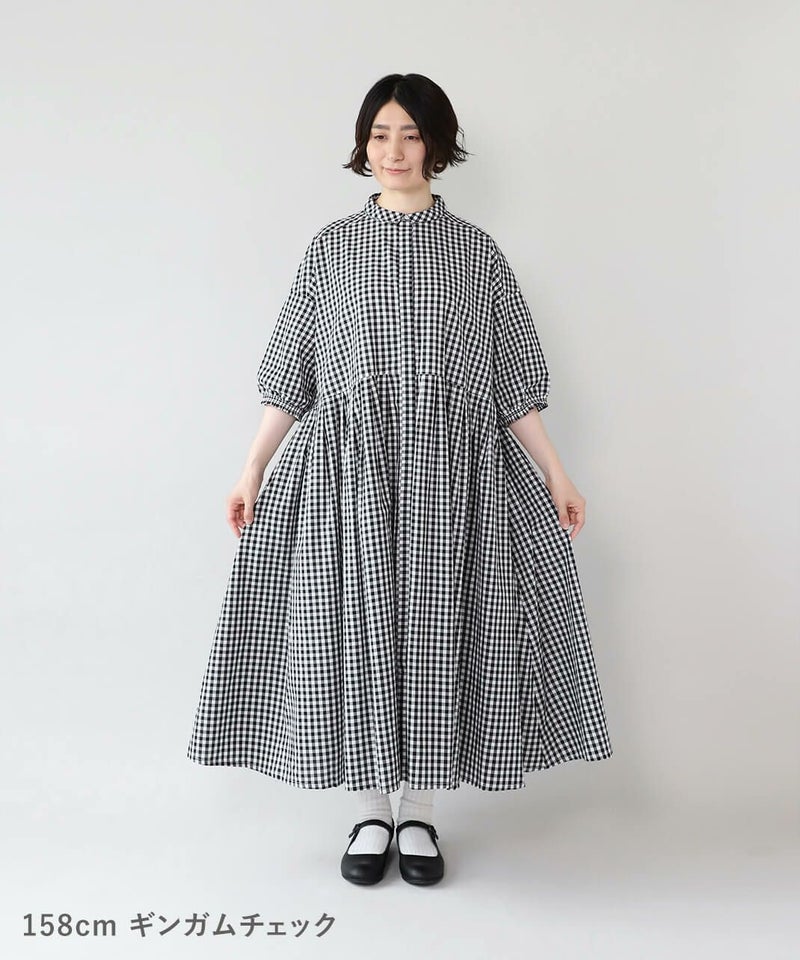 さらっとしたコットン素材のシャツワンピースです。身幅の広いワイドシルエットと、小ぶりな襟が相性のよいデザイン。