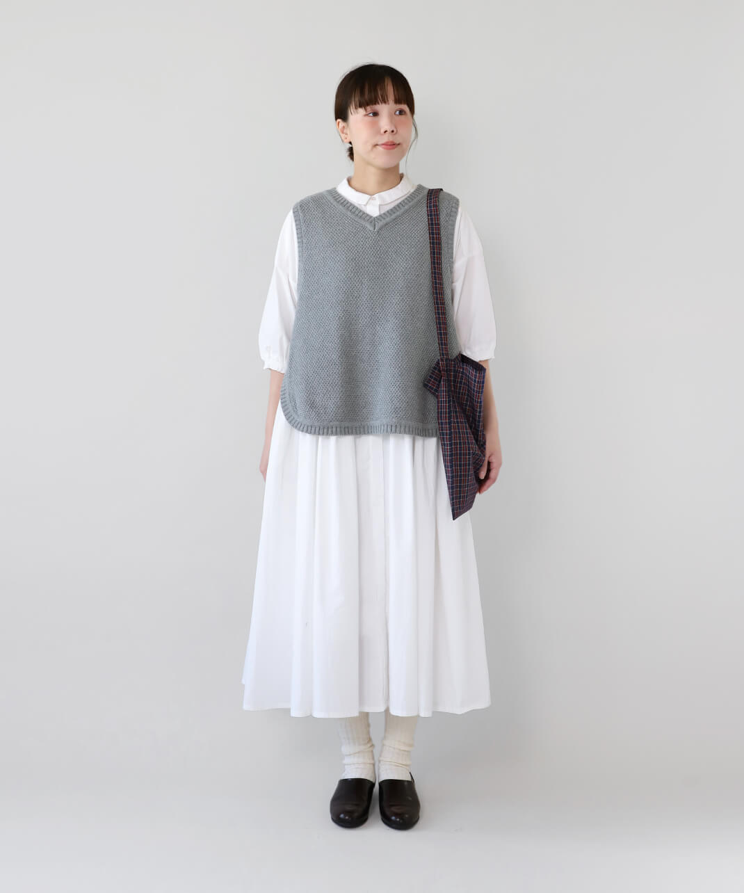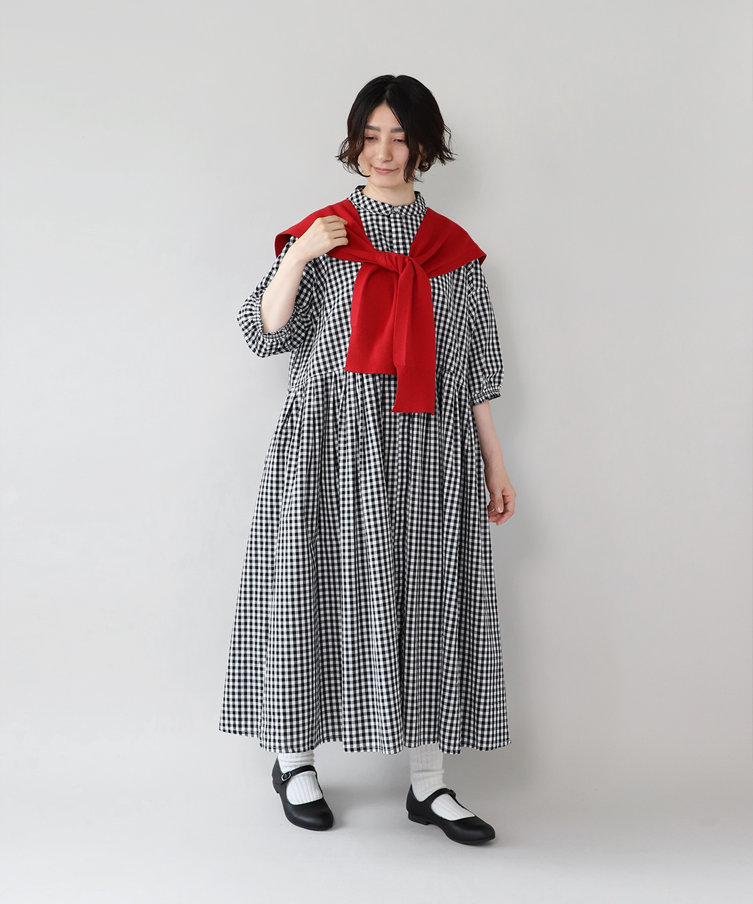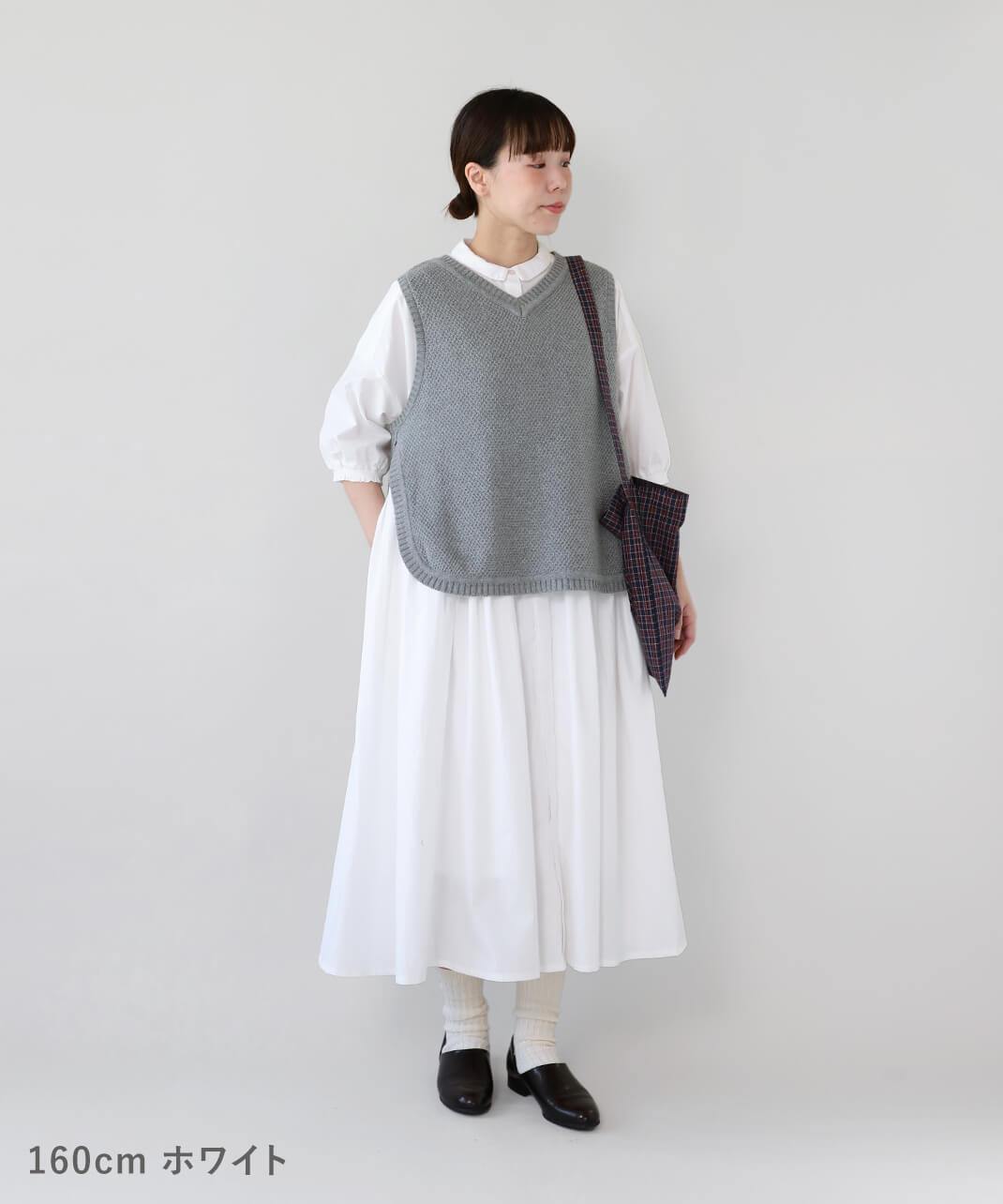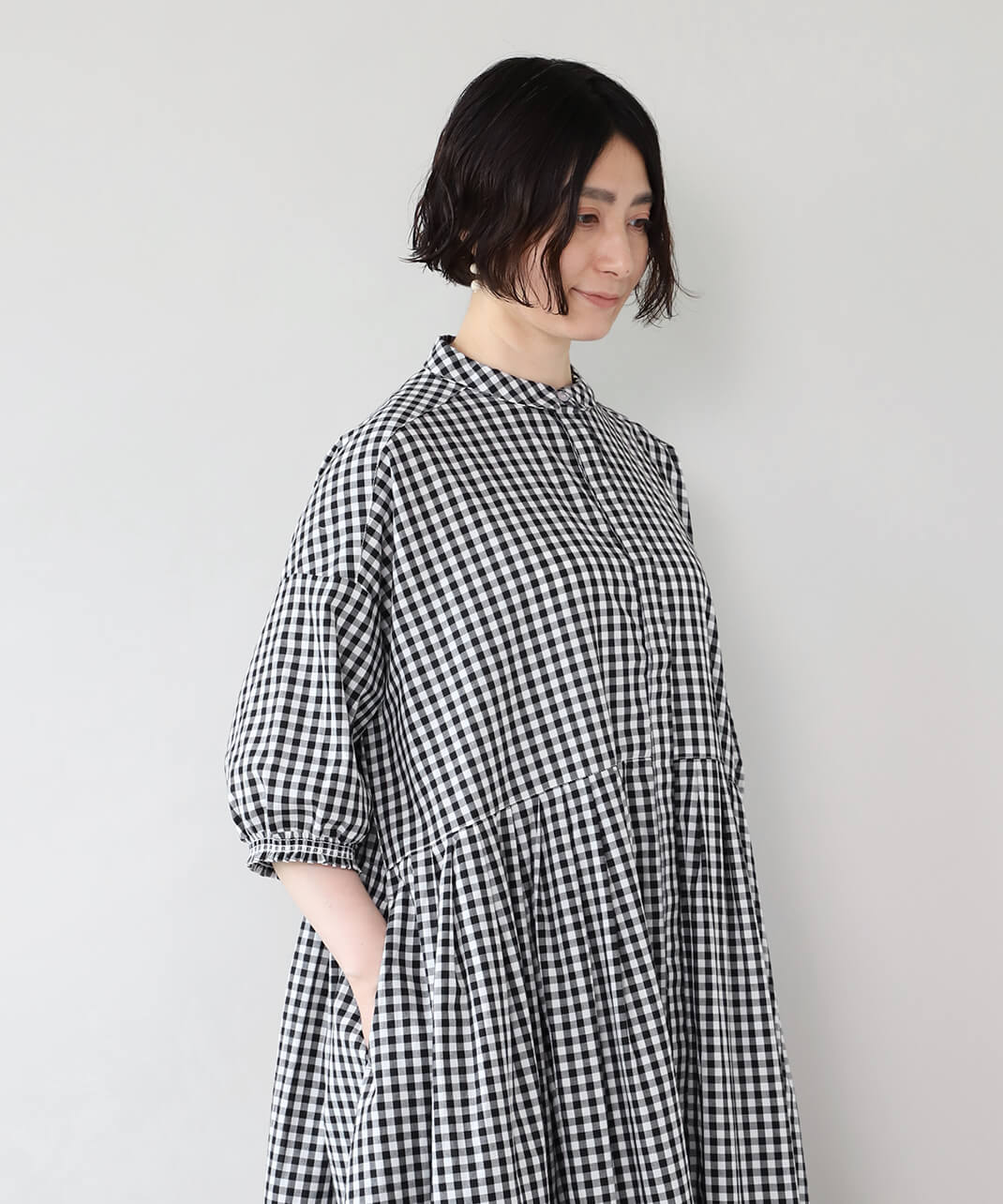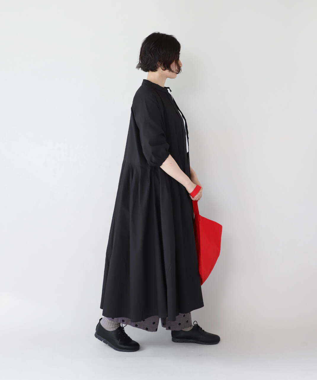 さらっとしたコットン素材のシャツワンピースです。身幅の広いワイドシルエットと、小ぶりな襟が相性のよいデザイン。