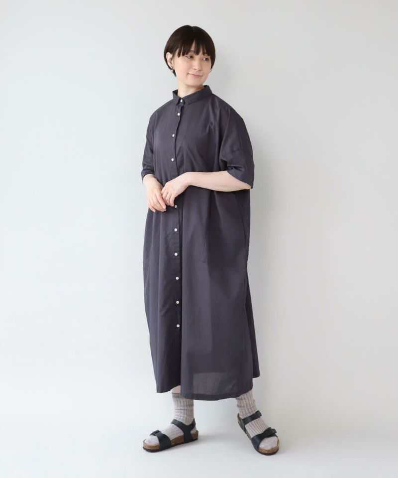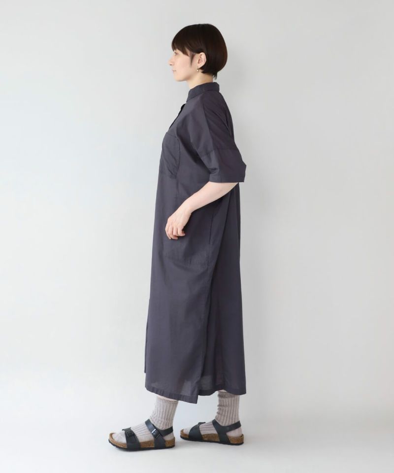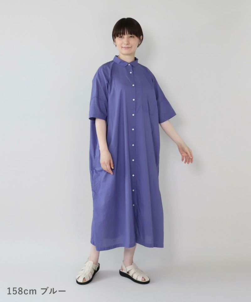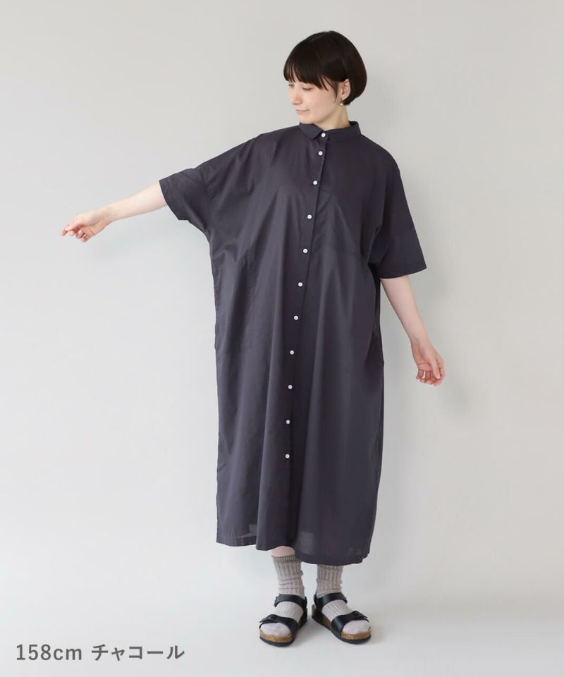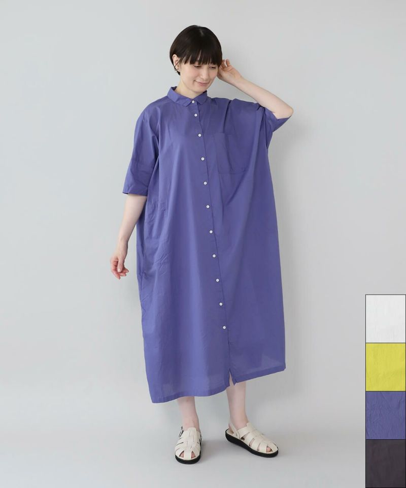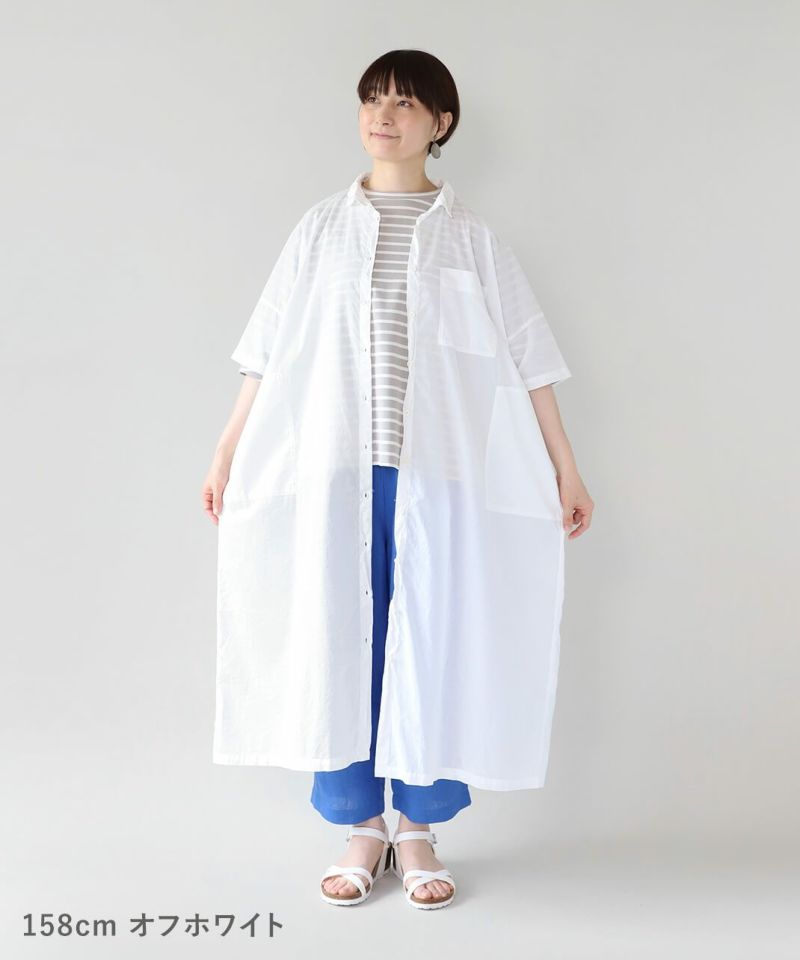 薄手のコットン生地を使用したシャツワンピースです。身幅の広いオーバーサイズがカジュアルな雰囲気です。胸元には大きめのポケットが付き、羽織りとしても活躍する1着です。