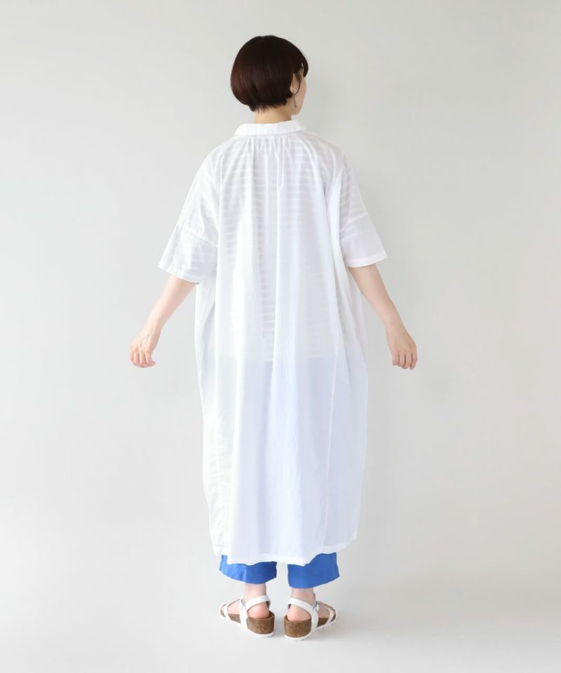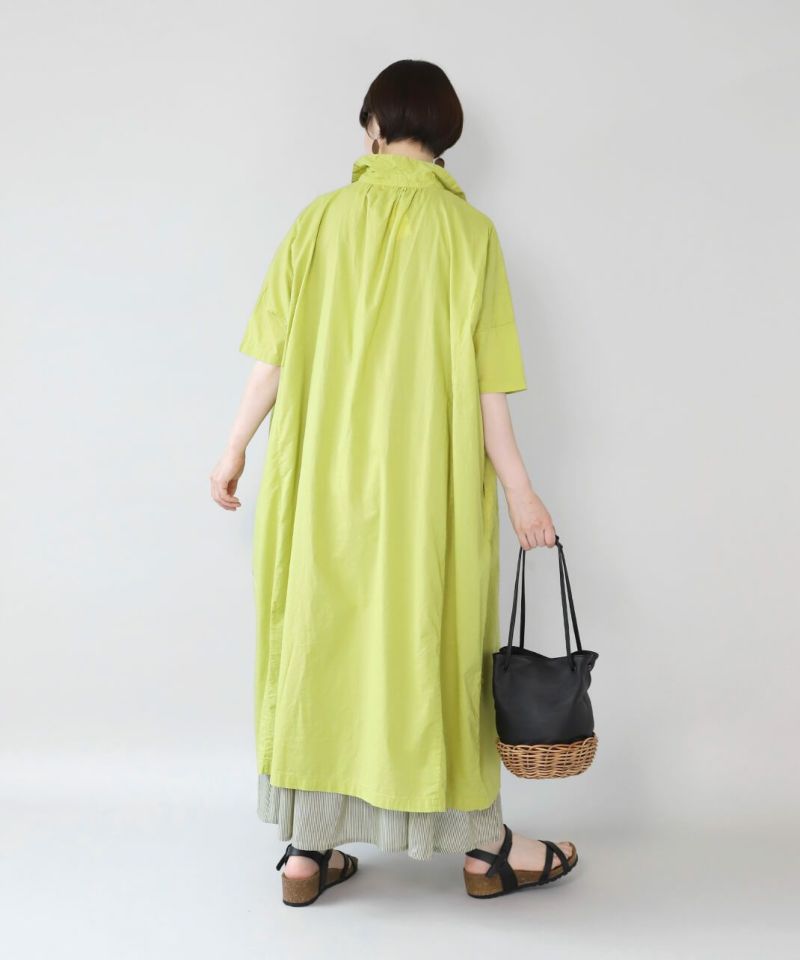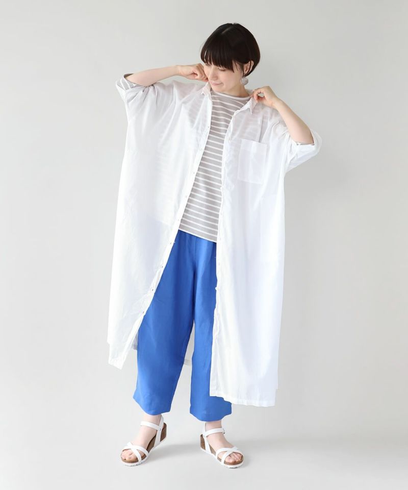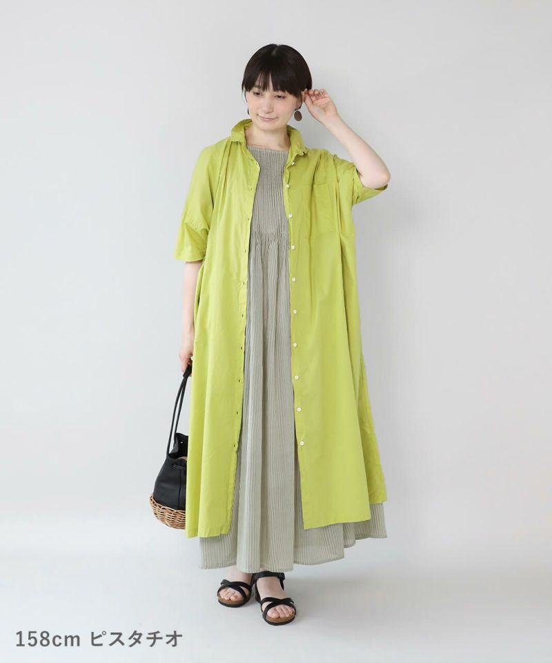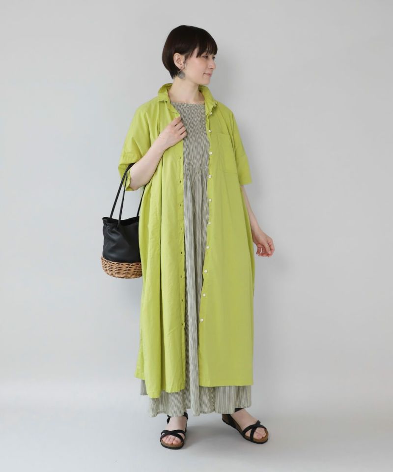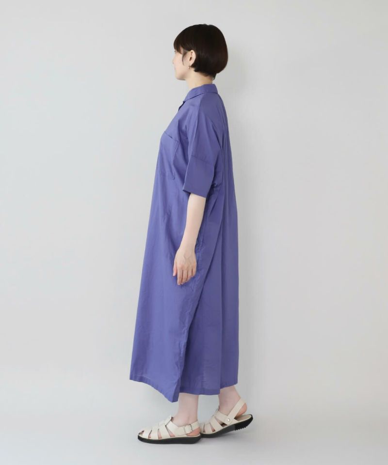 薄手のコットン生地を使用したシャツワンピースです。身幅の広いオーバーサイズがカジュアルな雰囲気です。胸元には大きめのポケットが付き、羽織りとしても活躍する1着です。