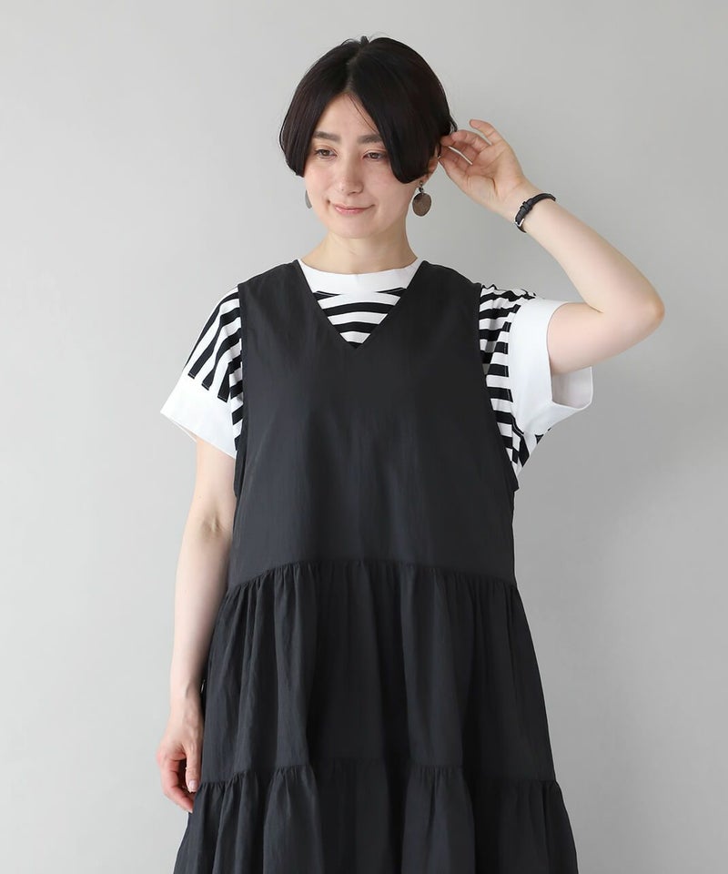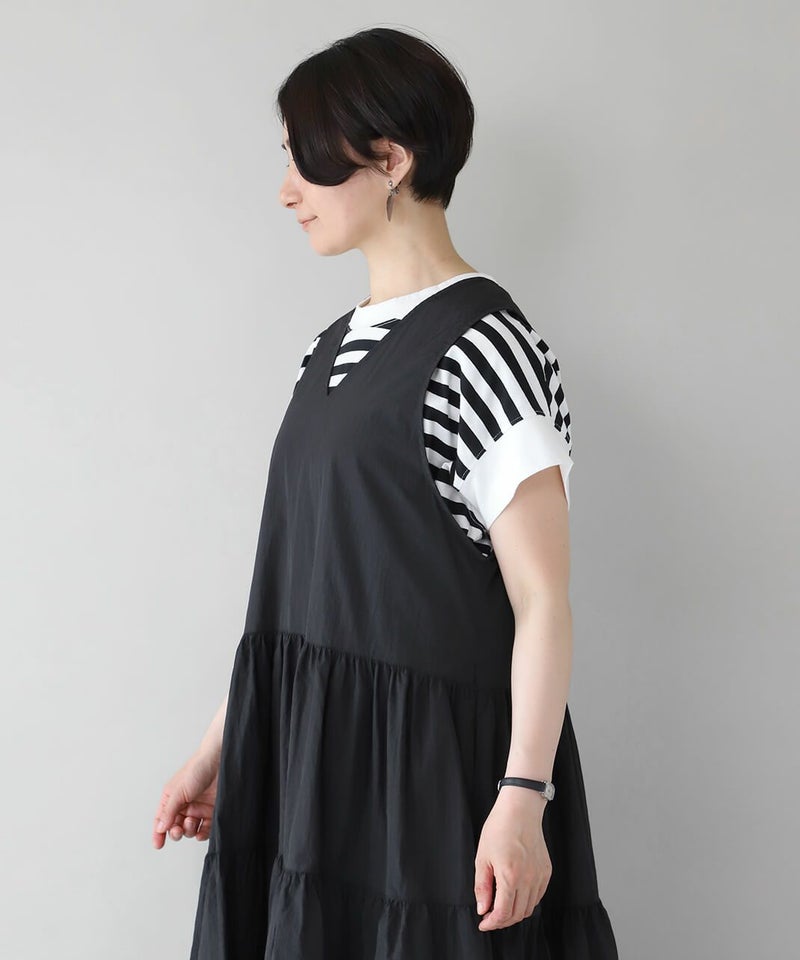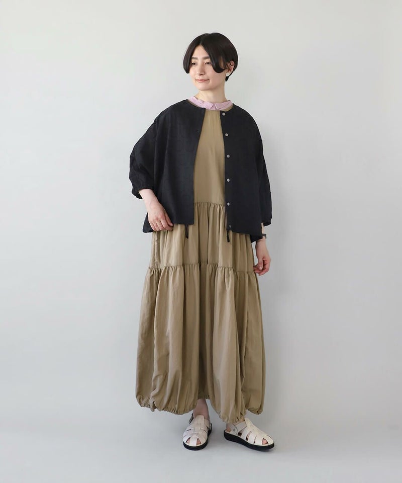 いろいろなインナーや羽織りとのコーディネートも楽しむことができるワンピースです。
