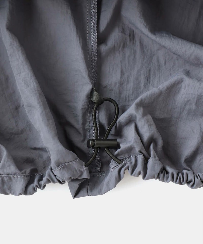 裾に向かって緩やかに広がるAラインシルエットは、ドローコードで丸みの調整ができます。