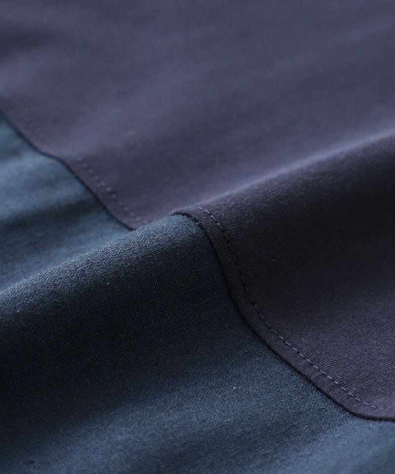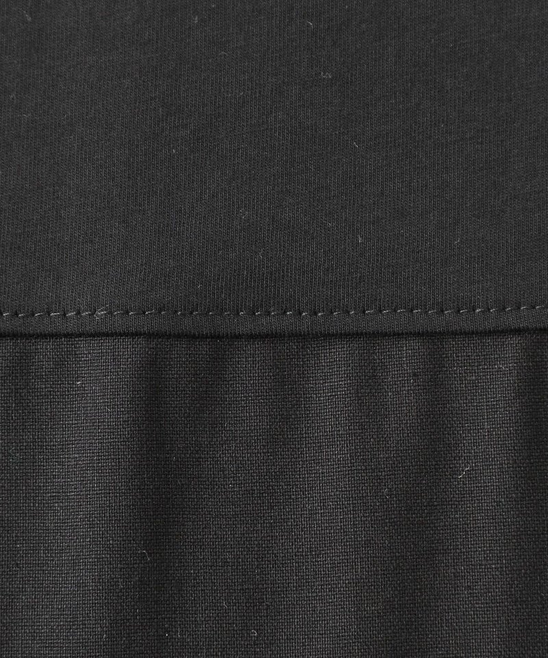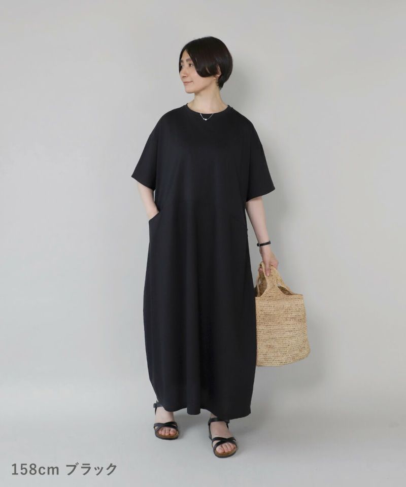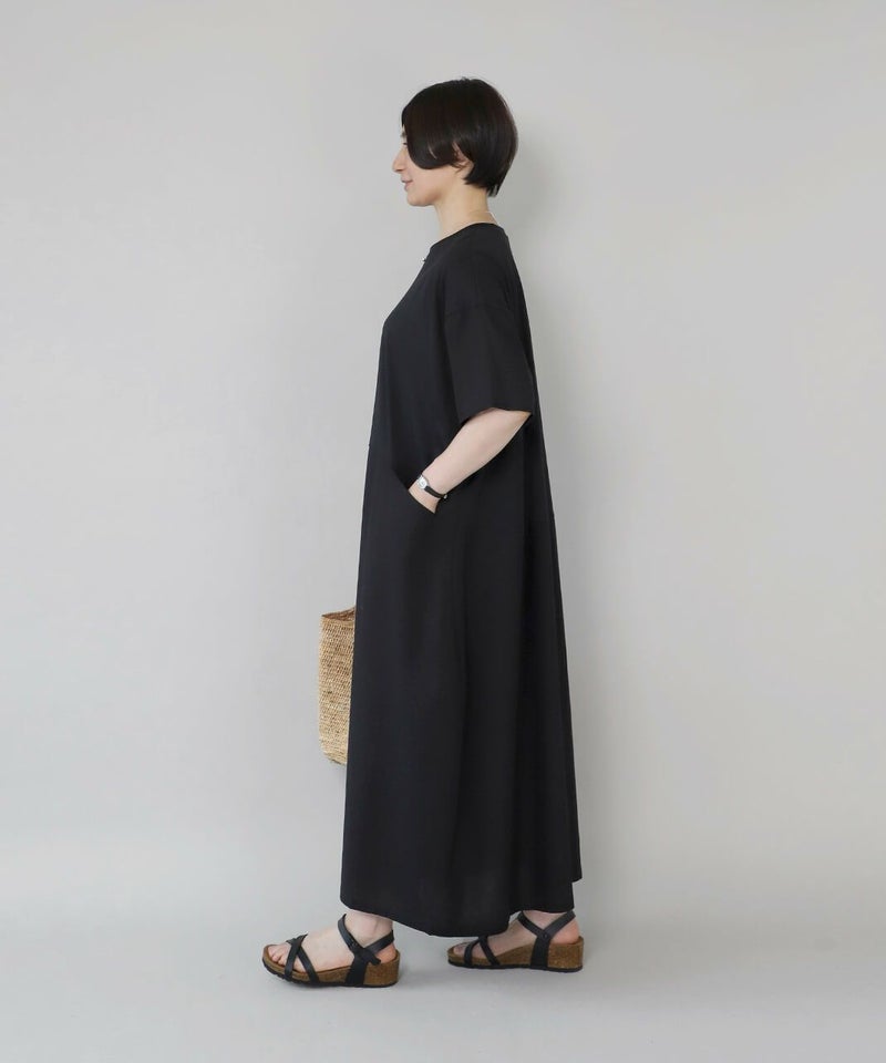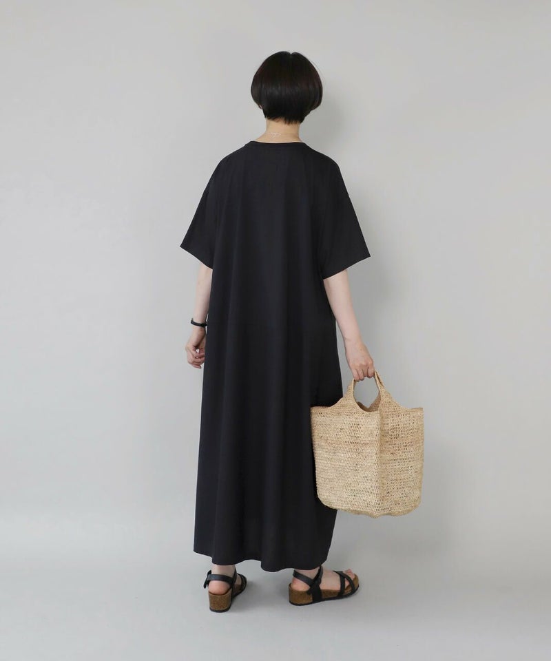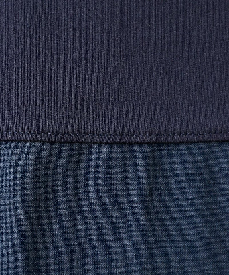 コットン素材と落ち感のあるレーヨンヘンプの切替えのワンピースです。 少し広めの首元にワイドな身頃でゆったりとした着心地。落ち着いた配色のラウンド切替えがアクセントになっています。さっとらくちんに着られてきちんと見えるのが嬉しいポイントです。