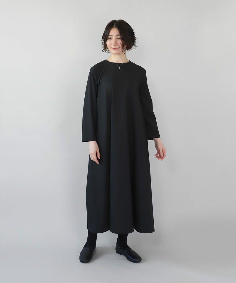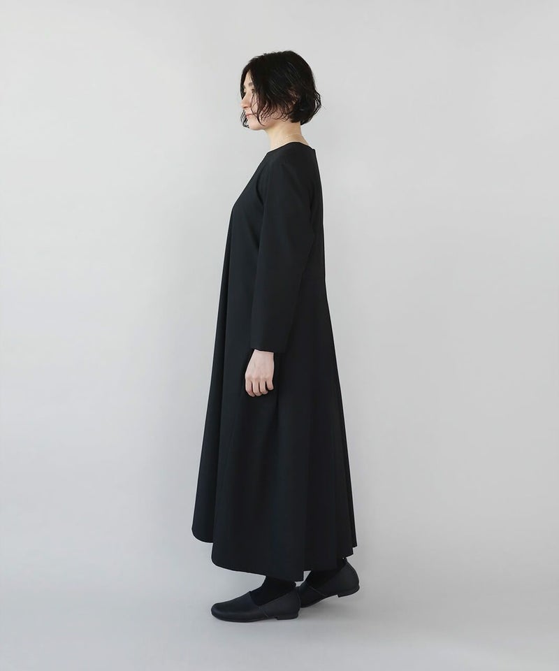 大きめのプリーツが施されたバックと自然に広がるフレアシルエットがきれいな1着です。