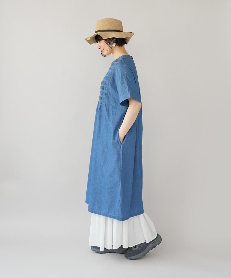 3.5ozの軽やかな布帛デニムを使用したワンピースです。