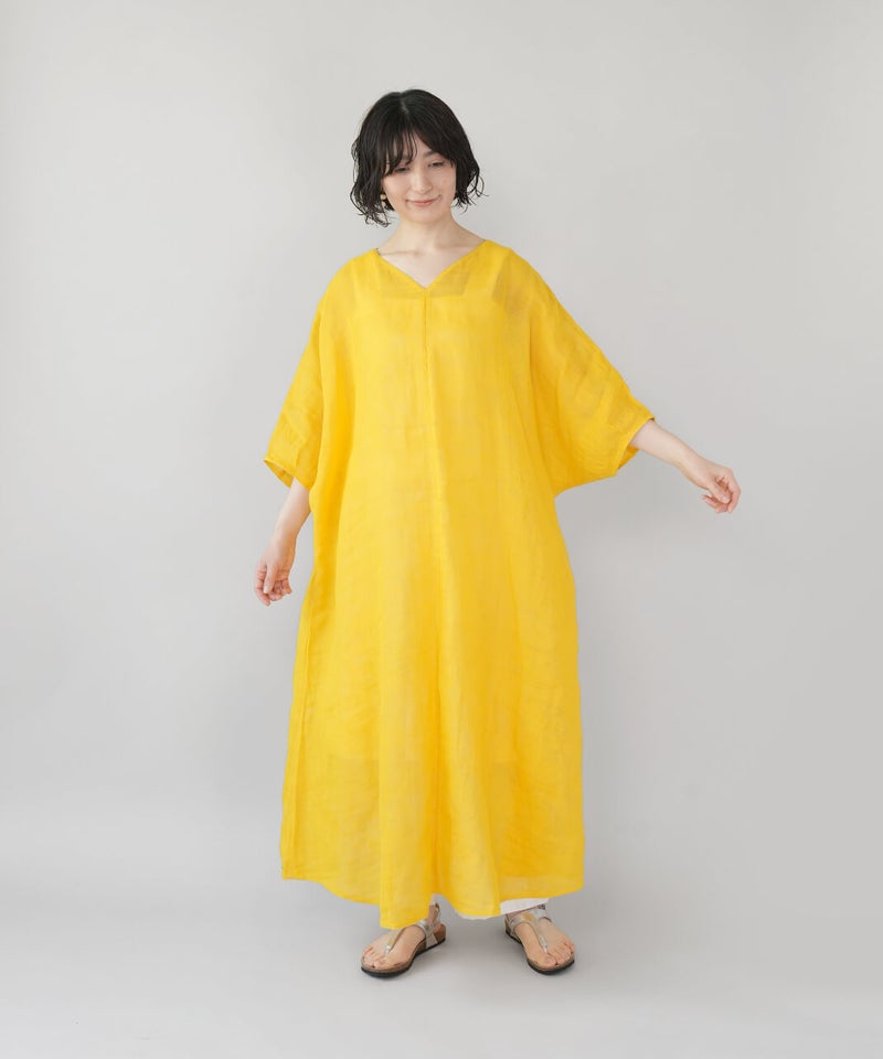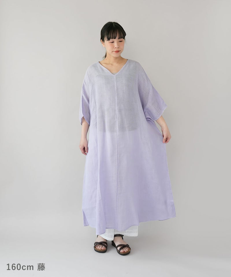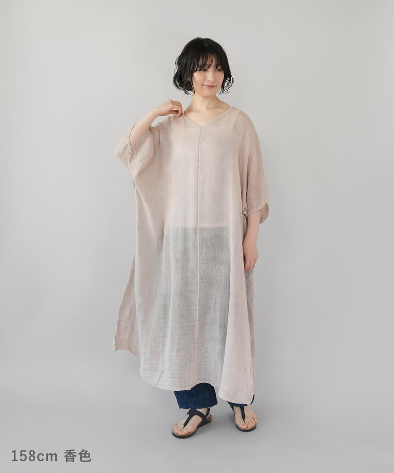 コットン100%の蚊帳生地を使用したマキシ丈のワンピース。