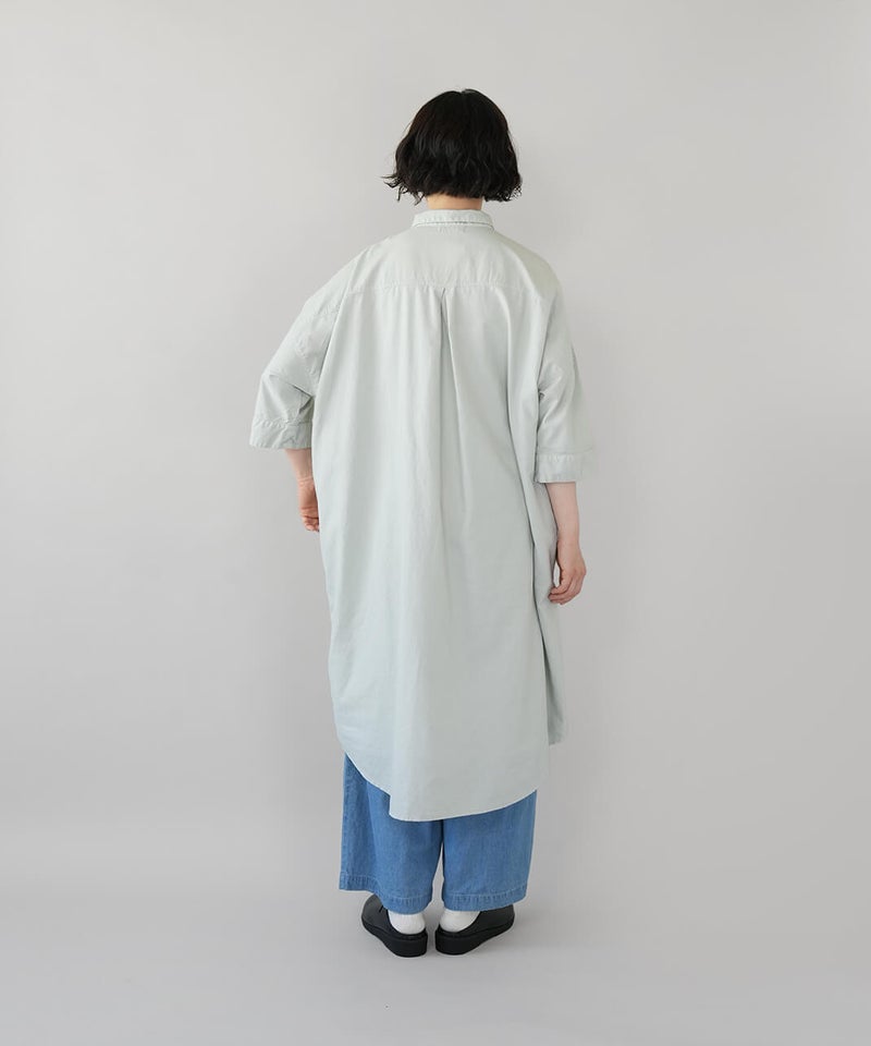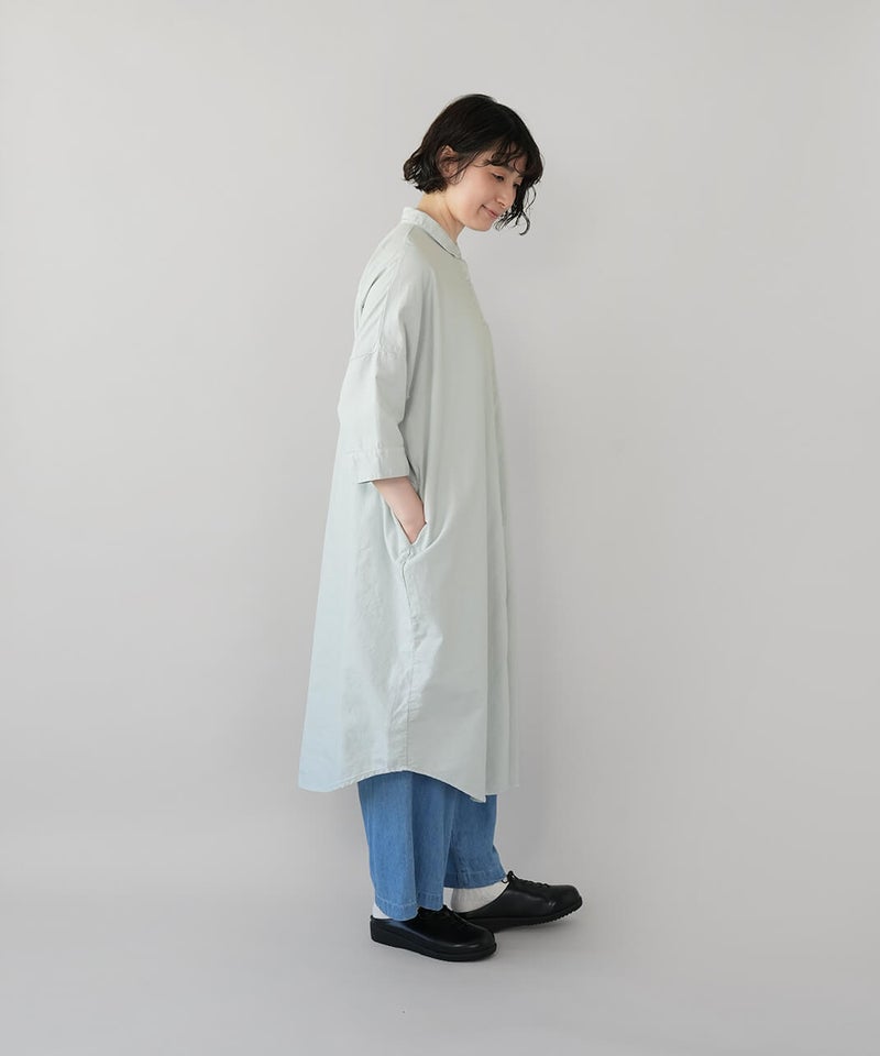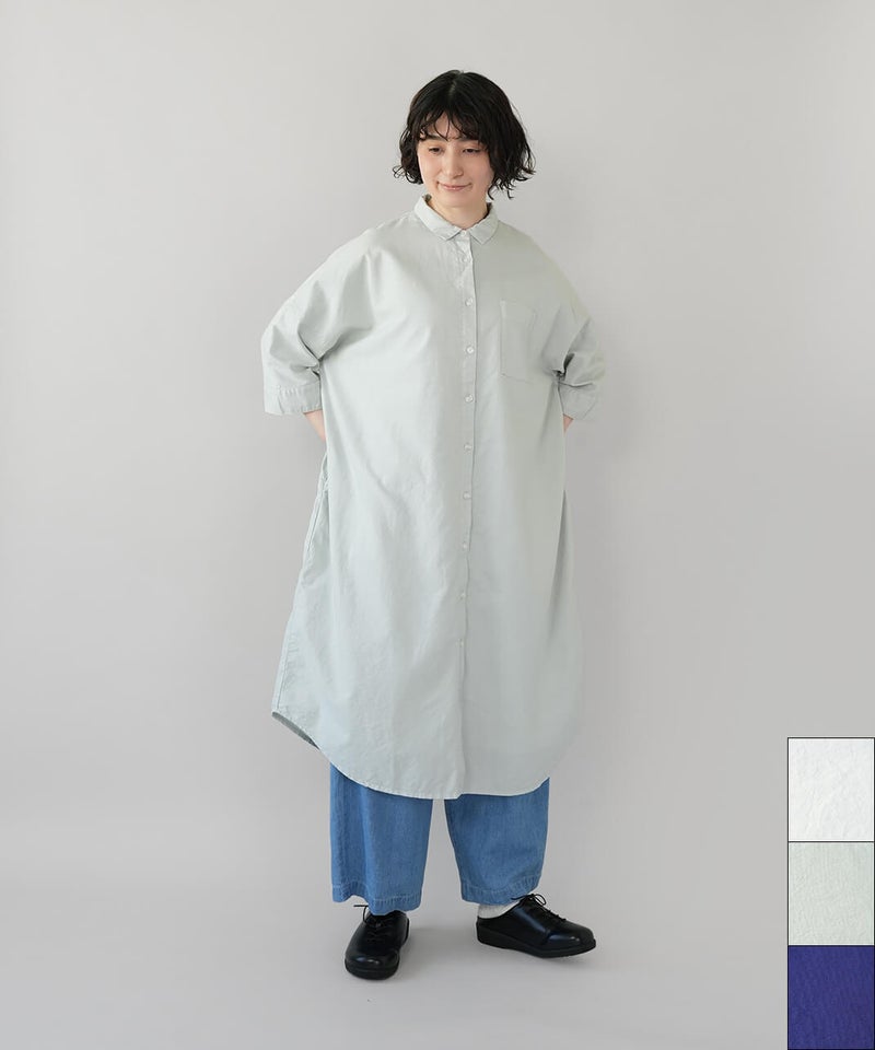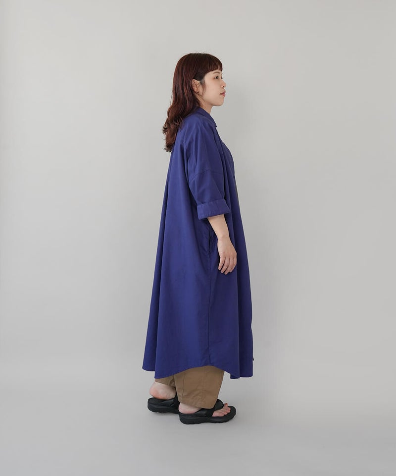 丈夫なオックス生地に製品染めを施して、ナチュラルな風合いに仕上げたワンピースです。