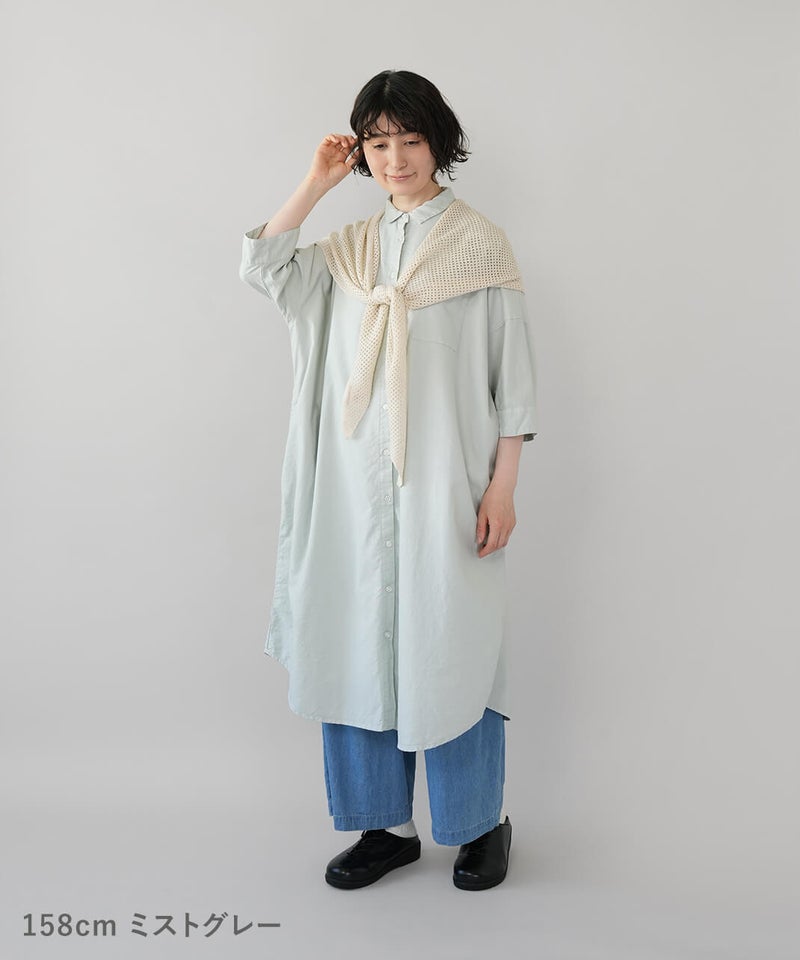 袖は風通しのよい7分袖。肘が隠れる長さで、季節の変わり目にも心地よく、袖口はロールアップして着用も可能です。