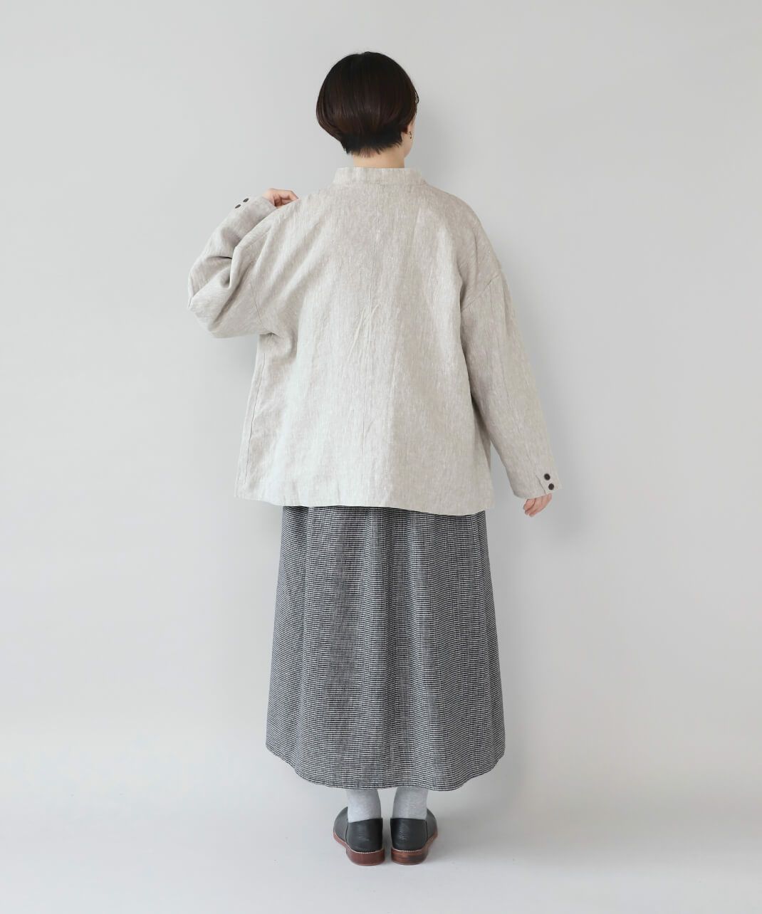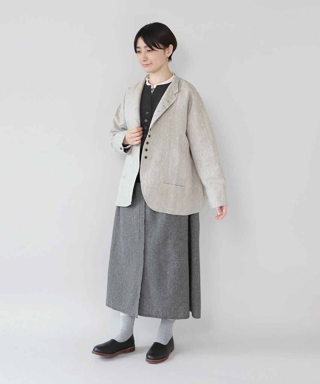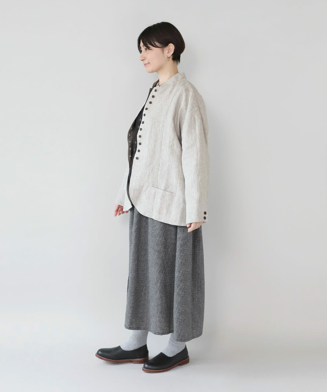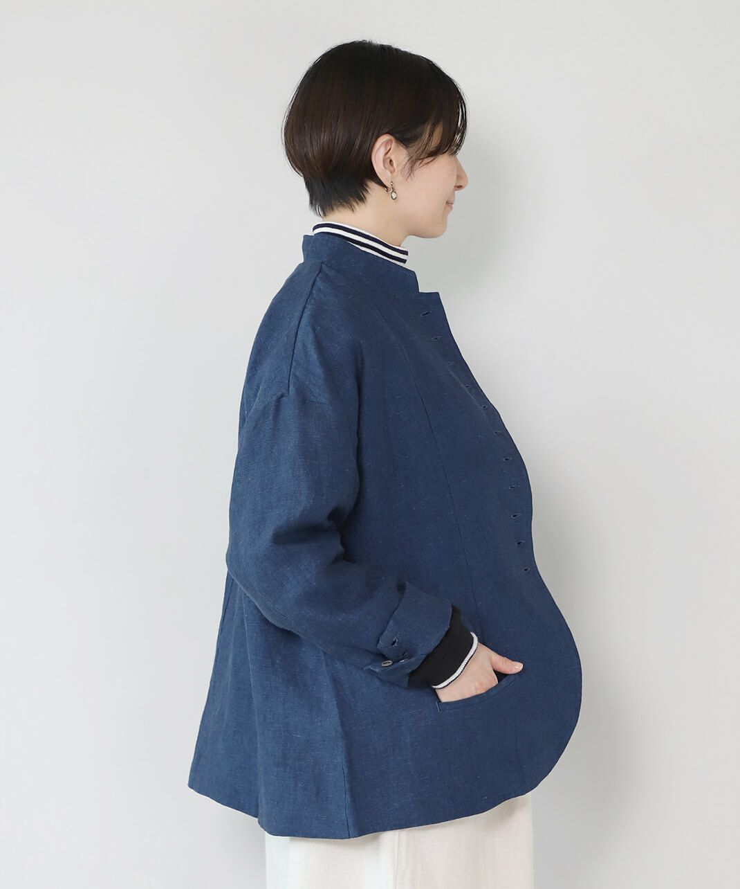 丈夫な9番手リネン生地を使用した多ボタンジャケットです。