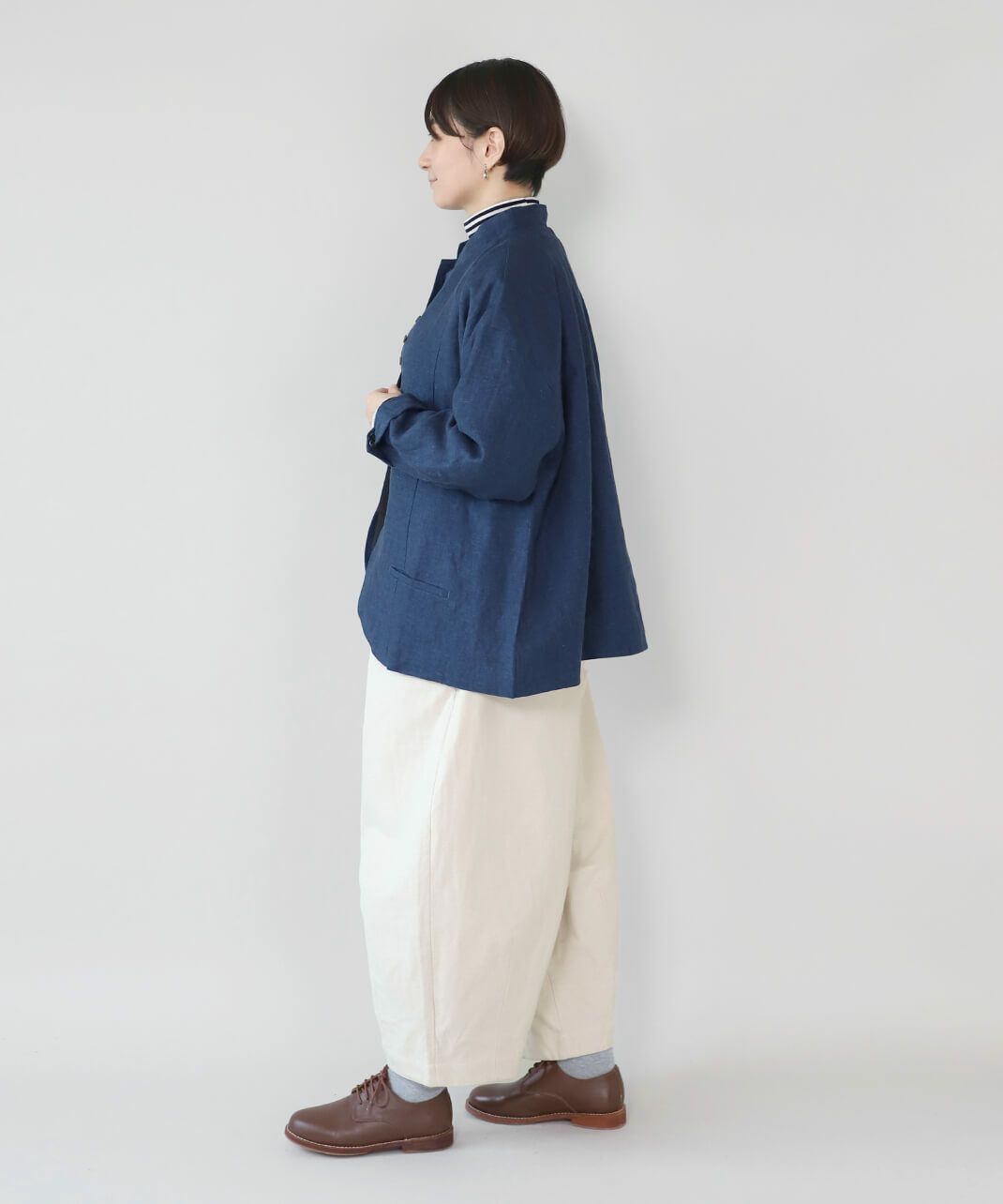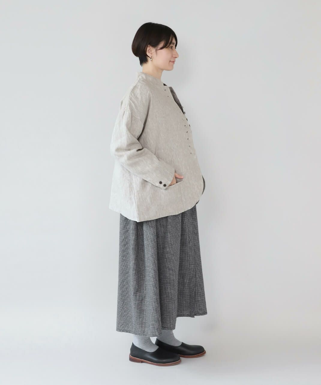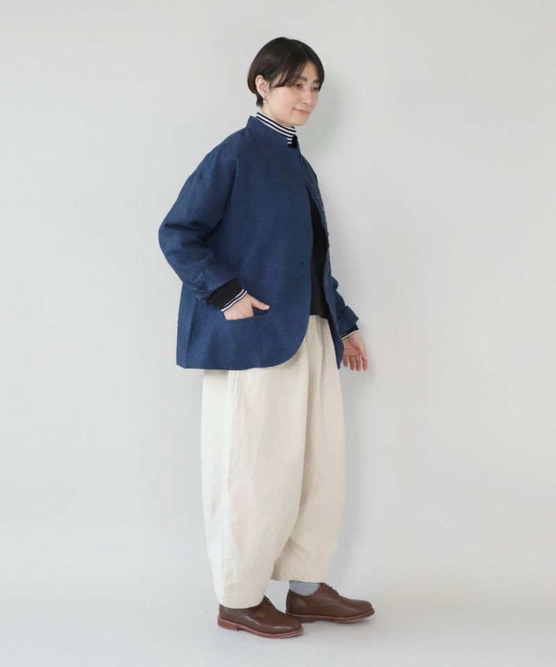 9番手のリネンは程よく厚みがあり、麻らしい独特のシャリっとした風合いが特徴です。
