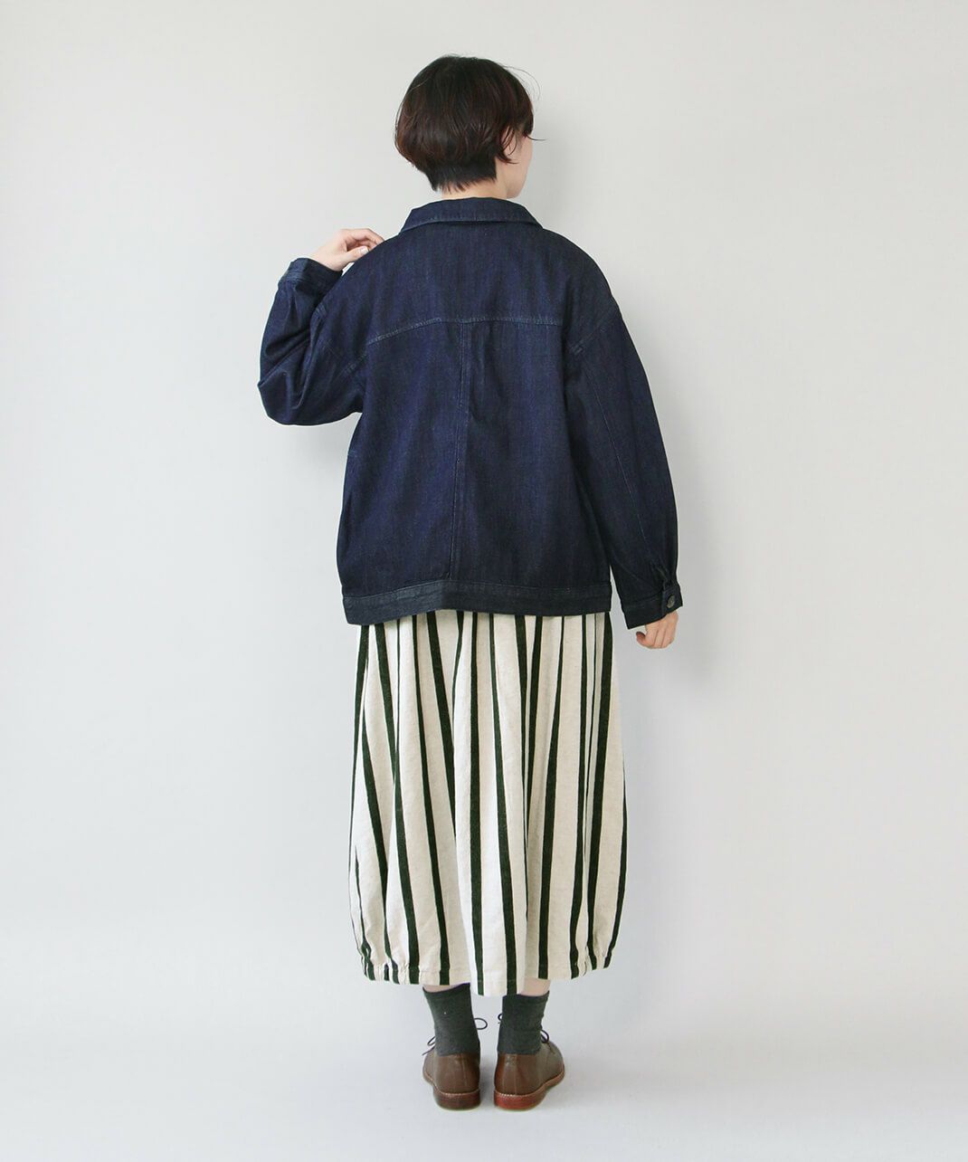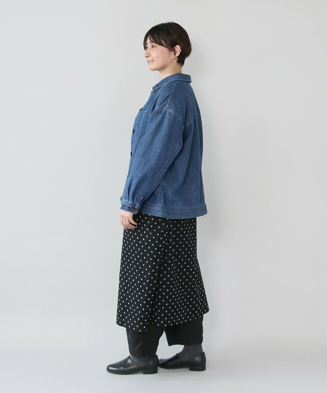 ナチュラルな雰囲気のコットンデニムジャケットです。柔らいデニムに裏起毛を施した、あたたかみのある雰囲気の1着です。肩が落ちるドロップショルダーとワイドな身頃で、着心地は軽やか。アームホールもゆったりしているので、インナーダウンなども着用可能。定番の形なので、長く着用出来るのも嬉しいポイントです。