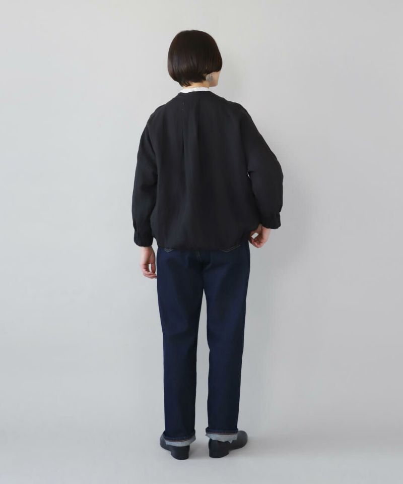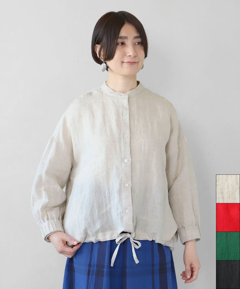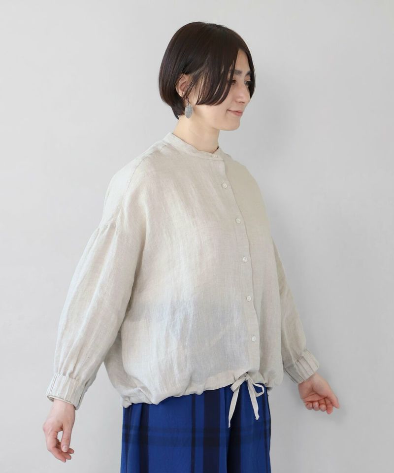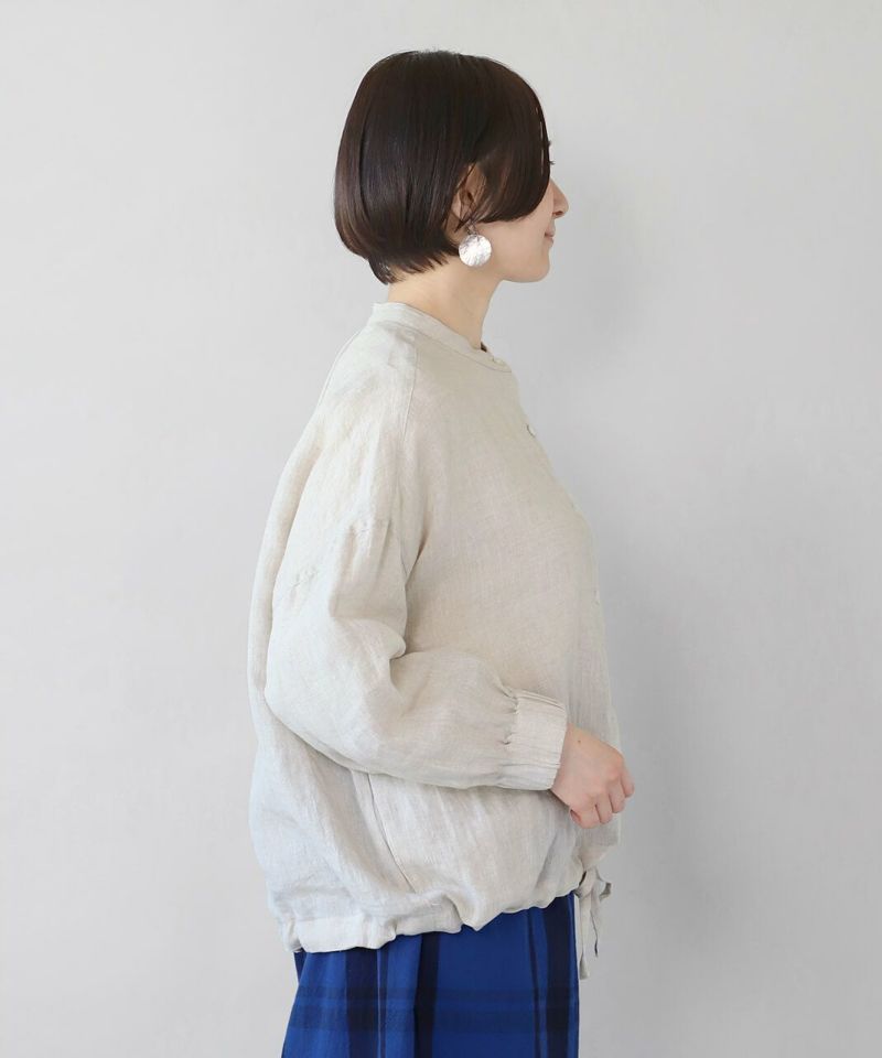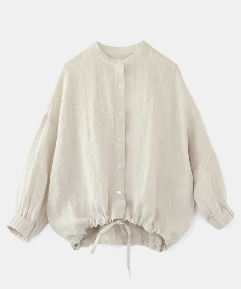 適度な厚みだけど軽い、光沢のあるリネン100%生地のバルーンカーディガンです。 ワイドな身頃にドロップショルダーでゆったりした着心地。裾はドローストリング仕様で絞ってバルーンシルエットに変更可能です。コロンと丸いラインがシンプルながらもおしゃれな雰囲気を演出してくれます。袖口はゴムなので好きなところでたくしあげることも出来ます。ボタンを閉めてプルオーバーとしての着用もおすすめ。