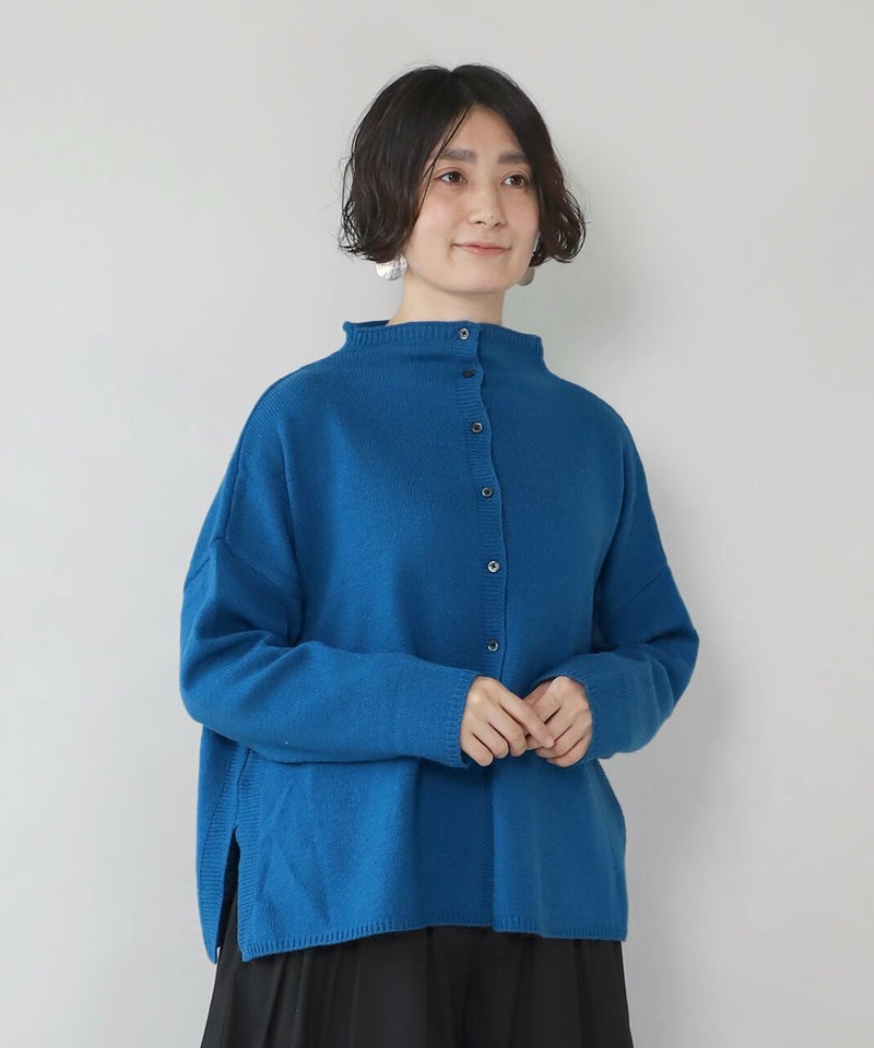 軽くて暖かく、保湿性に優れたラムウールをミックスした2WAYカーディガンです。 ワイドな身頃で柔らかなゆったりとした着心地。コンパクトなボトルネックがポイントです。鮮やかなカラー展開はコーディネートのアクセントになります。前後着用が可能な2WAY仕様で、ワンピースやカットソー、パンツなどの幅広いスタイリングに合わせやすく、1着あると重宝します。