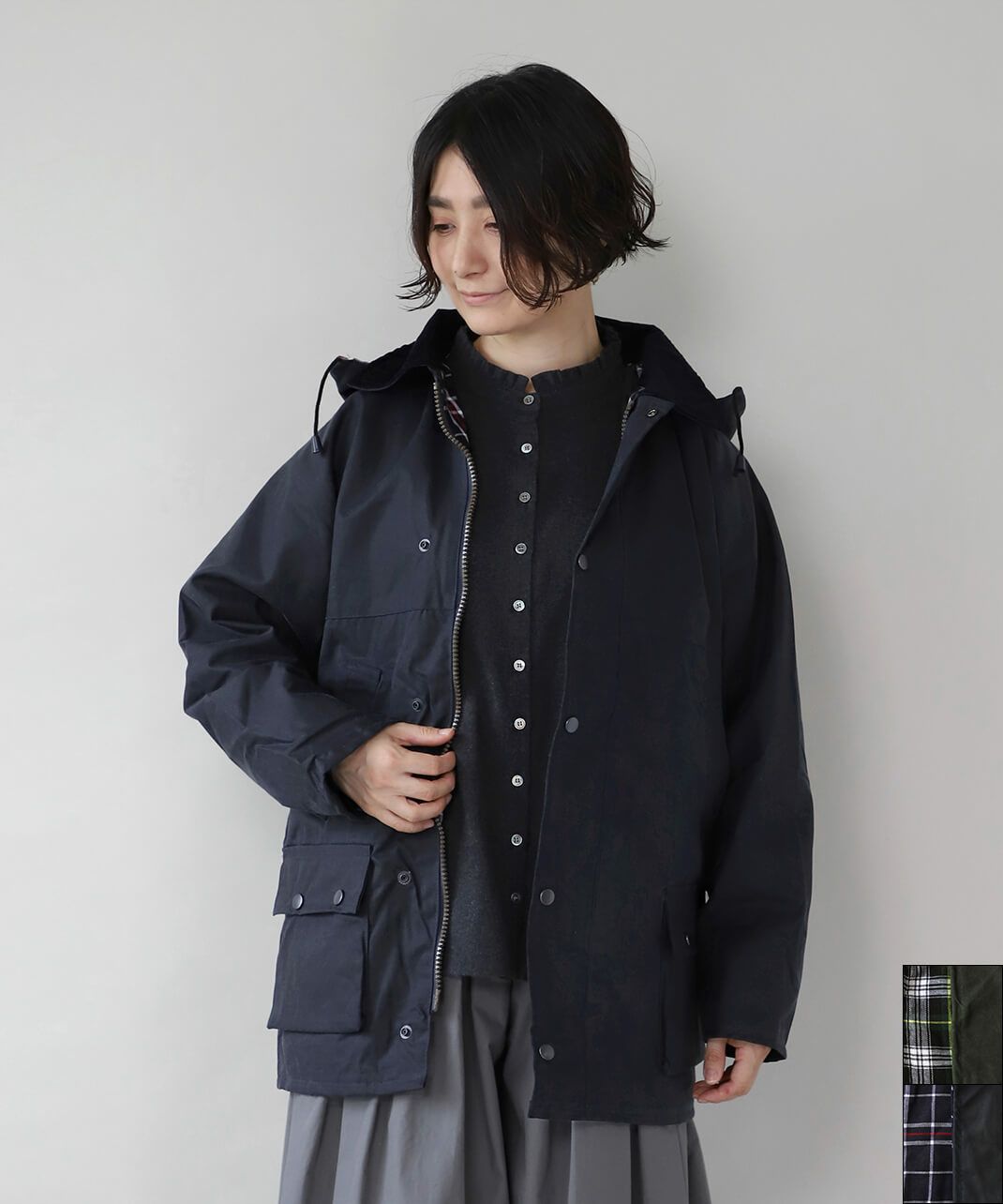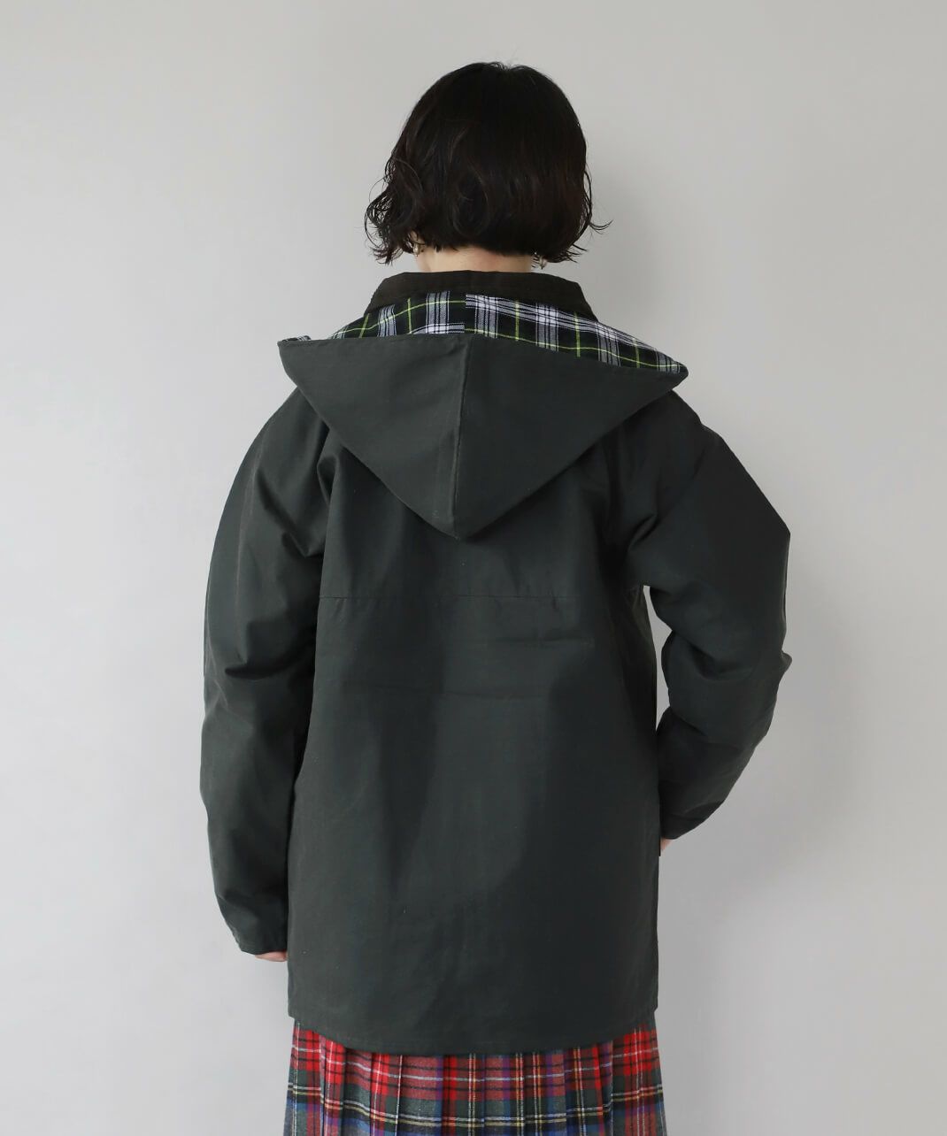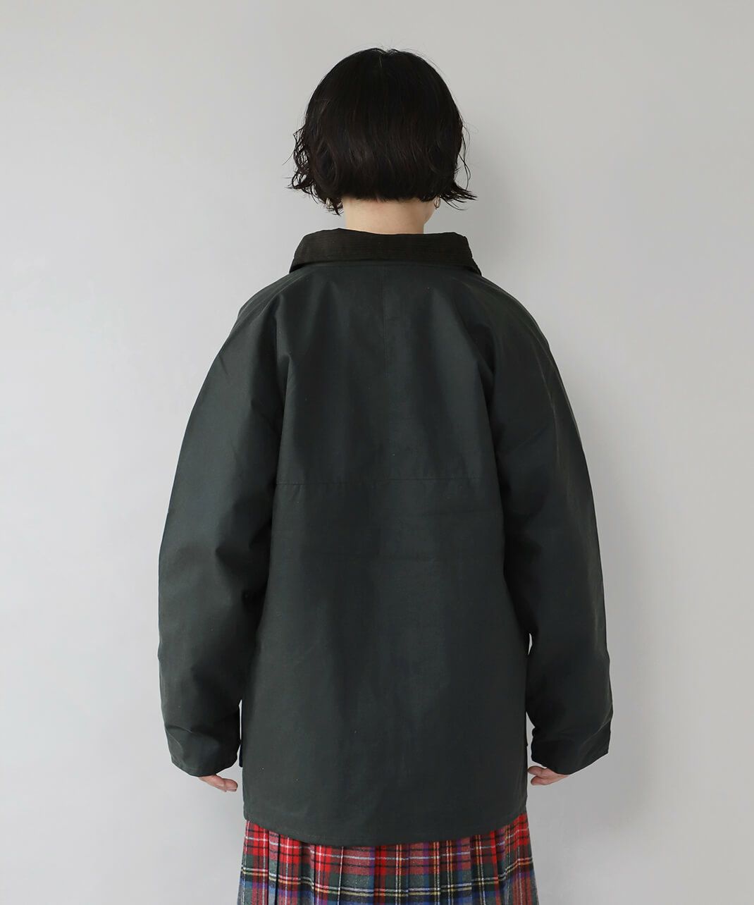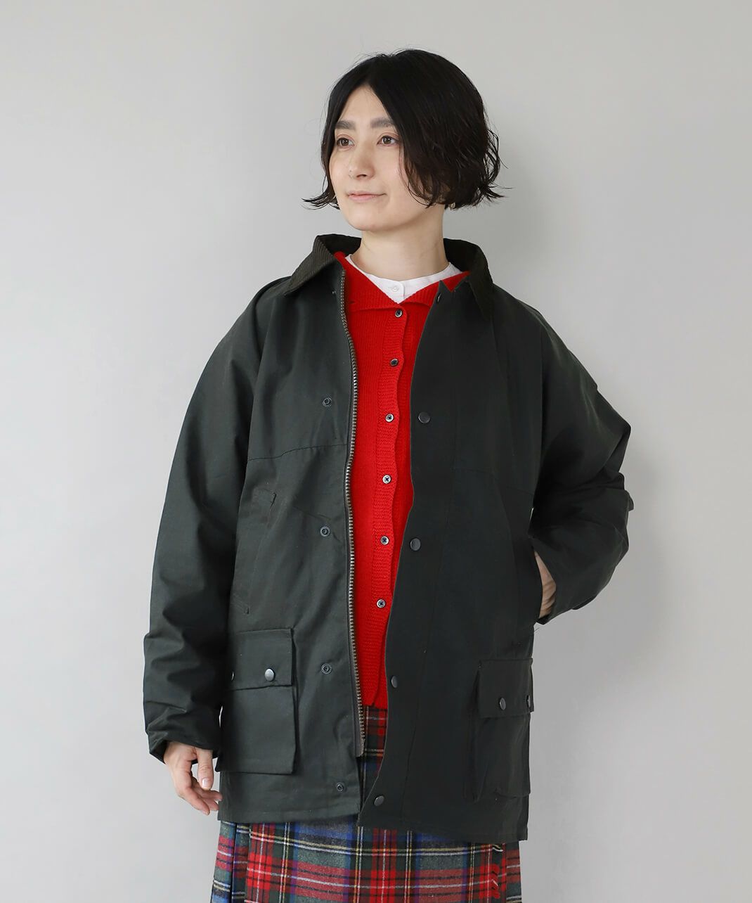 イギリスのファクトリーブランドRockall Outdoor (ロッコールアウトドア)。代表的なアイテムのオイルドジャケットです。 襟元には太畝のコーデュロイ、フラップ付きポケットの上に配置されたハンドウォーマーポケット、フロントの2WAYリングプルジップなど魅力的なディテールが詰まっています。ボタンで取り外しのできる、同じワックスコーティングを施したフード付き。 袖口の内側に厚みのあるリブを配置することで冷気の侵入を防ぎ防寒性も高めています。肩周りはラグランスリーブを採用することで、いろんなコーディネートに合わせやすく、永く愛用できる1着です。 着用を重ねる事でワックスコーティングが少しずつ乾き、独特の表情へと変化する経年変化も楽しめます。