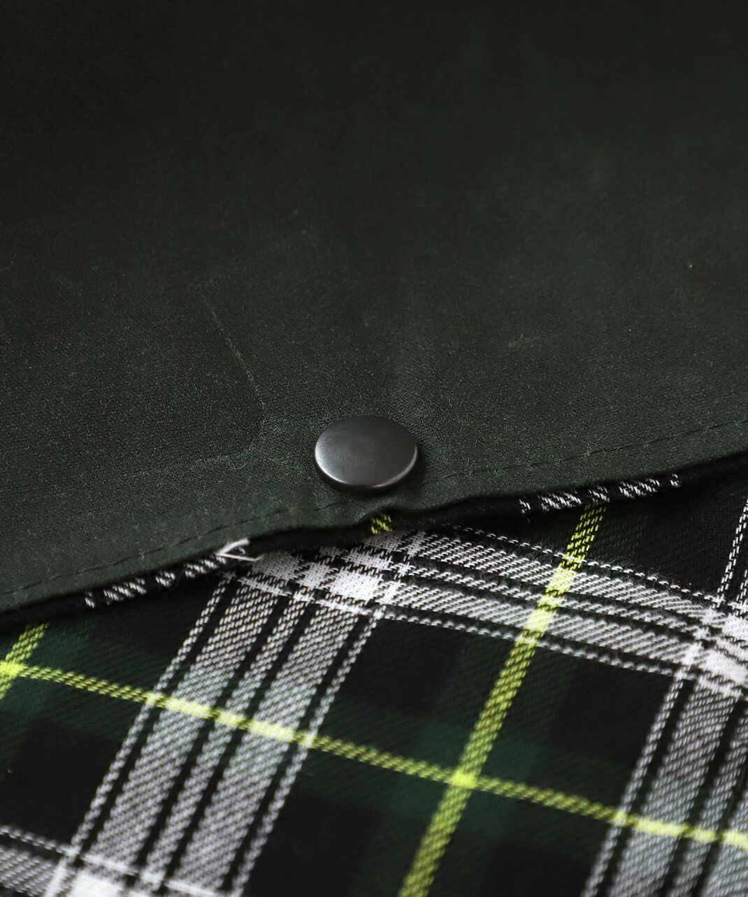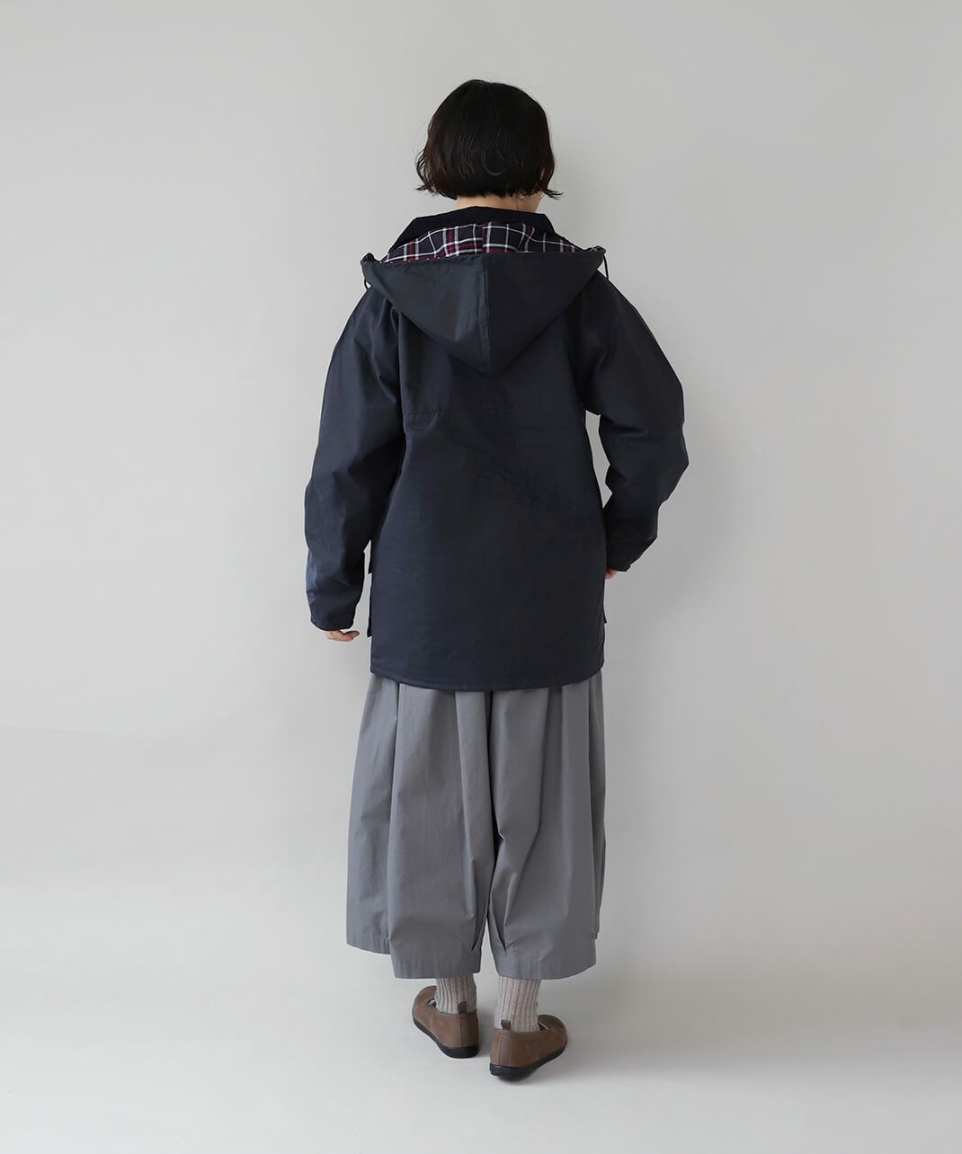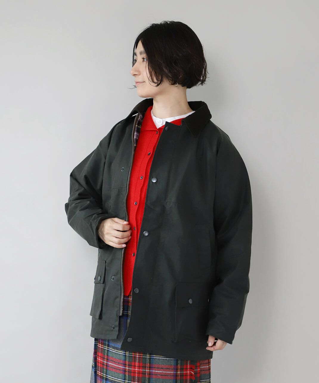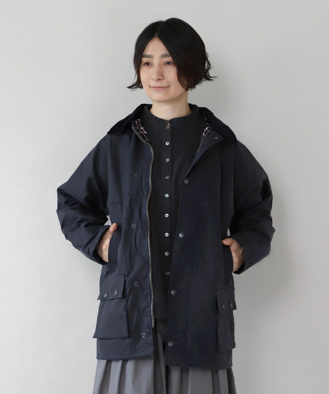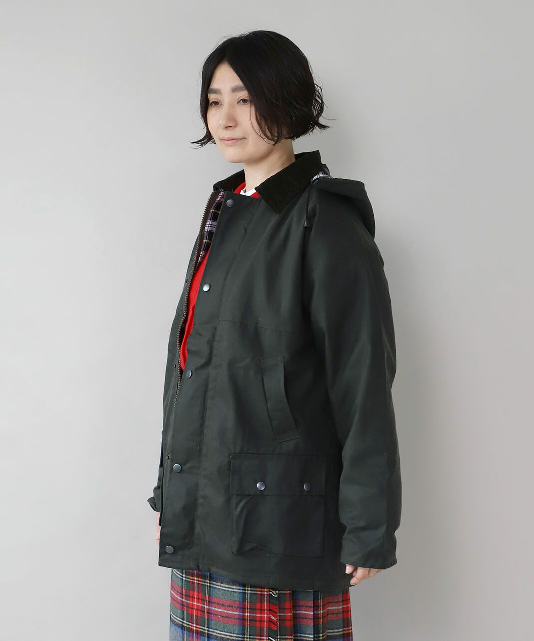 イギリスのファクトリーブランドRockall Outdoor (ロッコールアウトドア)。代表的なアイテムのオイルドジャケットです。 襟元には太畝のコーデュロイ、フラップ付きポケットの上に配置されたハンドウォーマーポケット、フロントの2WAYリングプルジップなど魅力的なディテールが詰まっています。ボタンで取り外しのできる、同じワックスコーティングを施したフード付き。 袖口の内側に厚みのあるリブを配置することで冷気の侵入を防ぎ防寒性も高めています。肩周りはラグランスリーブを採用することで、いろんなコーディネートに合わせやすく、永く愛用できる1着です。 着用を重ねる事でワックスコーティングが少しずつ乾き、独特の表情へと変化する経年変化も楽しめます。
