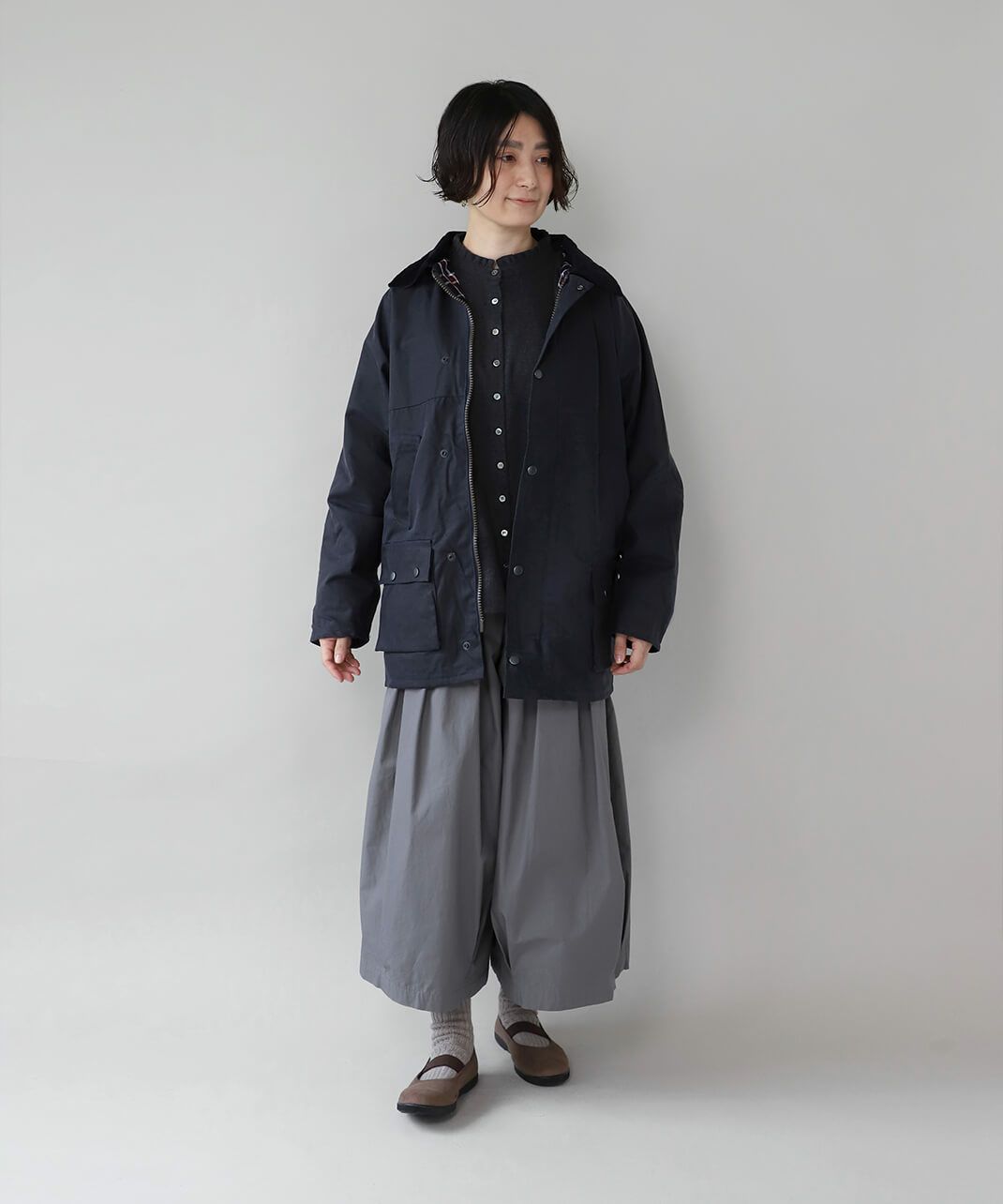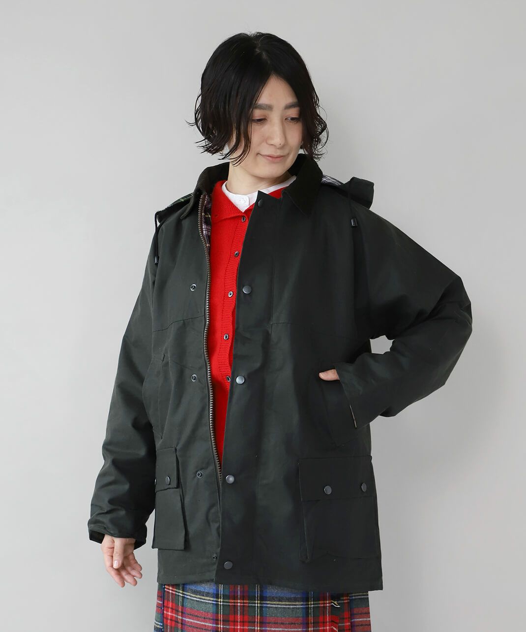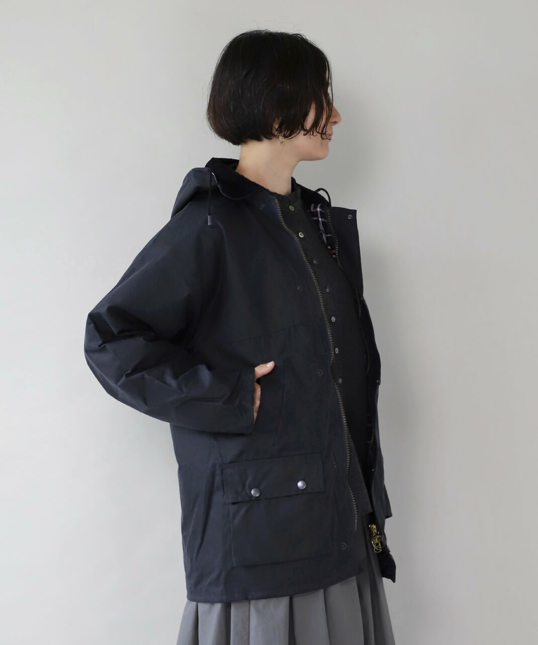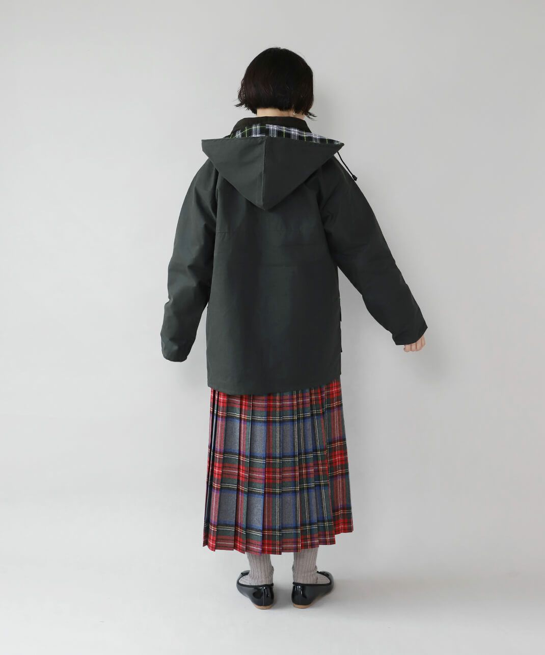 イギリスのファクトリーブランドRockall Outdoor (ロッコールアウトドア)。代表的なアイテムのオイルドジャケットです。 襟元には太畝のコーデュロイ、フラップ付きポケットの上に配置されたハンドウォーマーポケット、フロントの2WAYリングプルジップなど魅力的なディテールが詰まっています。ボタンで取り外しのできる、同じワックスコーティングを施したフード付き。 袖口の内側に厚みのあるリブを配置することで冷気の侵入を防ぎ防寒性も高めています。肩周りはラグランスリーブを採用することで、いろんなコーディネートに合わせやすく、永く愛用できる1着です。 着用を重ねる事でワックスコーティングが少しずつ乾き、独特の表情へと変化する経年変化も楽しめます。