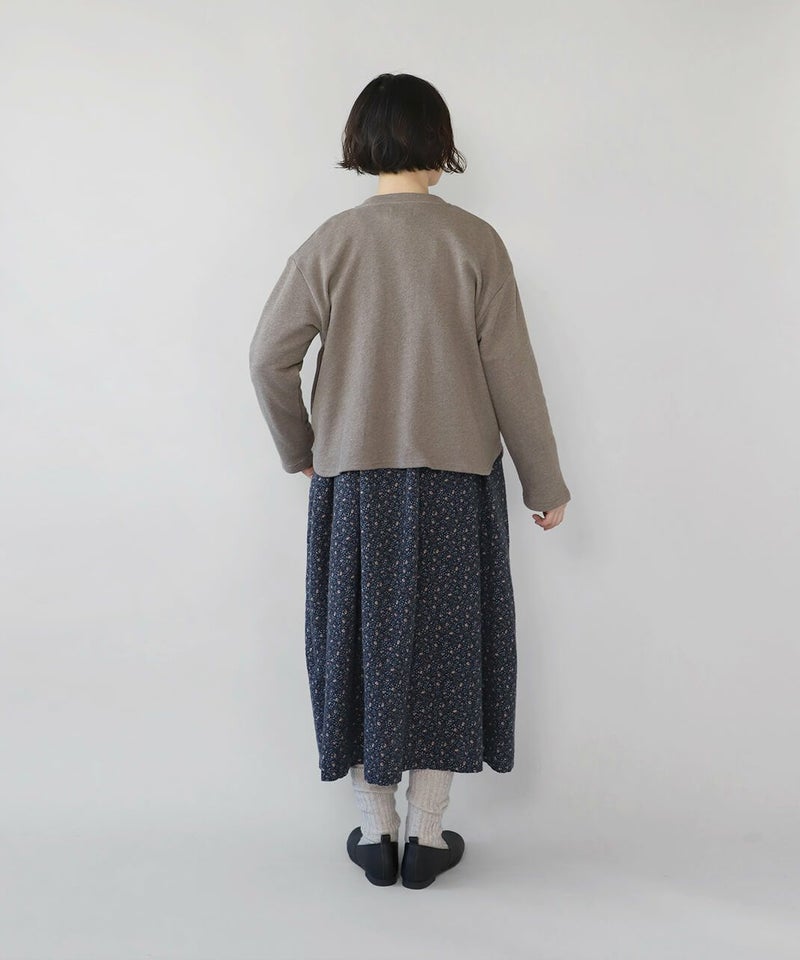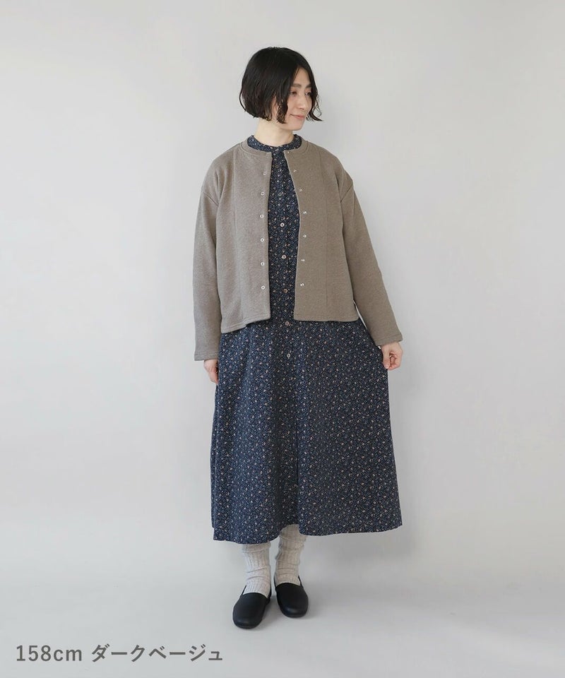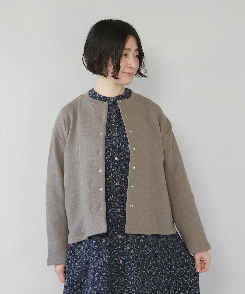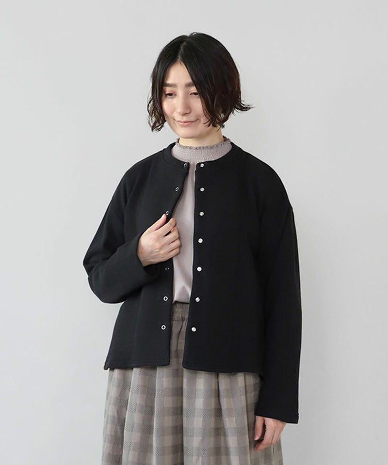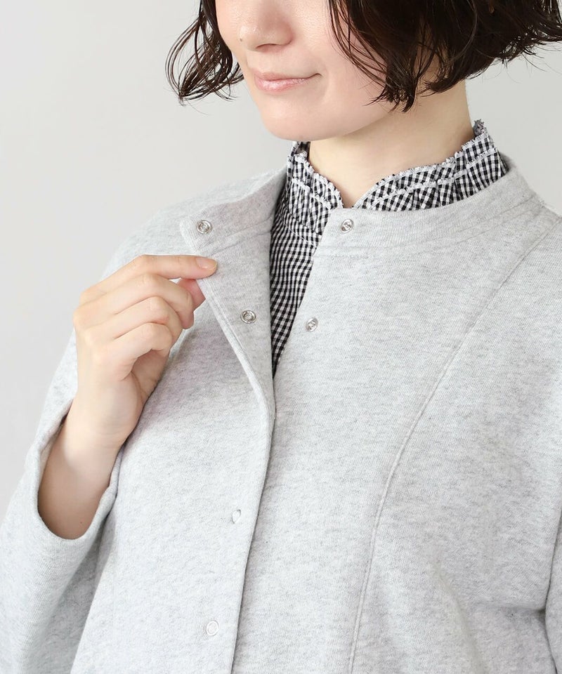 軽くてやわらかいコットン裏毛素材を使用したスナップボタンのカーディガンです。 シンプルなボックスシルエットでどんなスタイルにもなじみやすく、リラックスした着心地。裾のラウンドカットデザインが可愛らしい雰囲気を演出してくれます。 リングドットのスナップボタンは脱着がしやすく、サイドにはきちんとポケットも付いています。気軽に洗濯できてお手入れも簡単。 さっと羽織りやすく、日常使いにおすすめの1着です。