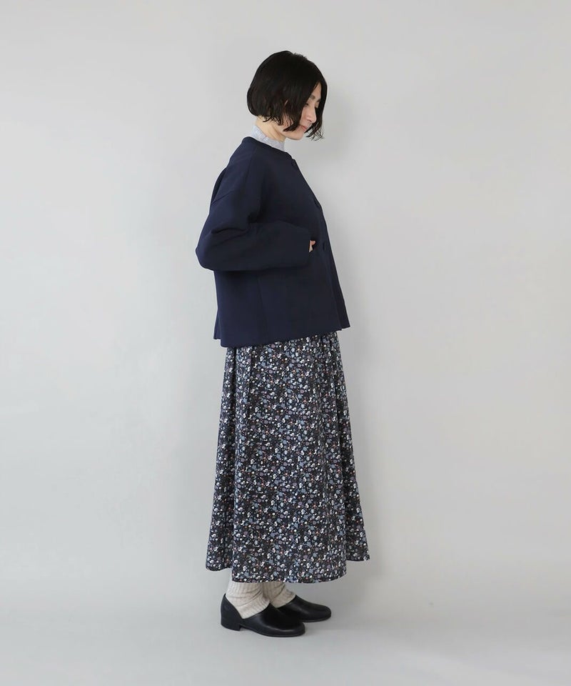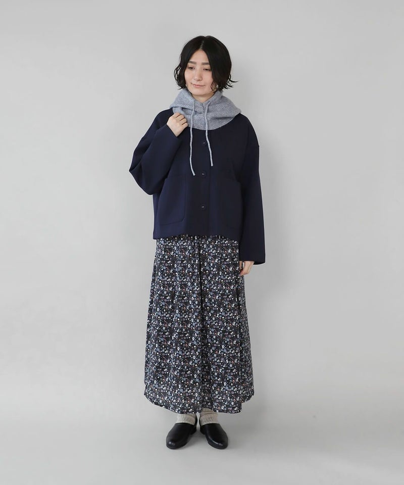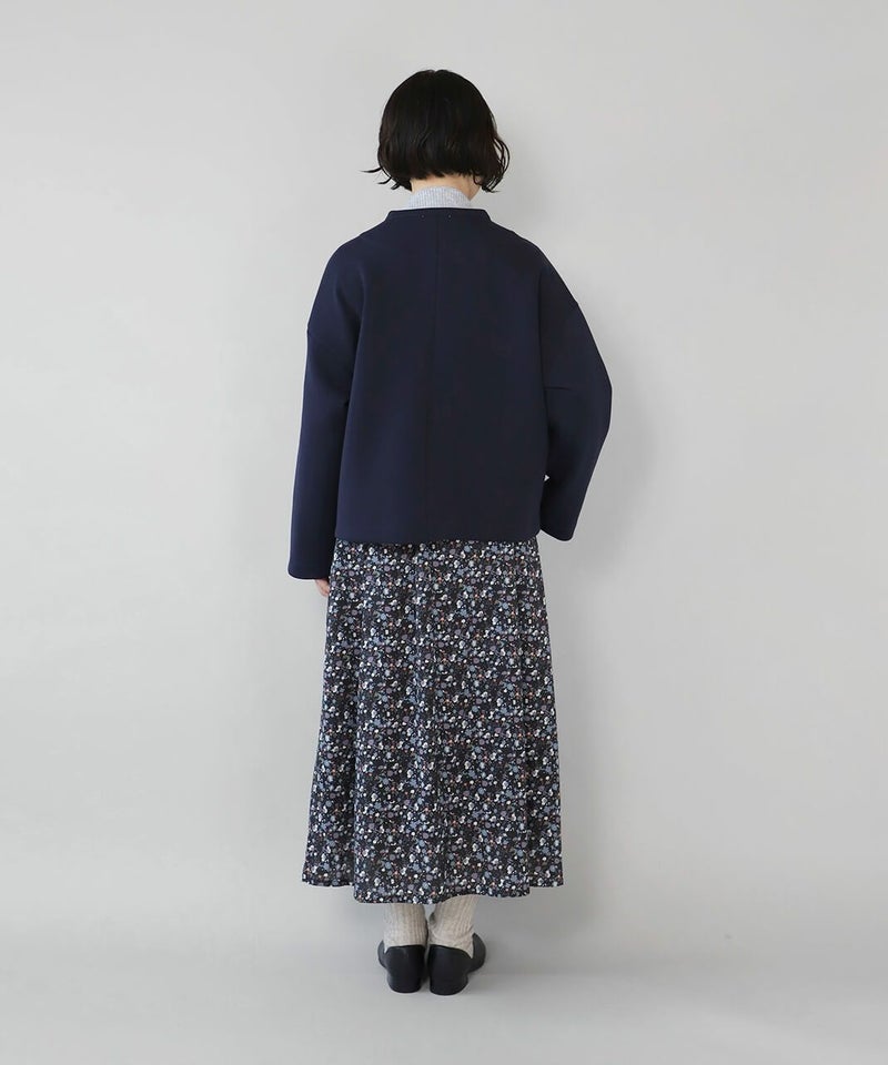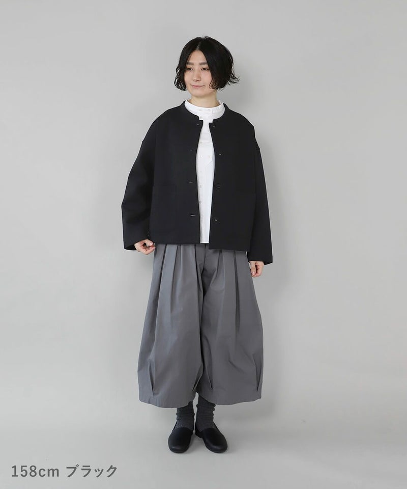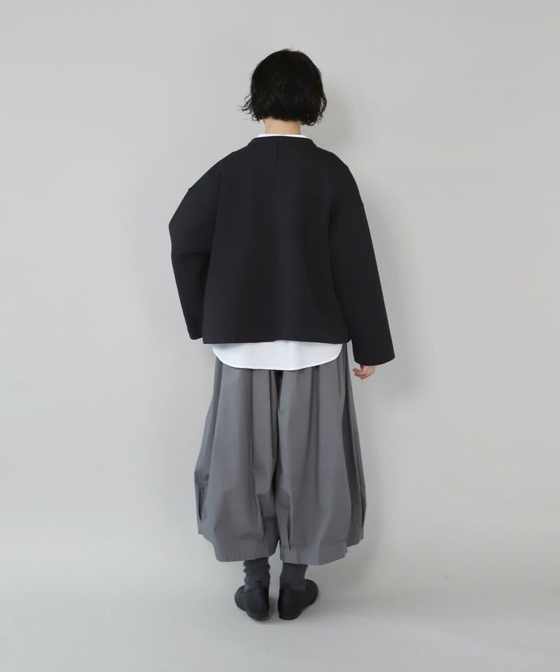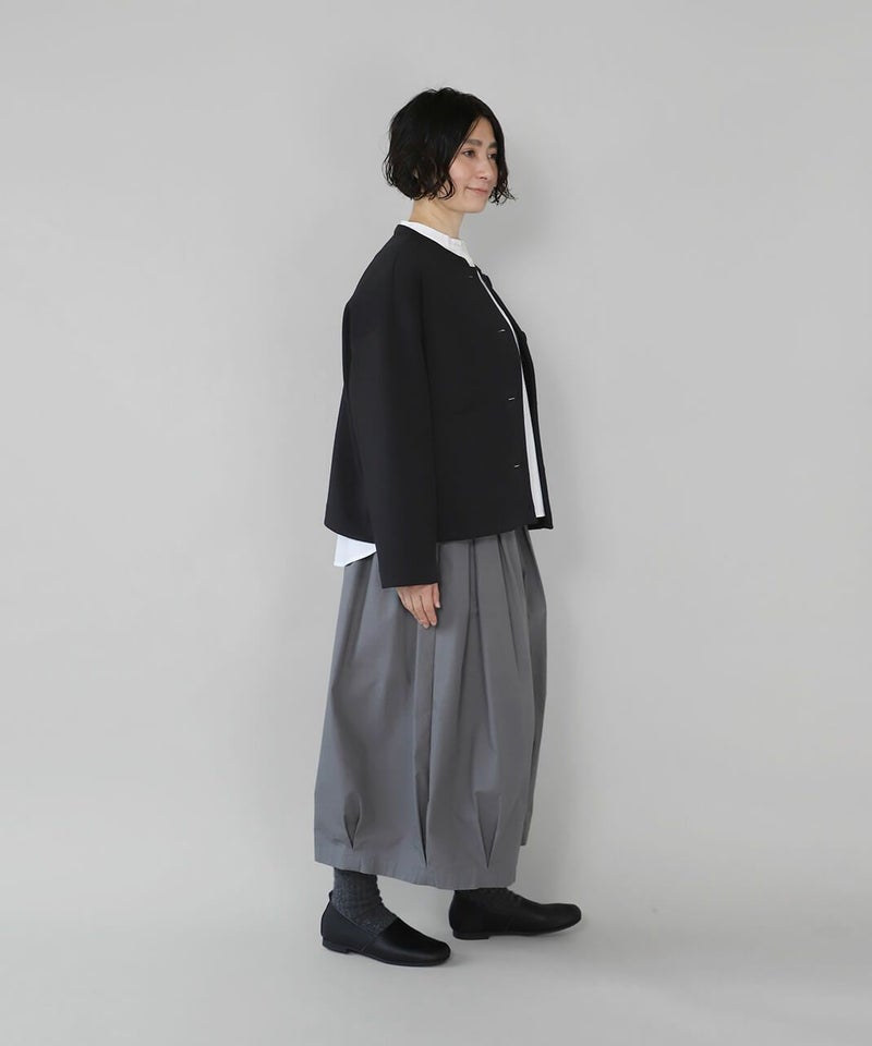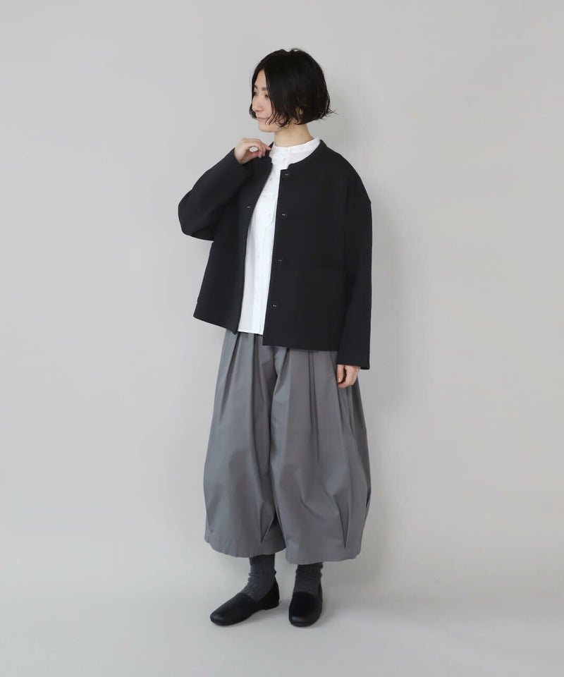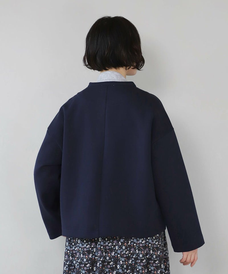 なめらかでさらりとした肌触りのポンチ素材を使用したマオカラージャケットです。 シンプルなマオカラーにストレッチの効いた素材とゆとりのある身頃でリラックスした着心地。しっかりとした肉感とマットな質感のポンチ素材が上品な印象を演出してくれます。 大きなパッチポケットとくるみボタンがコーディネートのアクセントになります。 合わせるアイテムによってオフィスカジュアルにもおすすめの1着です。