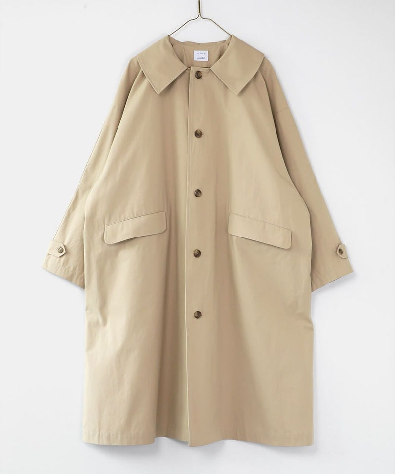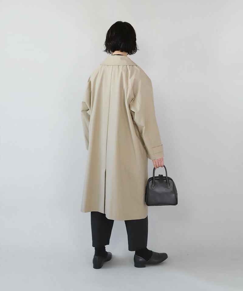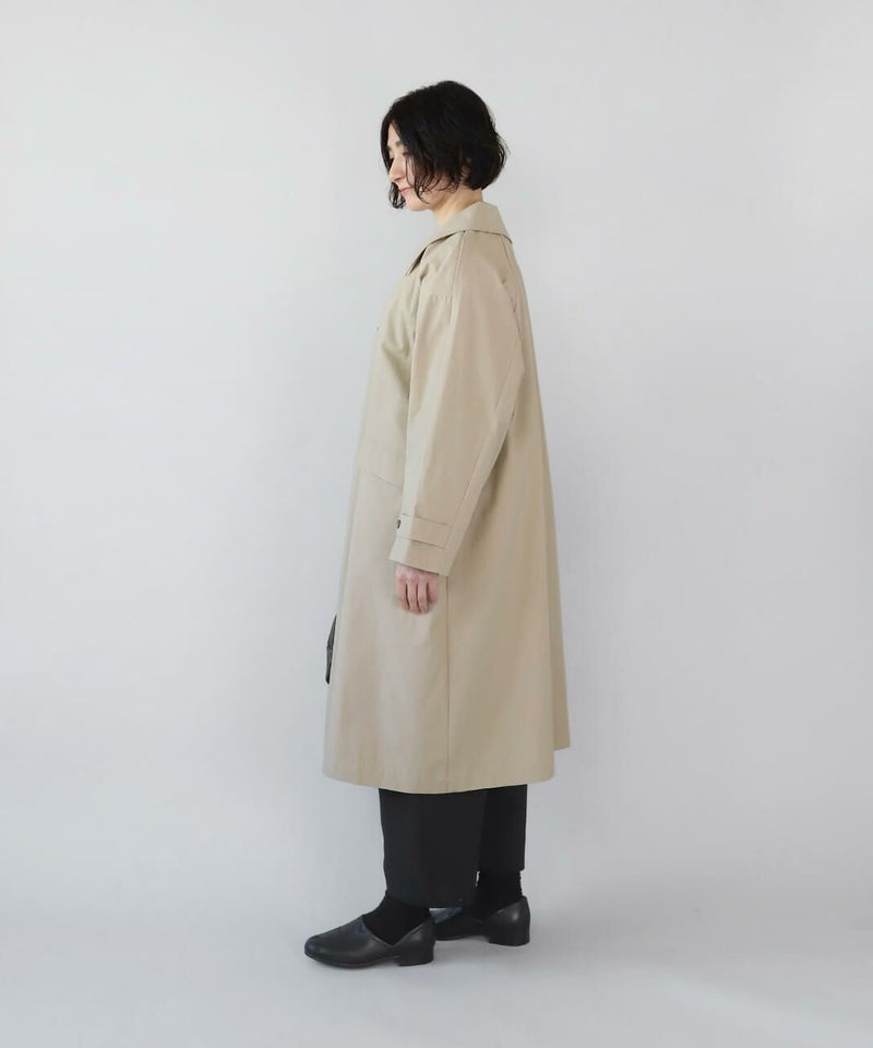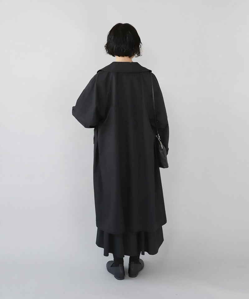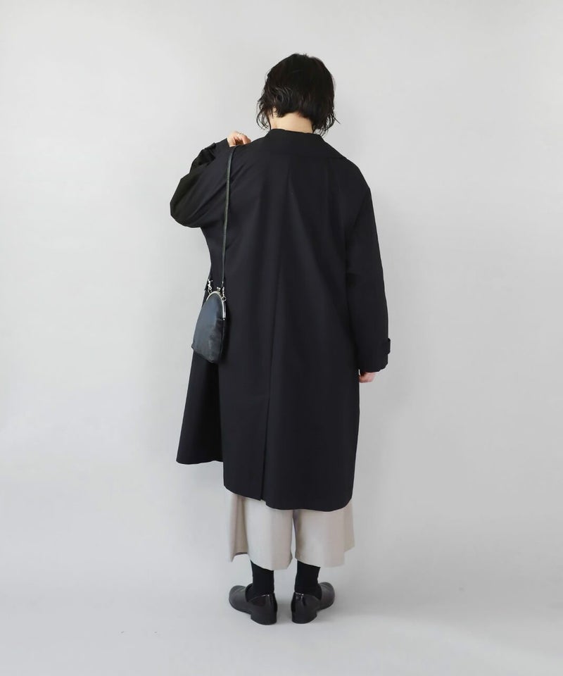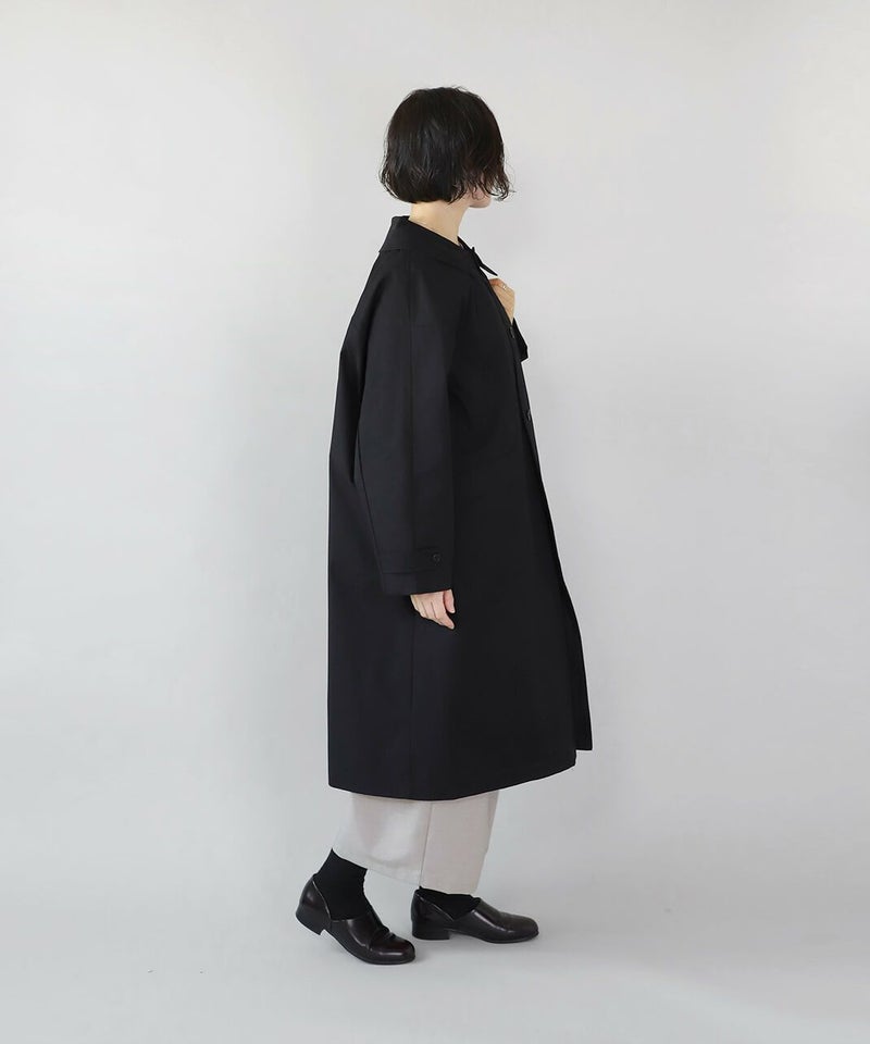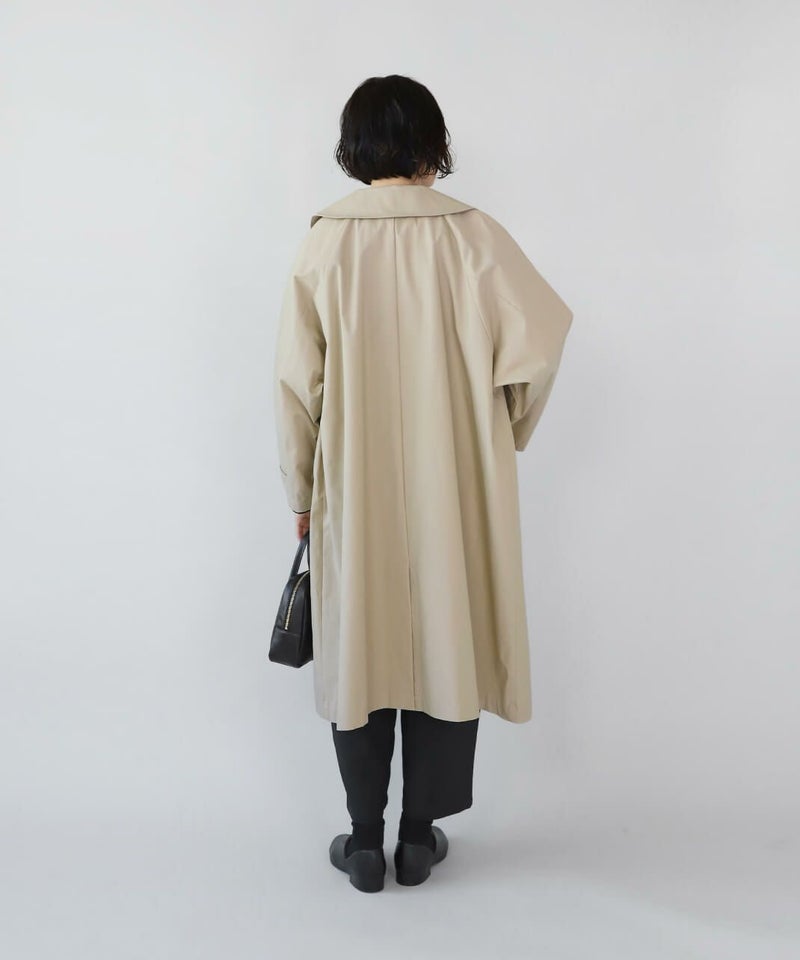 上品な光沢感のある高密度ツイル生地を使用した、ワイドカラーコートです。