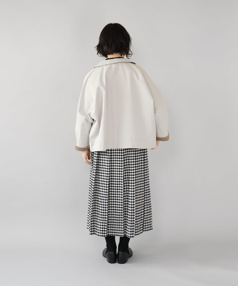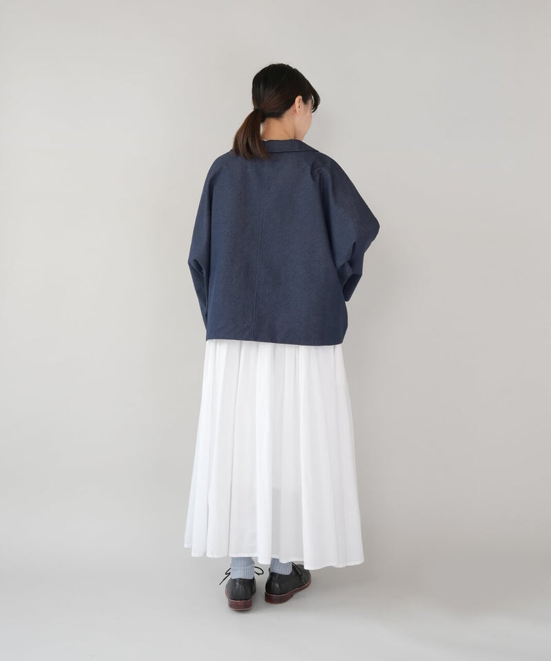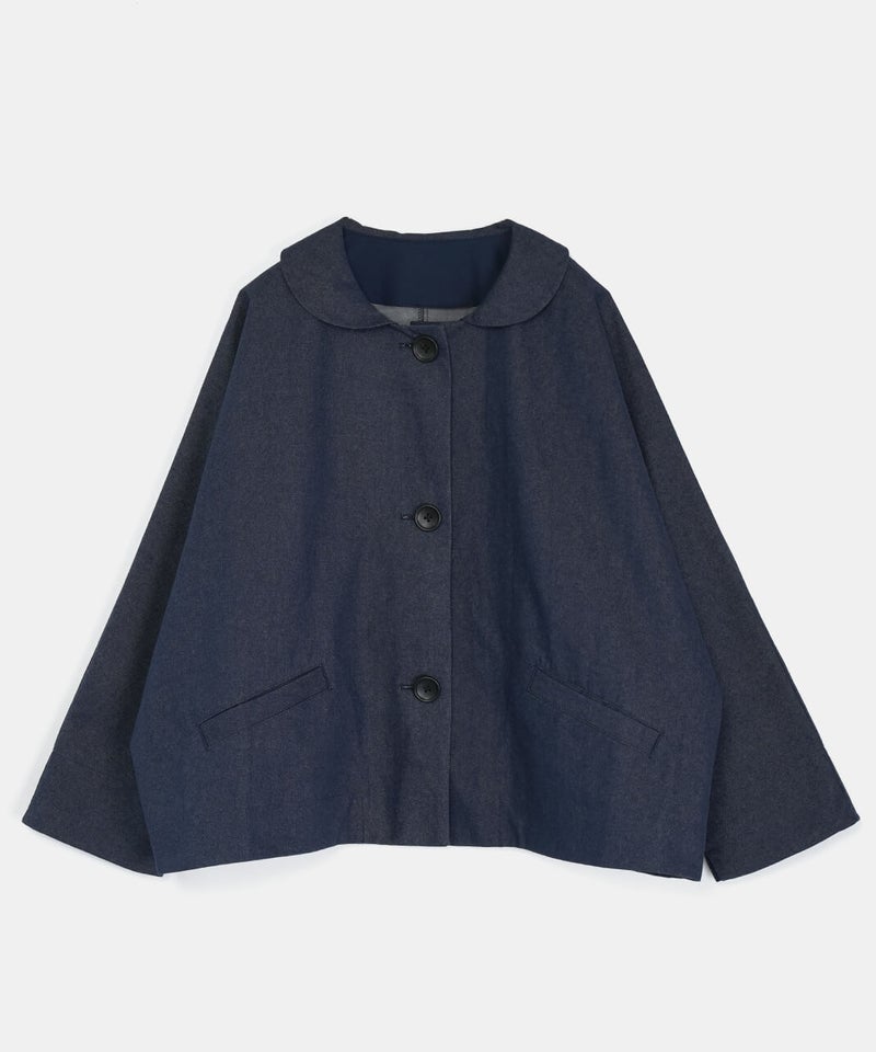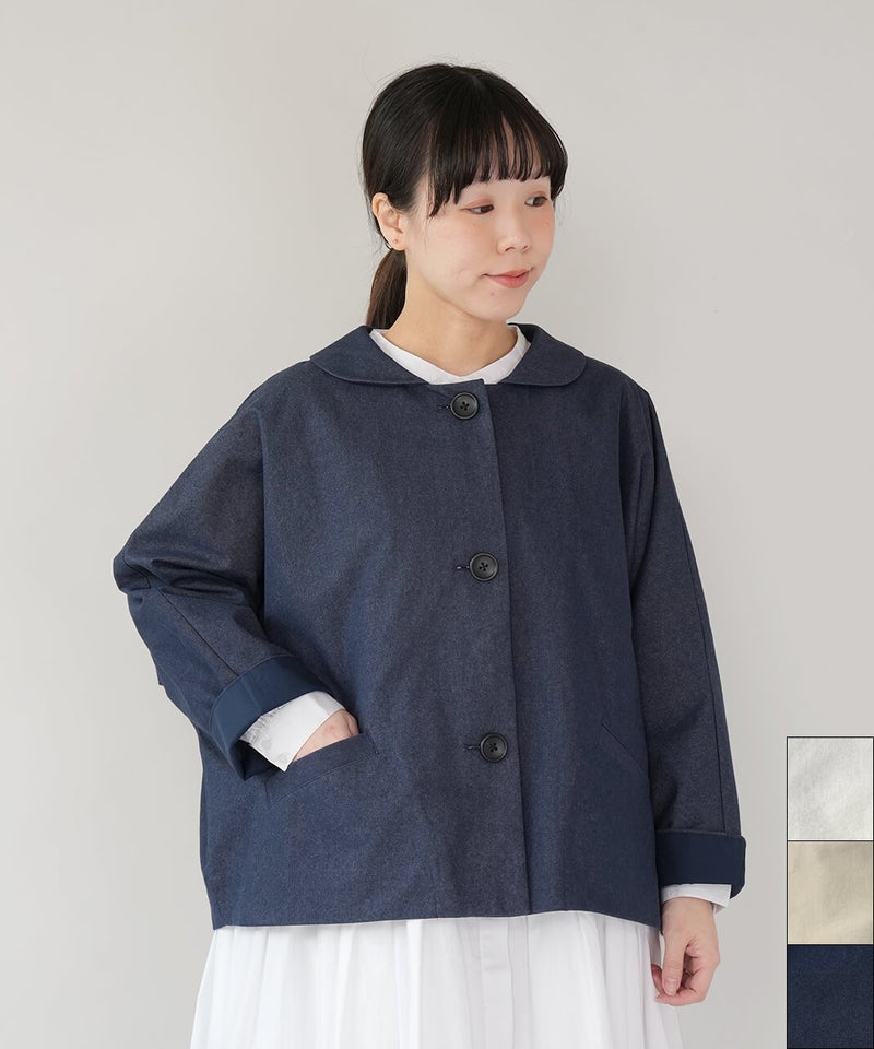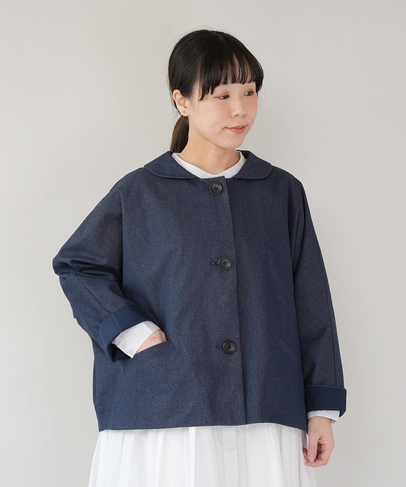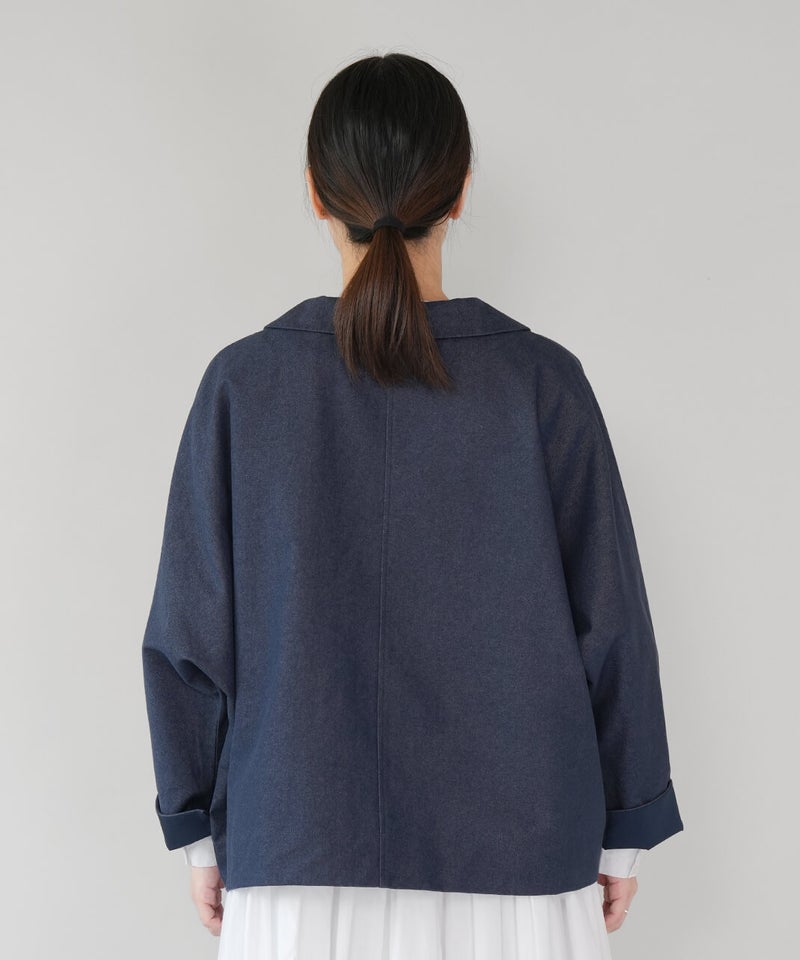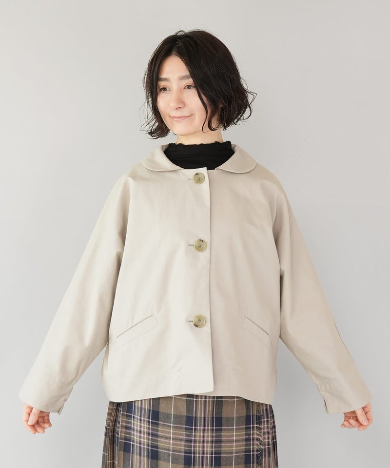 ほどよく厚みのあるコットンナイロン生地を使用したジャケットです。丸みのある襟とドルマンスリーブデザインが、やわらかでかわいい印象を演出してくれます。ボックスシルエットはゆったりとした着心地でどんなインナーとも相性の良い1着です。さっと羽織ることができ、春先には特に重宝します。