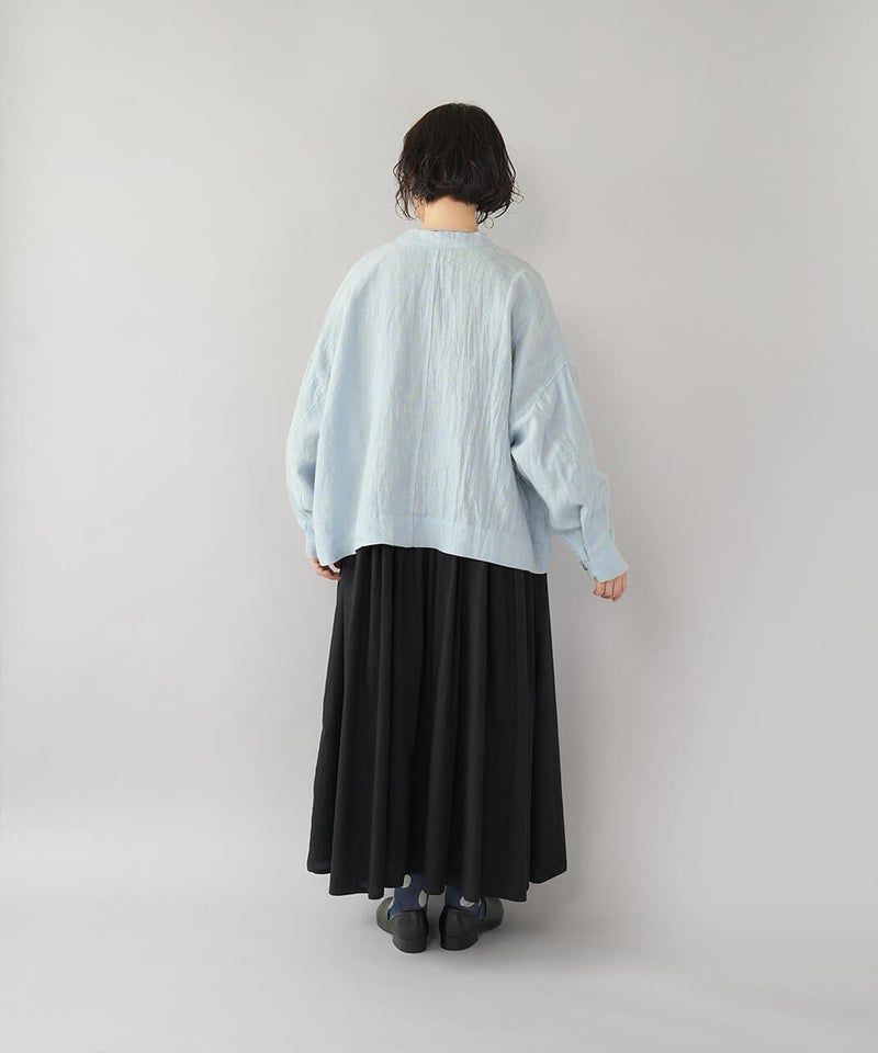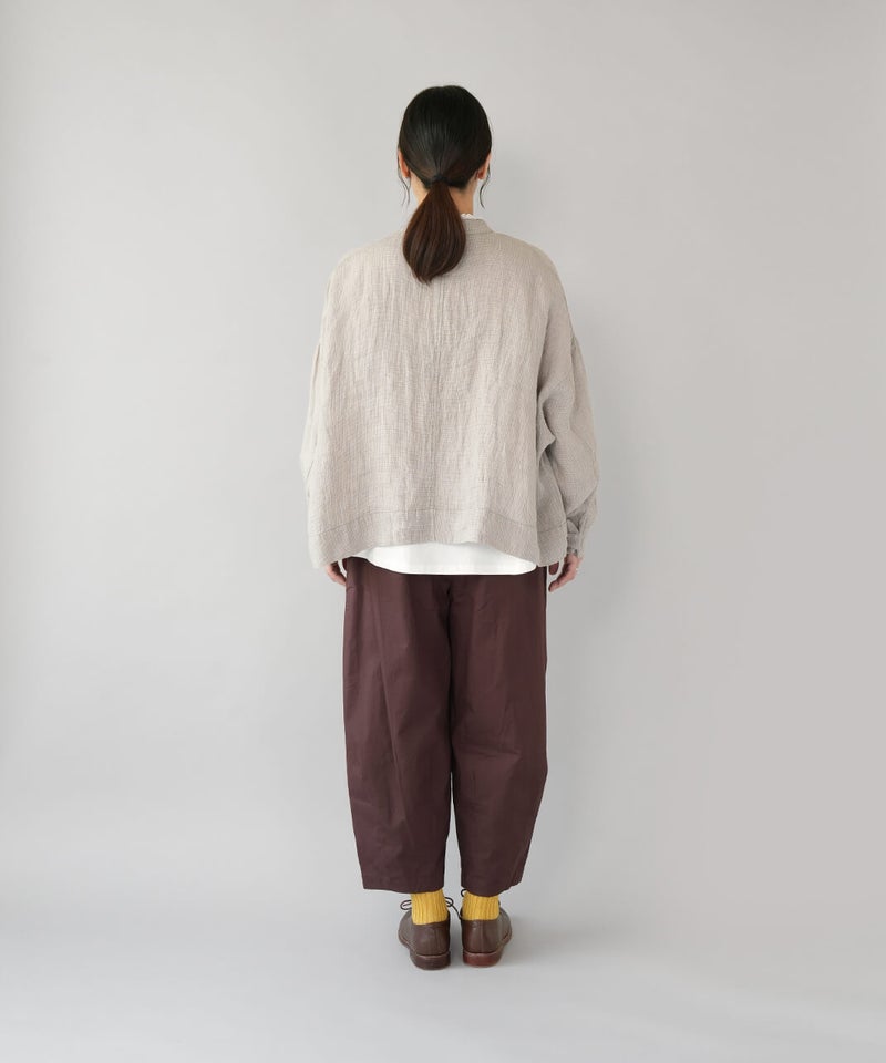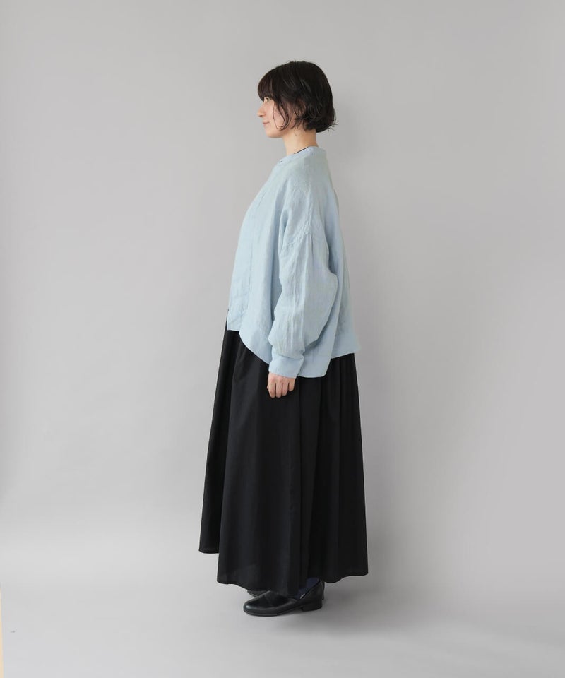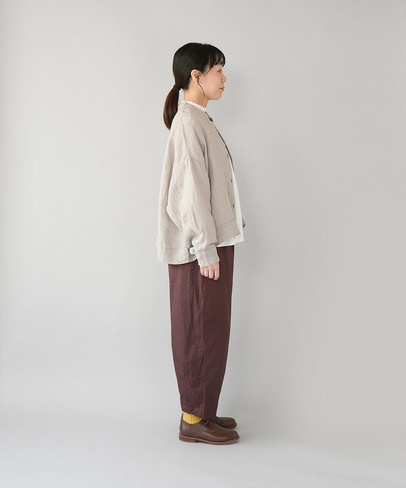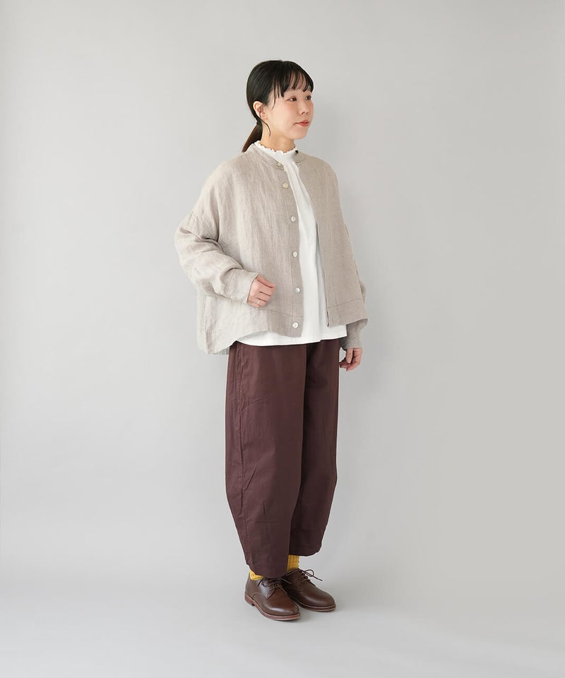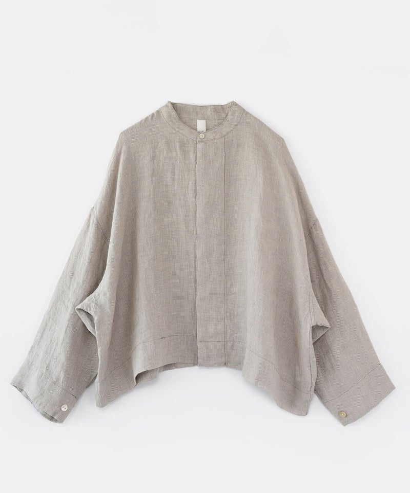 さらりとした肌ざわりが心地よい、麻100%のジャケットです。細かなギンガムチェックの薄手の生地で、リネンならではの清涼感が感じられます。汗ばむ季節の羽織りとしてはもちろん、冷房のきいた室内でさっと羽織るのにも。軽やかな着心地で、季節の変わり目にも頼りになります。袖口のボタンを留めると、ふんわりとしたボリューム袖に。前立ては太めの比翼仕立てで、身幅はゆったりと、丈はやや短め。こだわりの詰まった1着です。その日の装いに合わせて、表情の変化が楽しまめす。