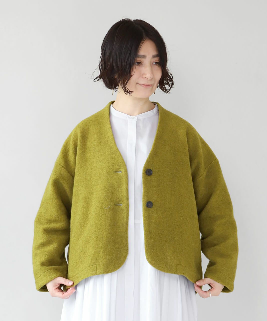 コットンやウール混など素材感を大切に、ナチュラル服に合わせやすい羽織りを揃えています。