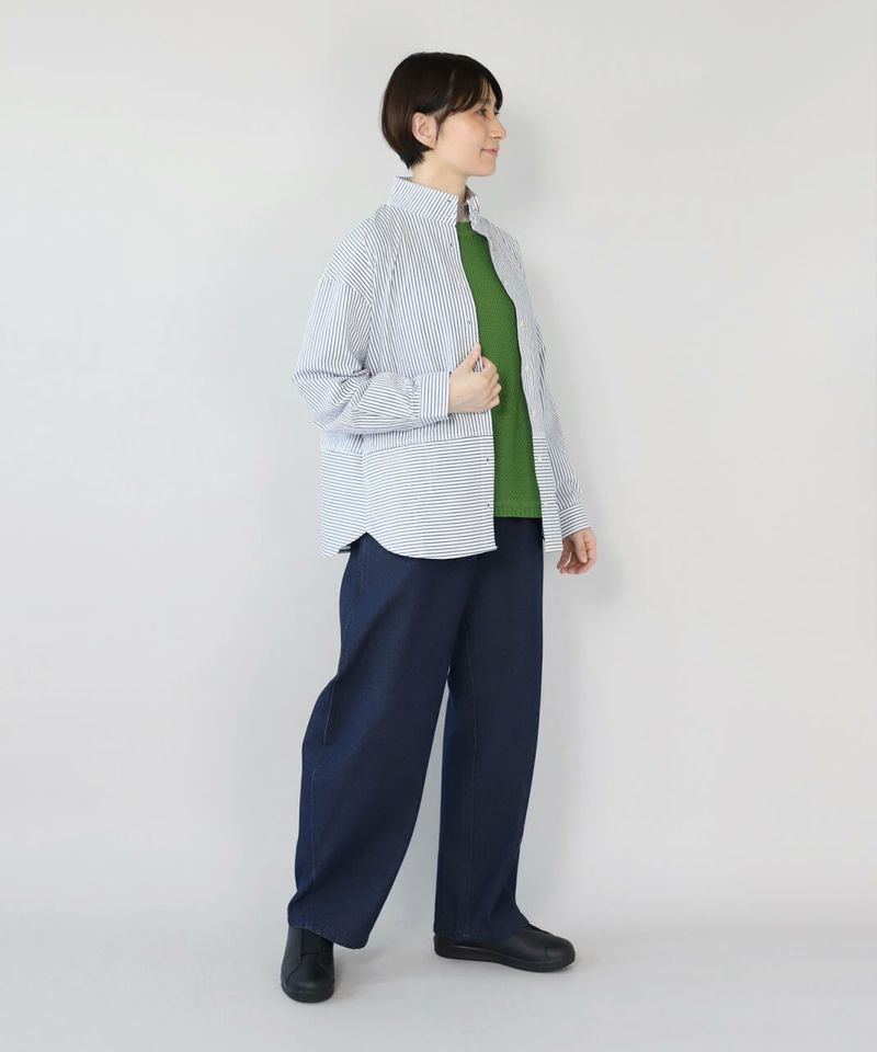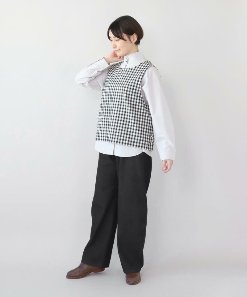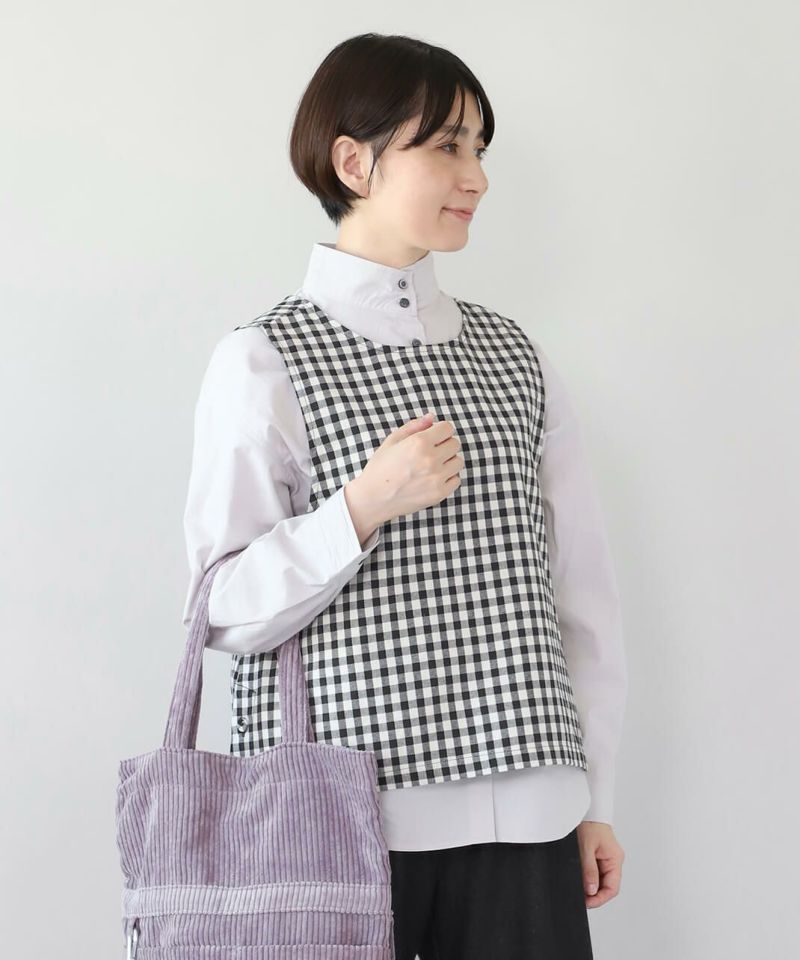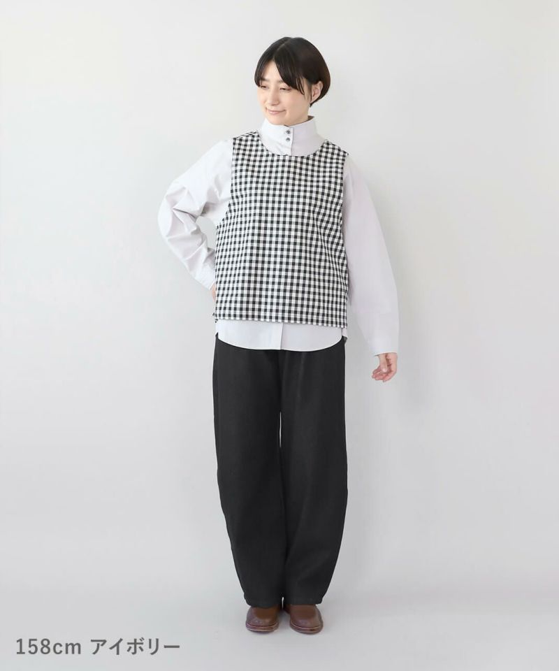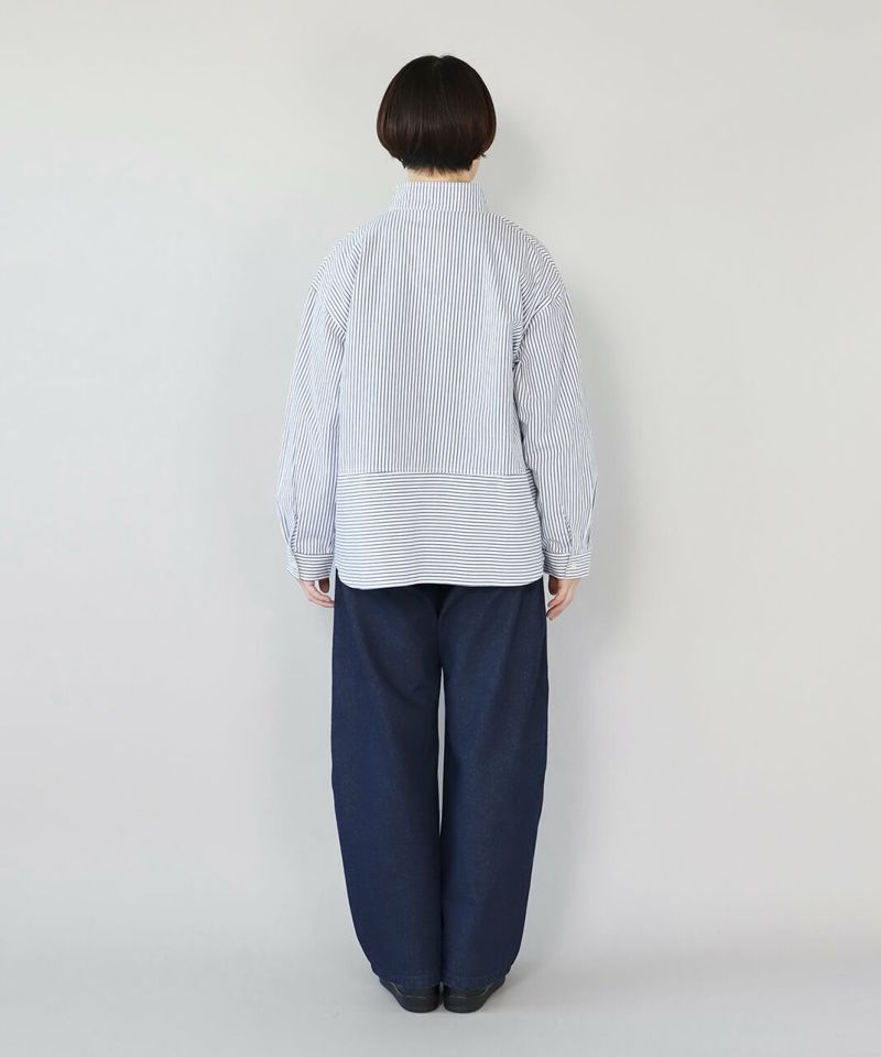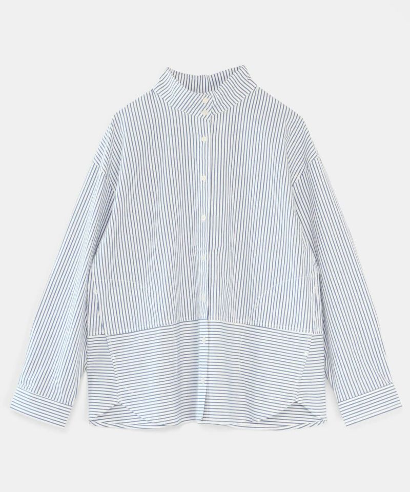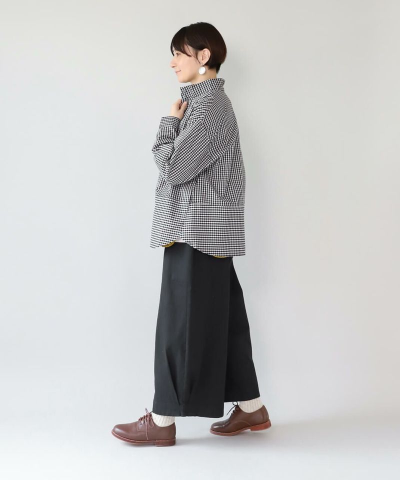 コットン素材を使用したハイネックブラウスです。きれいなハイネックに、裾の切替えとポケットがポイント。重ね着でインナーとしても、ボタンを開けて羽織りとしても活用できる1着です。