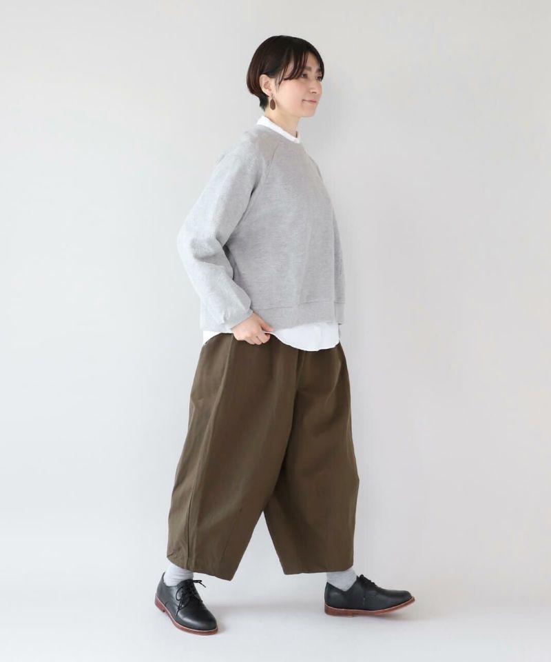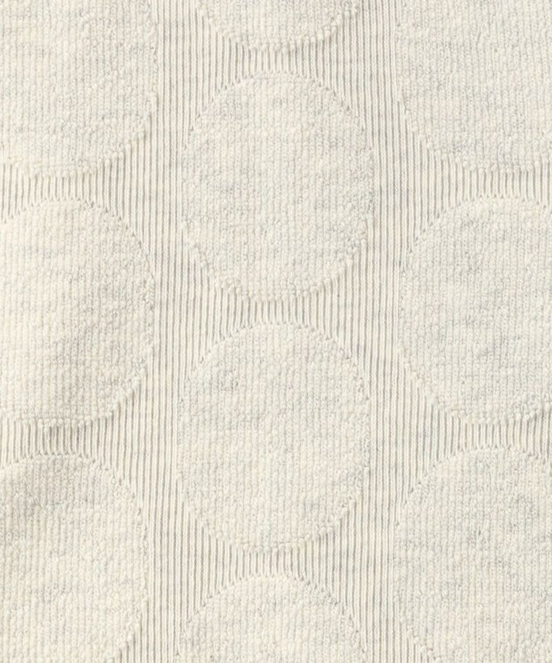 程よい厚みと伸縮性のあるカットソー生地を使用したプルオーバーです。シンプルなクルーネックとゆったりしたシルエットでらくちんな着心地の1着です。ジャガード織りのドット柄が目立ちすぎず、コーディネートのアクセントになります。