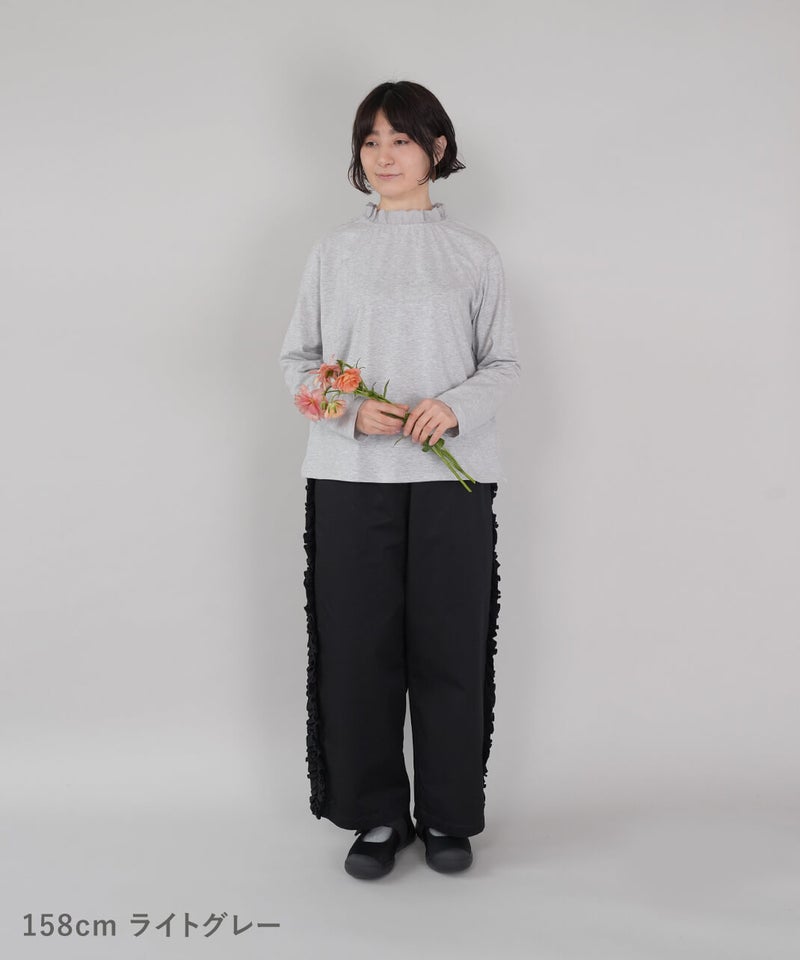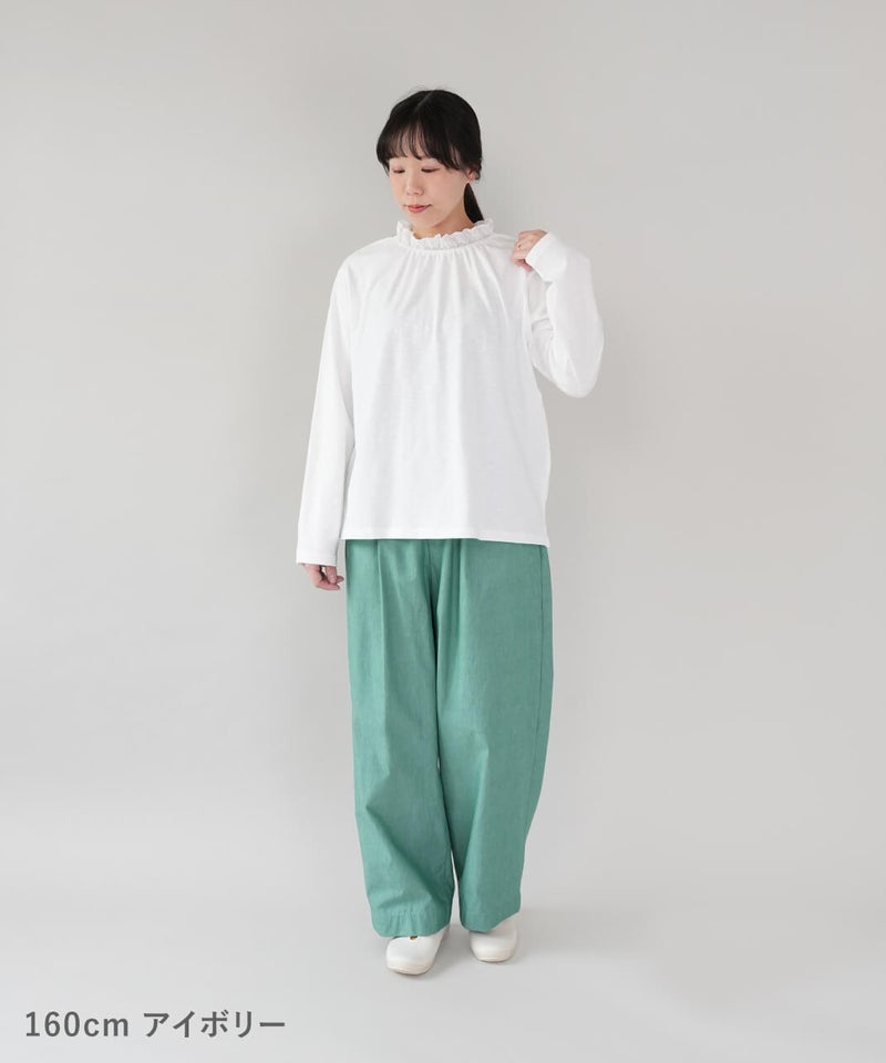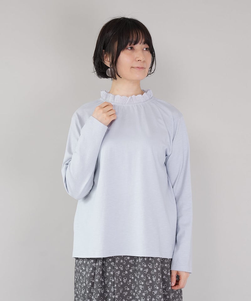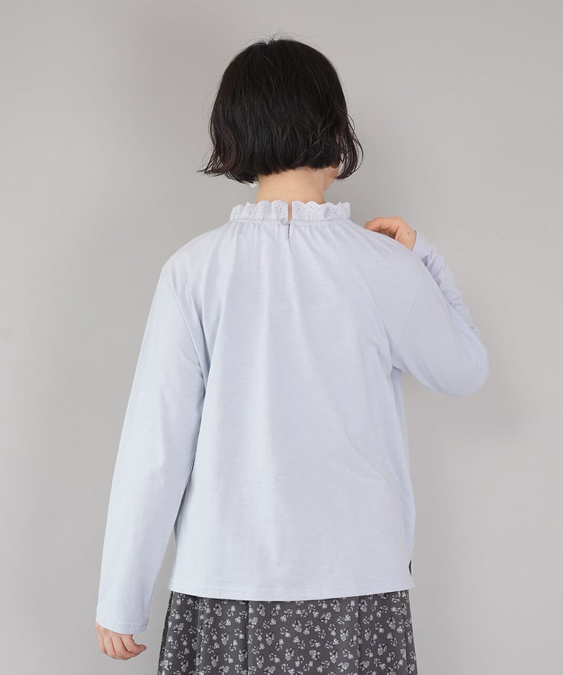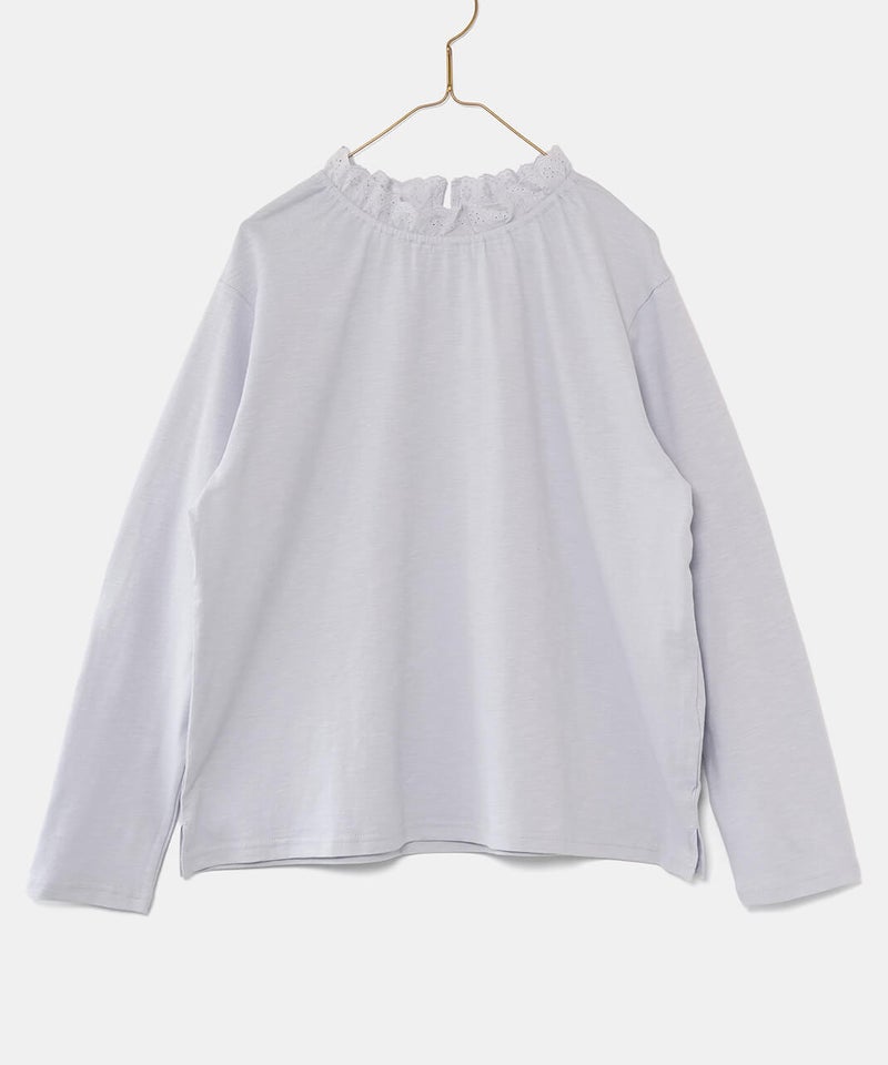 首元にフリルをあしらったカットソーです。 肌触りの良いコットン素材を使用。 ネック周りに繊細なコットンレースをあしらい、程よい甘さのナチュラル感を演出してくれます。