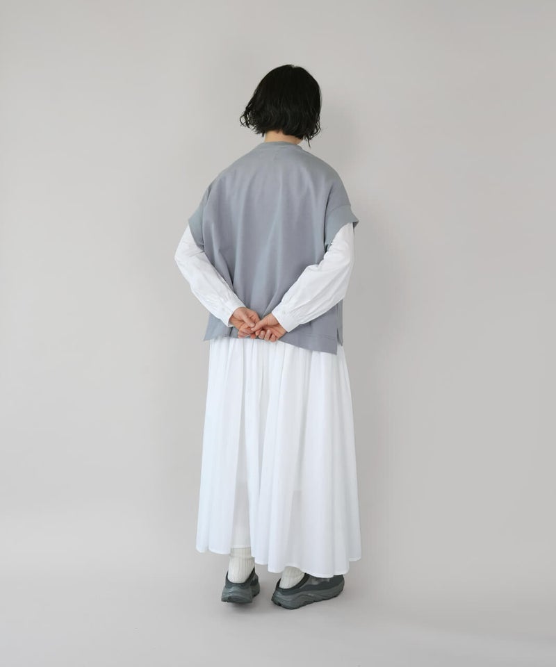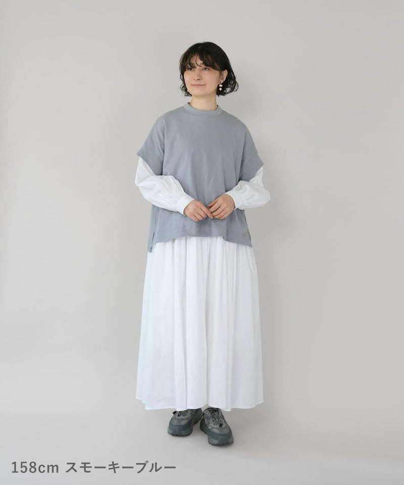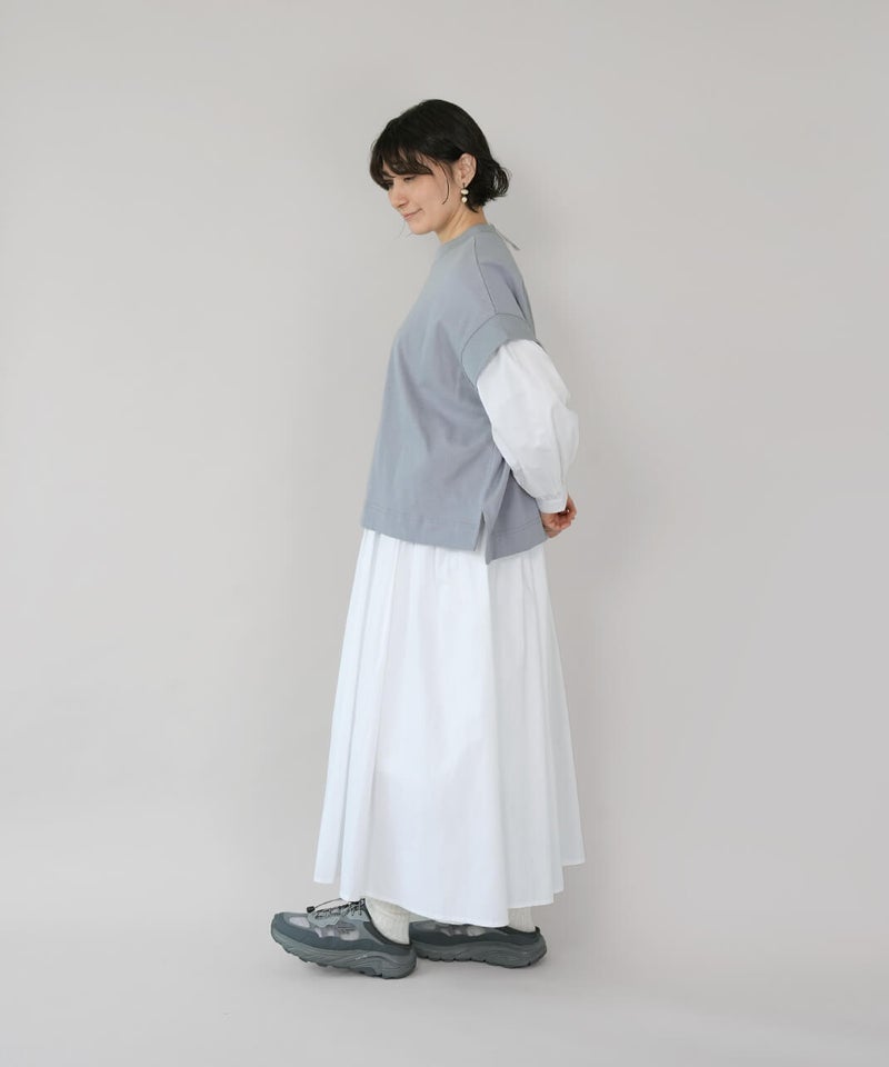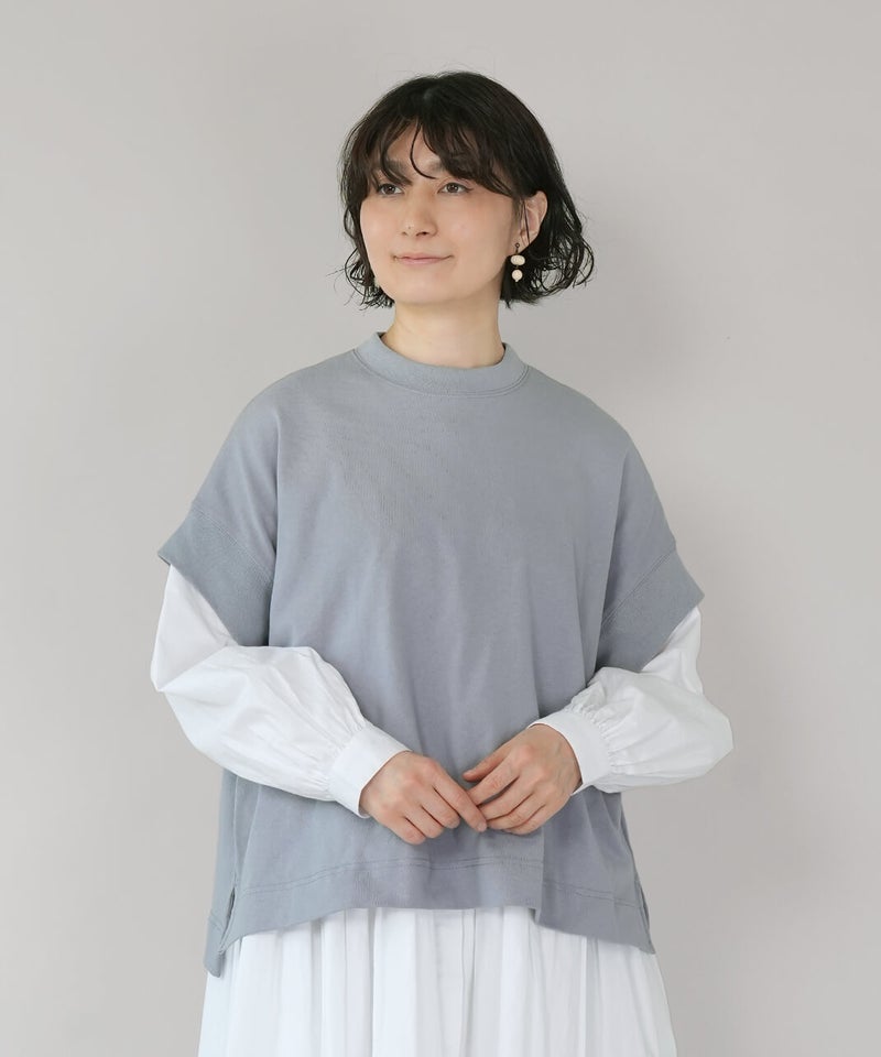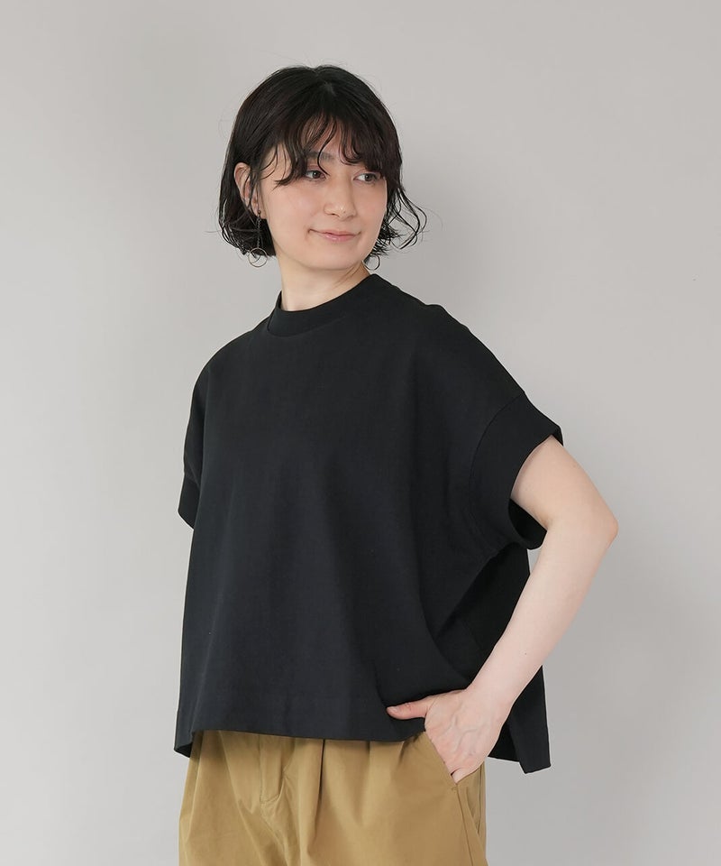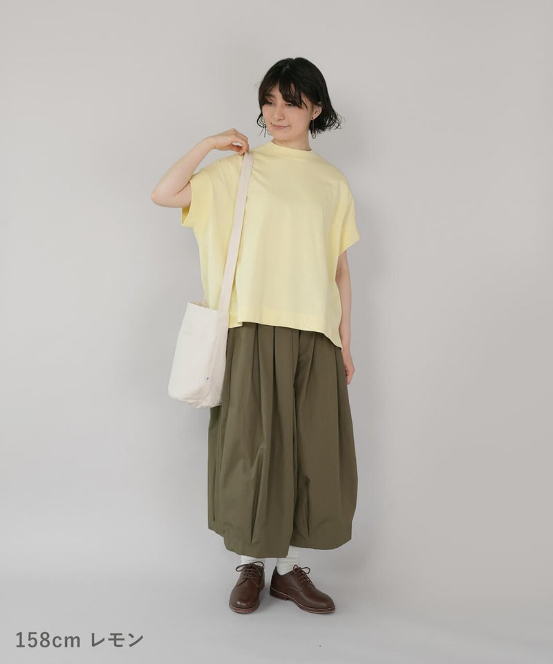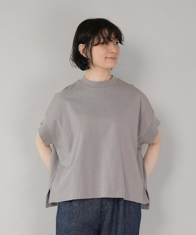 ワイドなボックスシルエットと程よい長さのフレンチ袖でゆったりさの中にすっきりを見せてくれます。シンプルなデザインはコーディネートに馴染みやすく、重宝する1着です。生地にUV加工を施しているため、紫外線遮蔽率90%以上(白は80%以上)です。