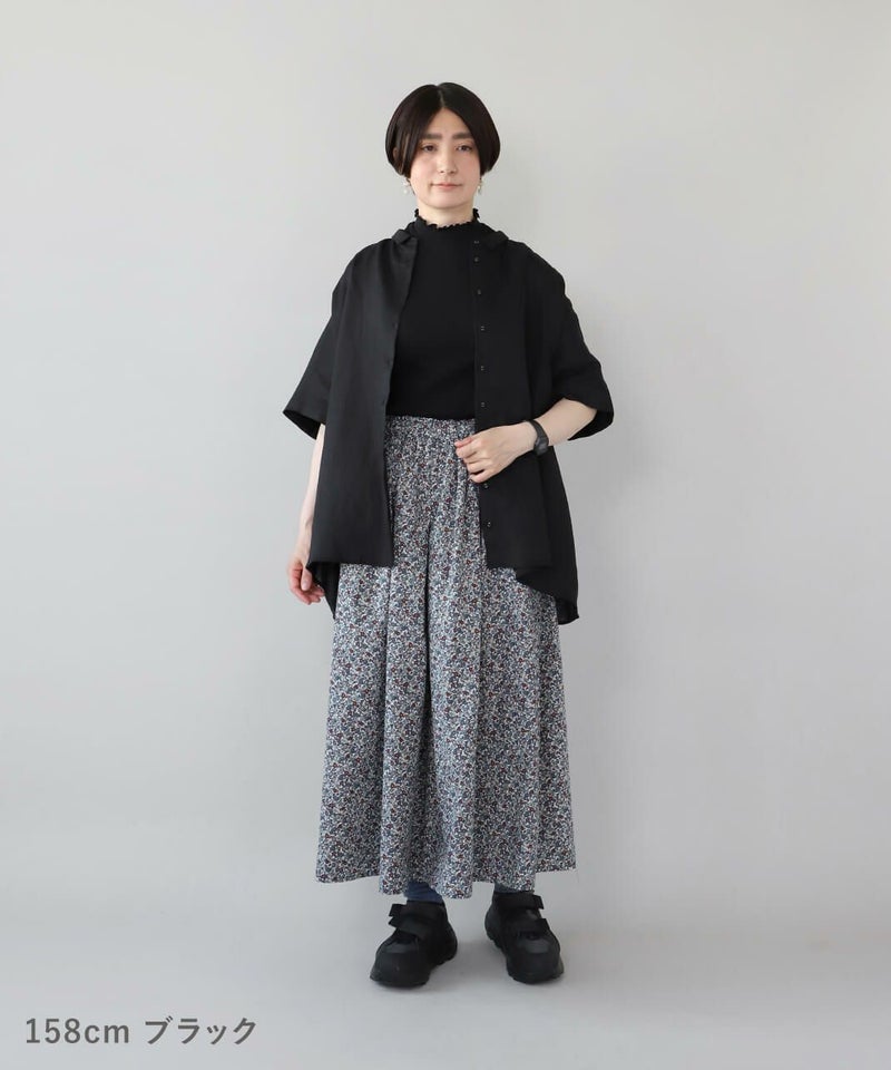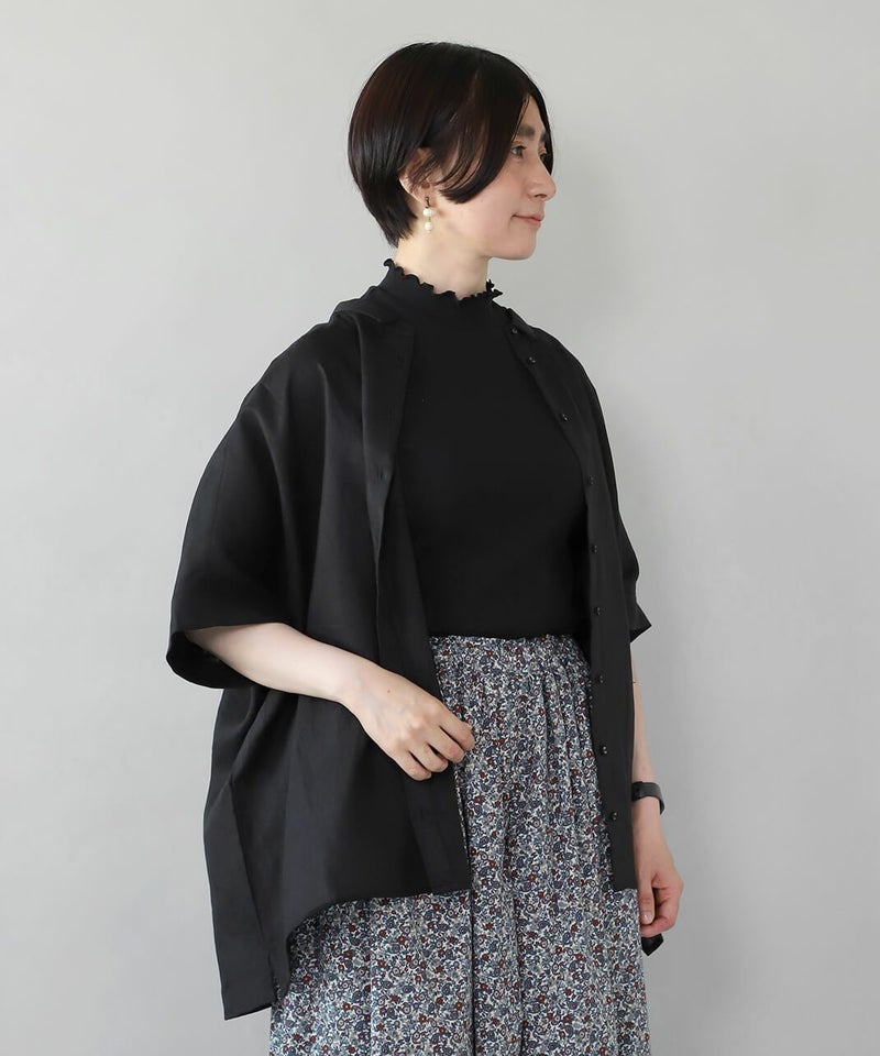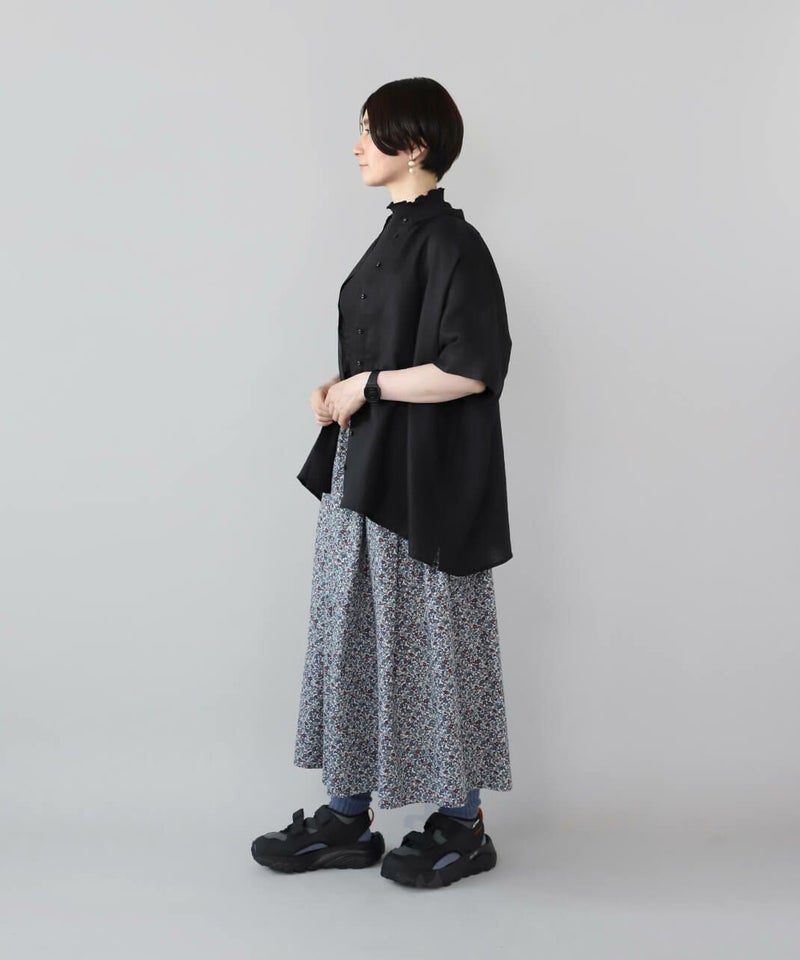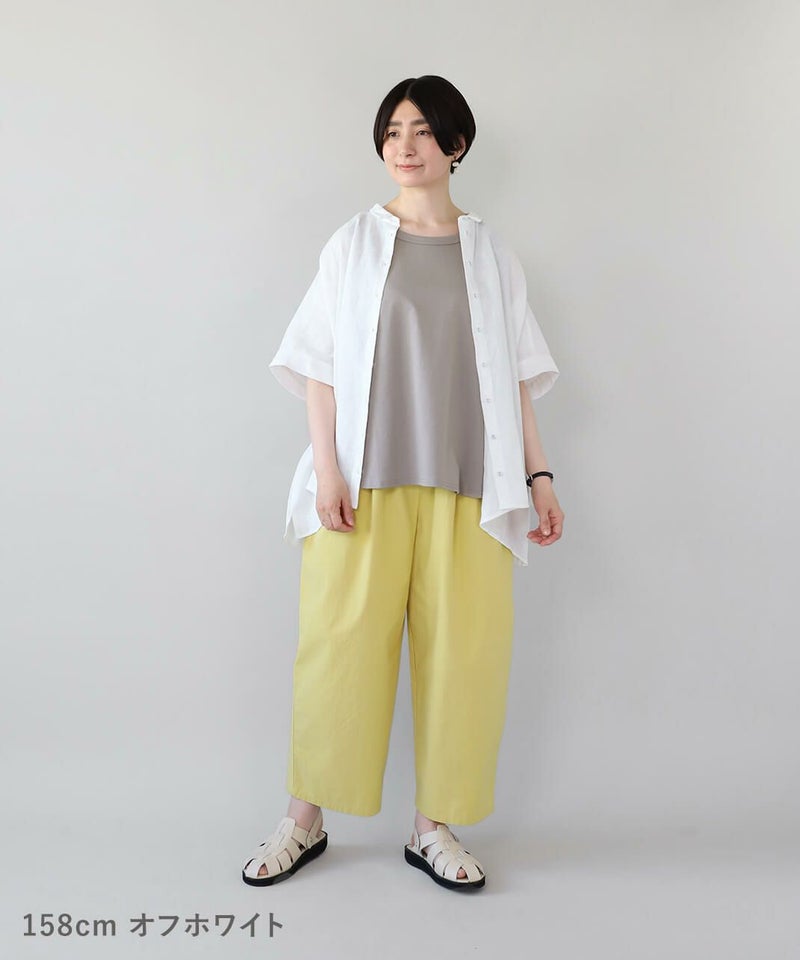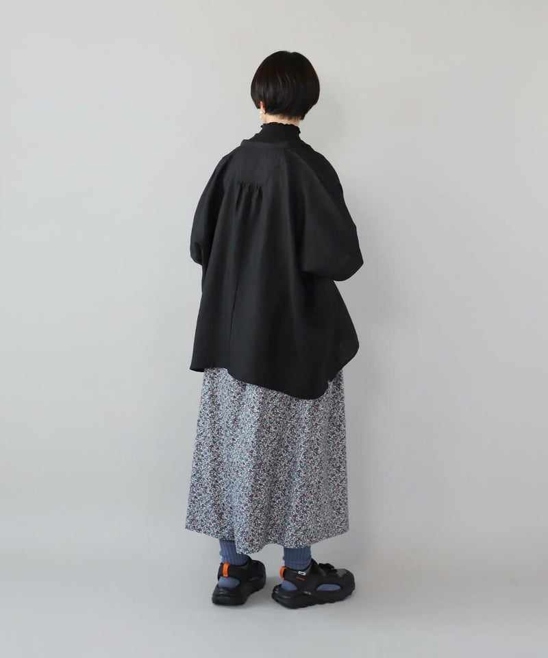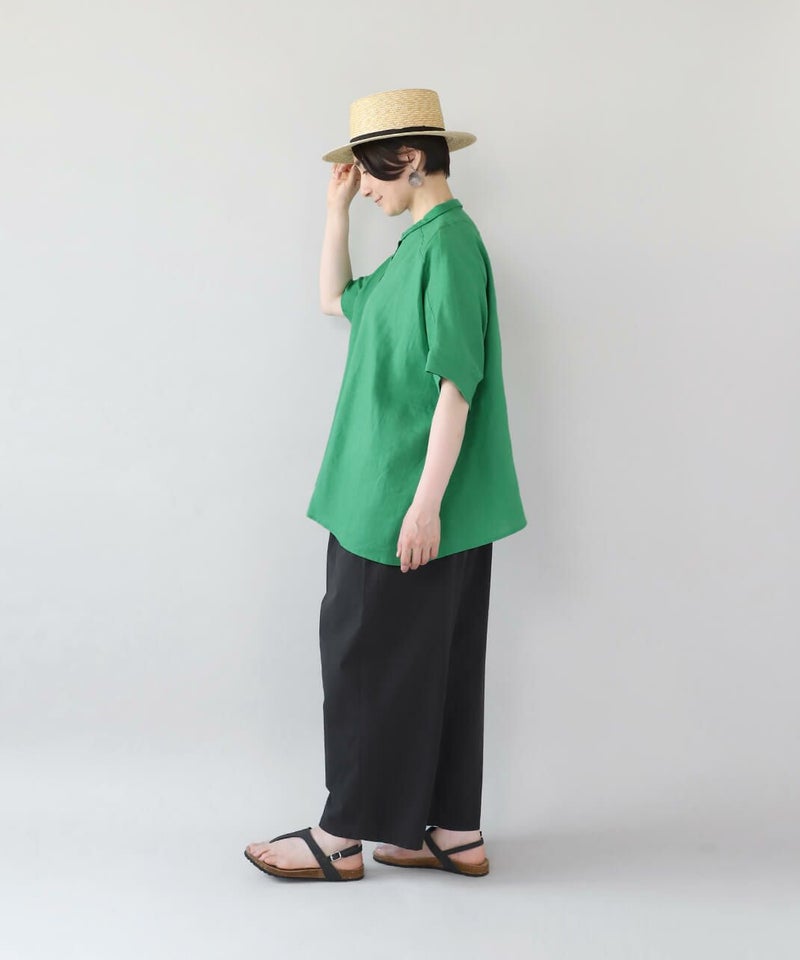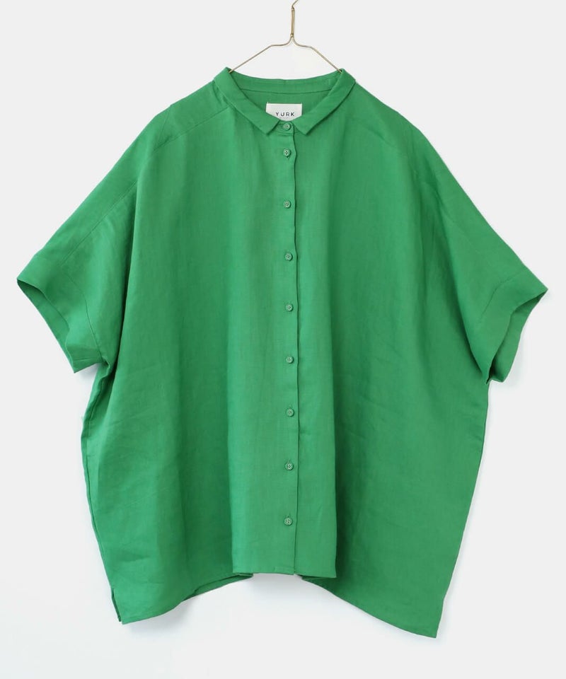 やや光沢のあるリネンを使用した小さな襟のワイドブラウスです。 ワイドなボックスシルエットでゆったりとリラックスした着心地。同じリネン生地のくるみボタンを使用しています。肩周辺の切替えは身体に沿うようにデザインされています。シンプルながら洗練されたナチュラルな雰囲気を演出してくれます。 きれいなシルエットなので、羽織りとしてもおすすめです。