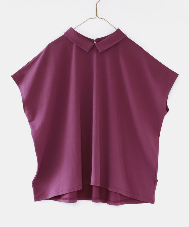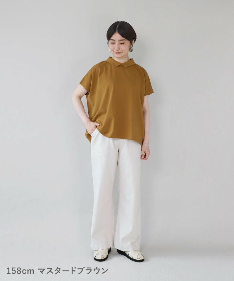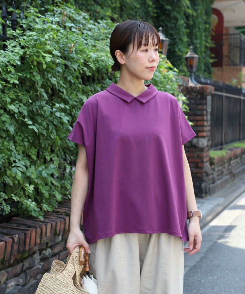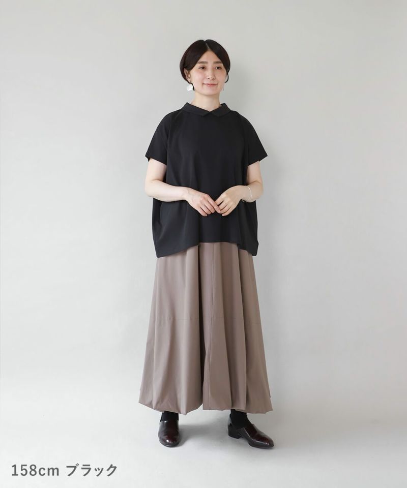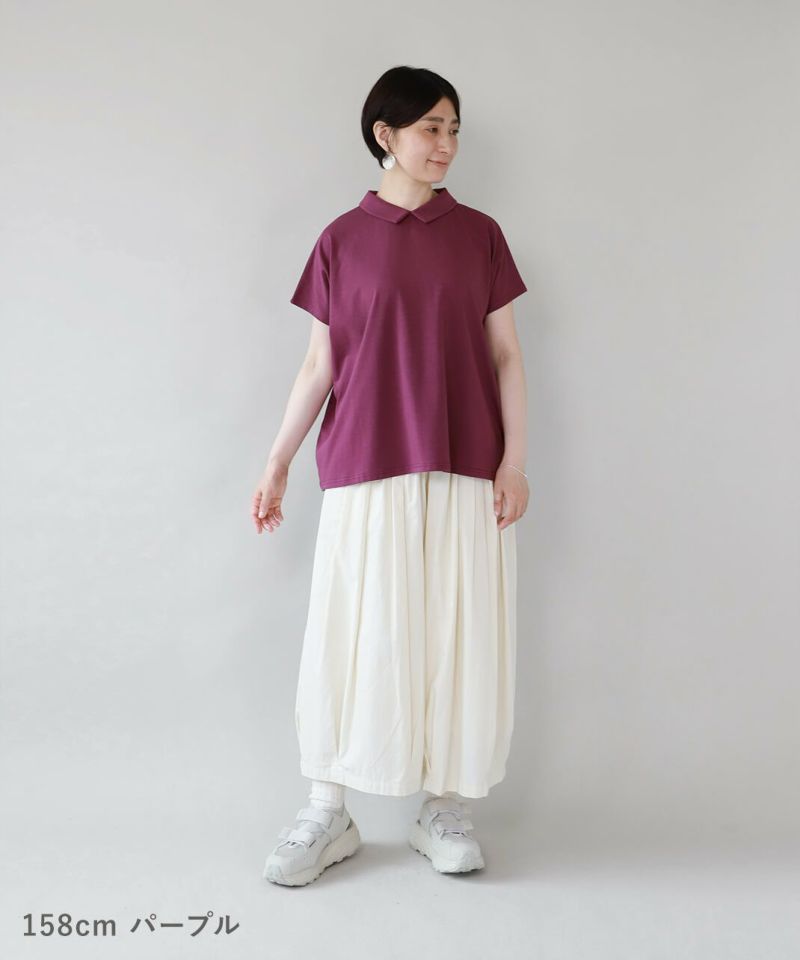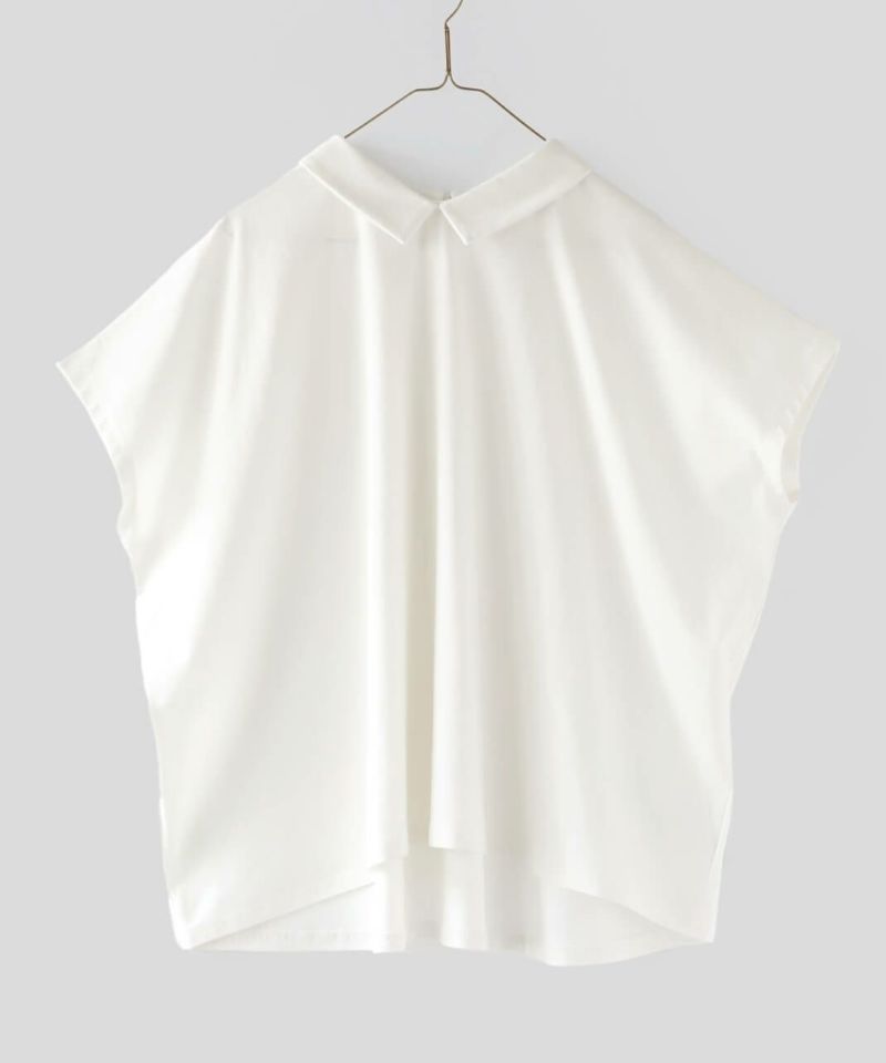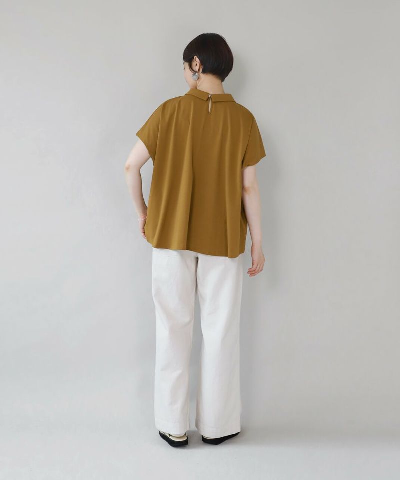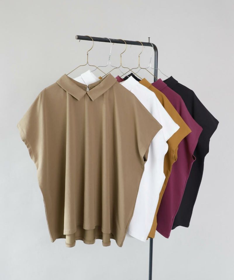 ほのかな光沢感と伸縮性のある生地を使用した襟付きワイドカットソーです。