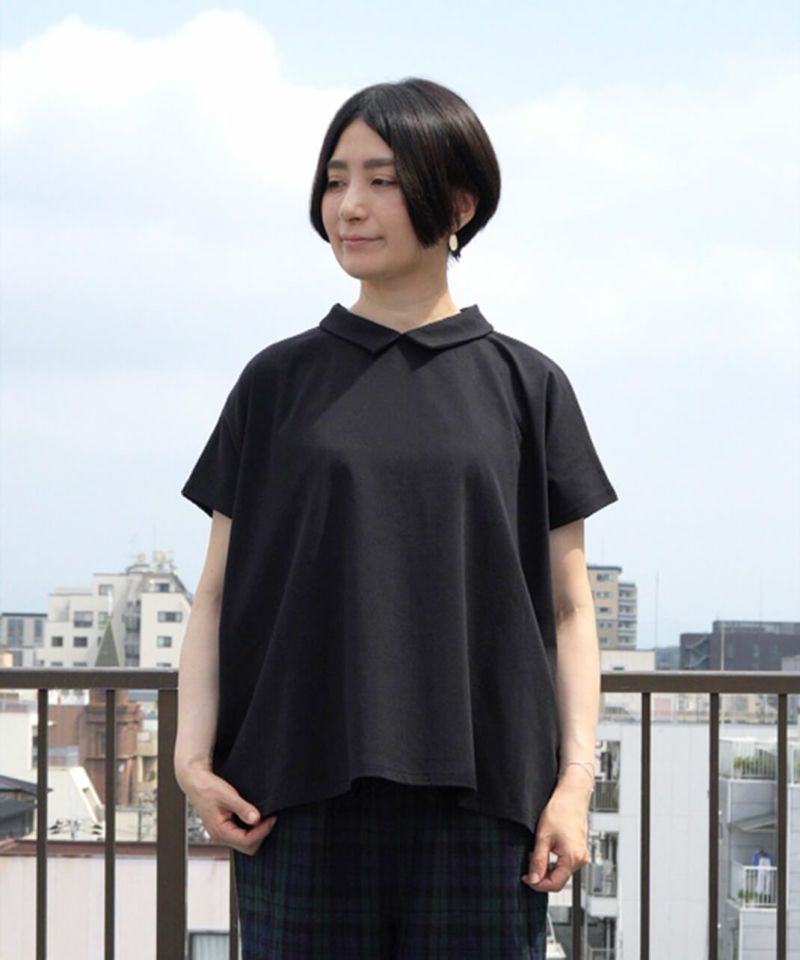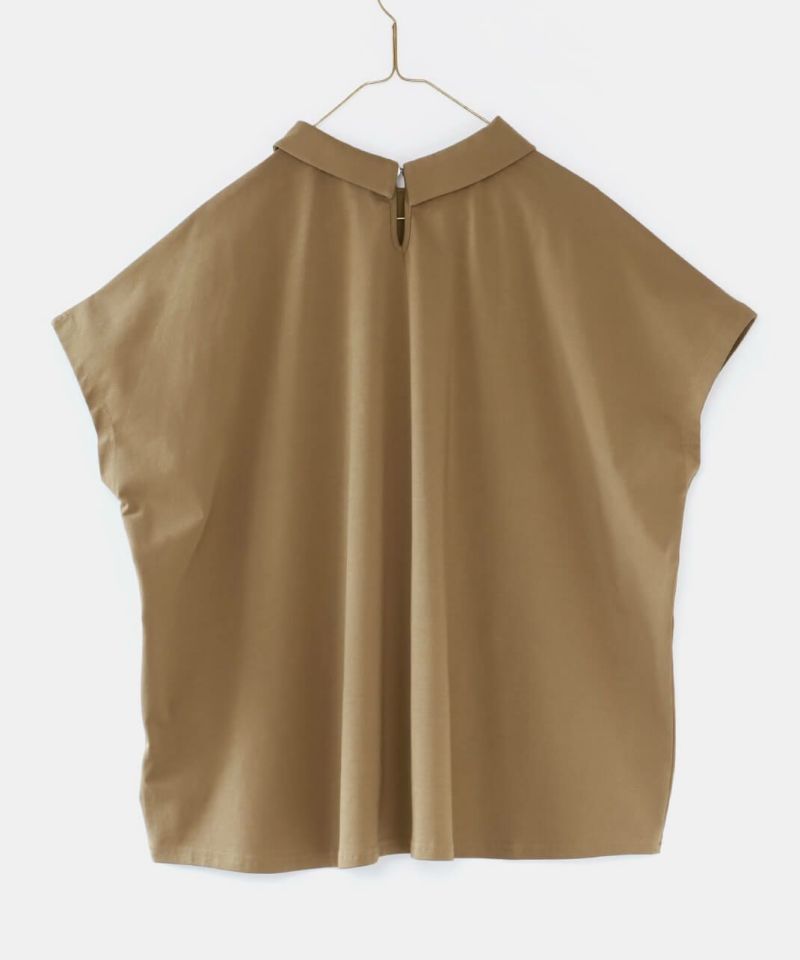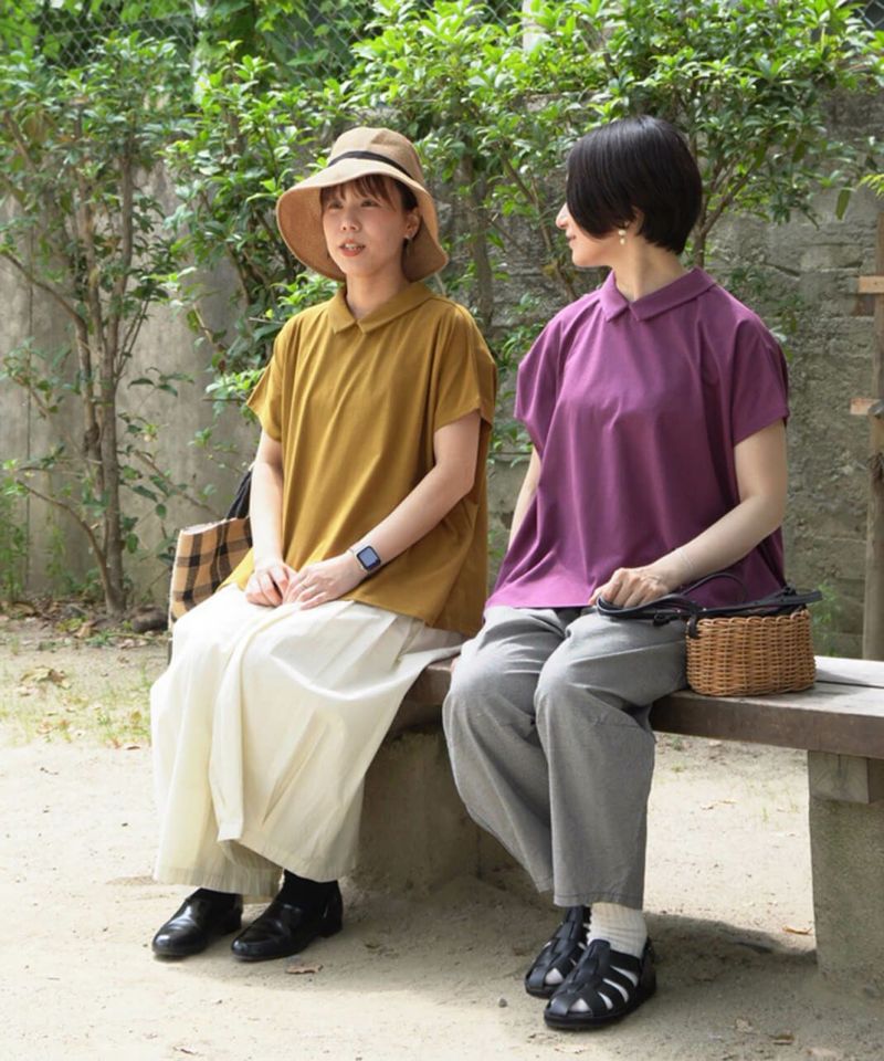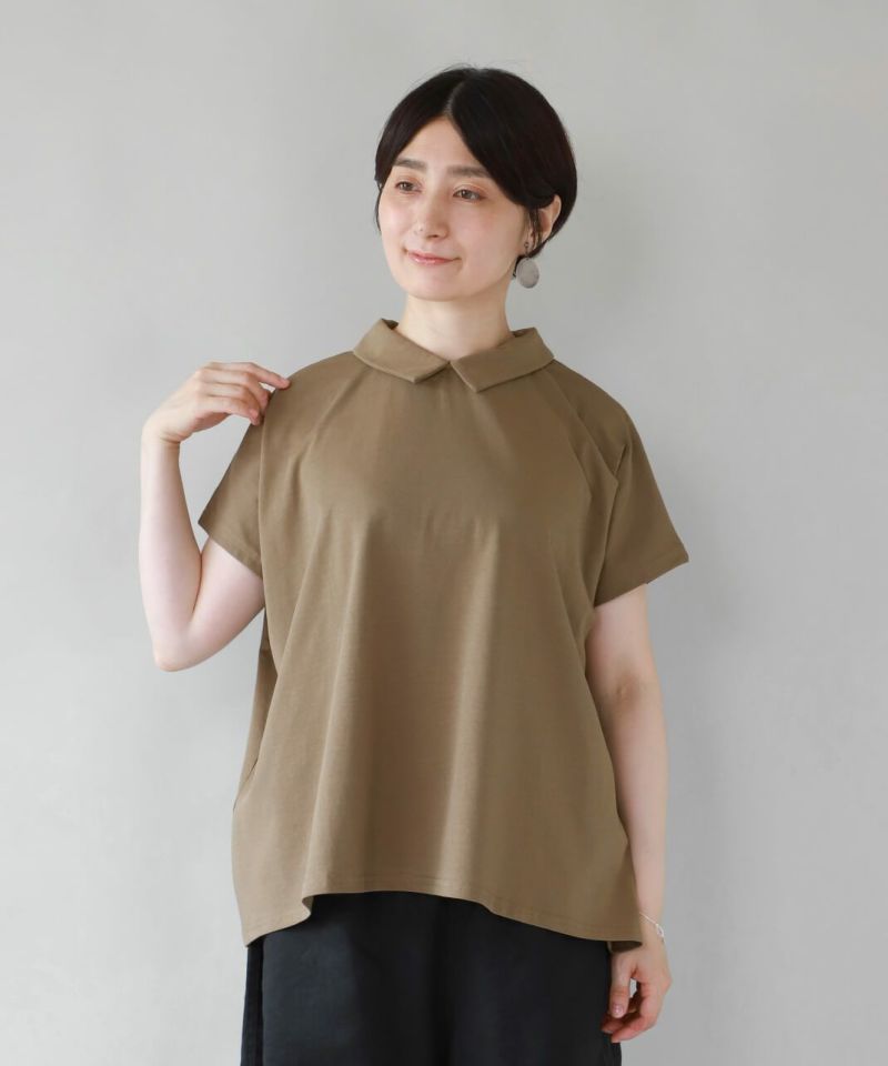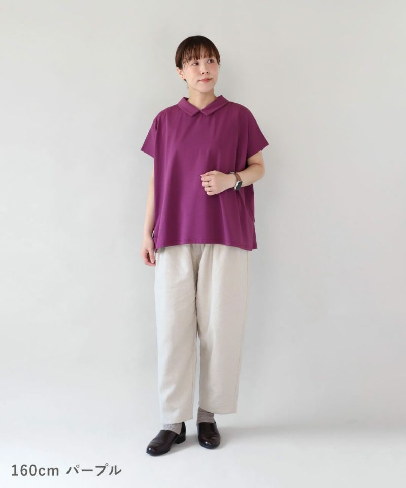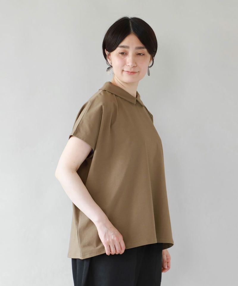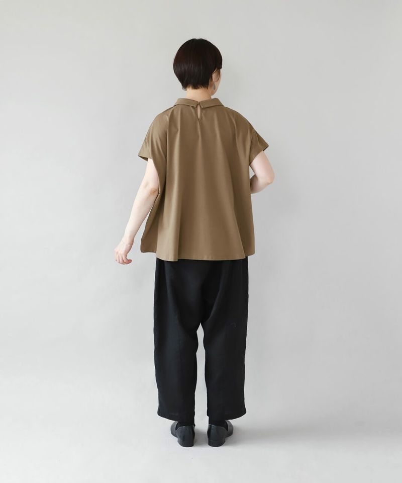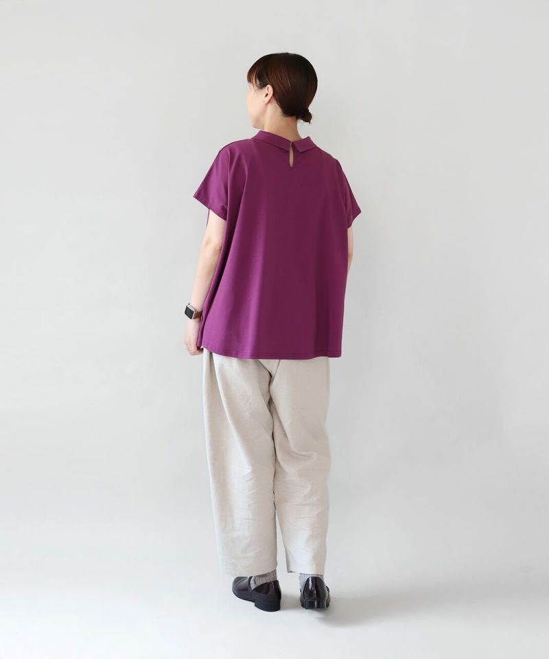 ほのかな光沢感と伸縮性のある生地を使用した襟付きワイドカットソーです。