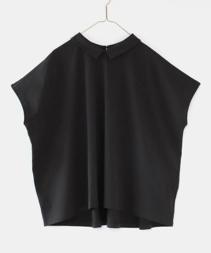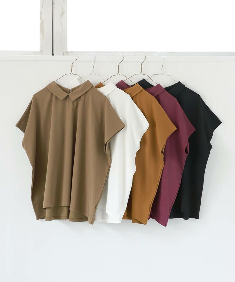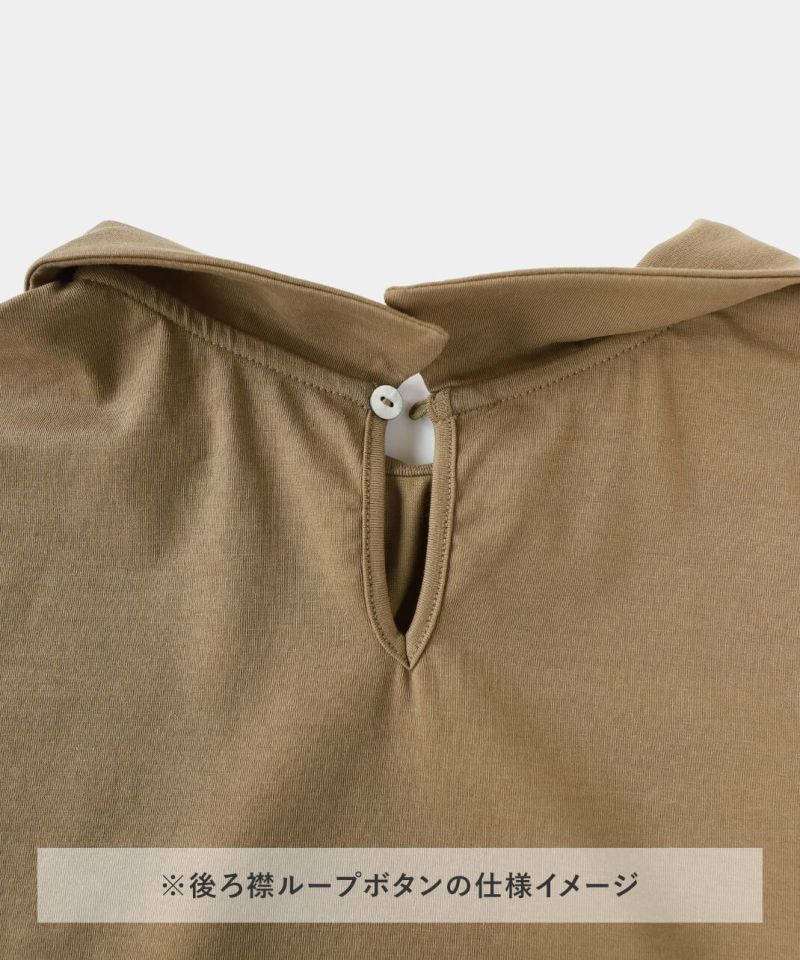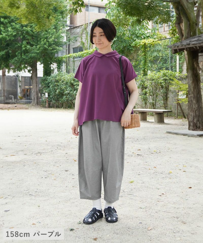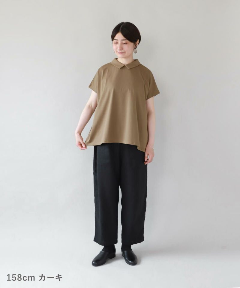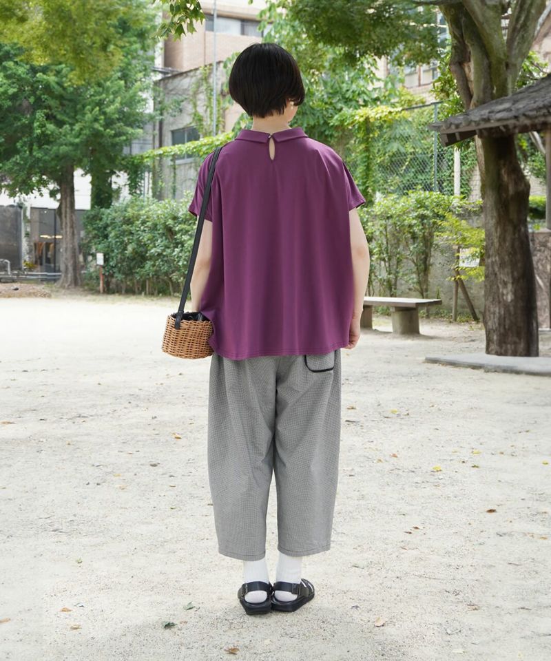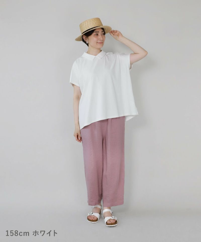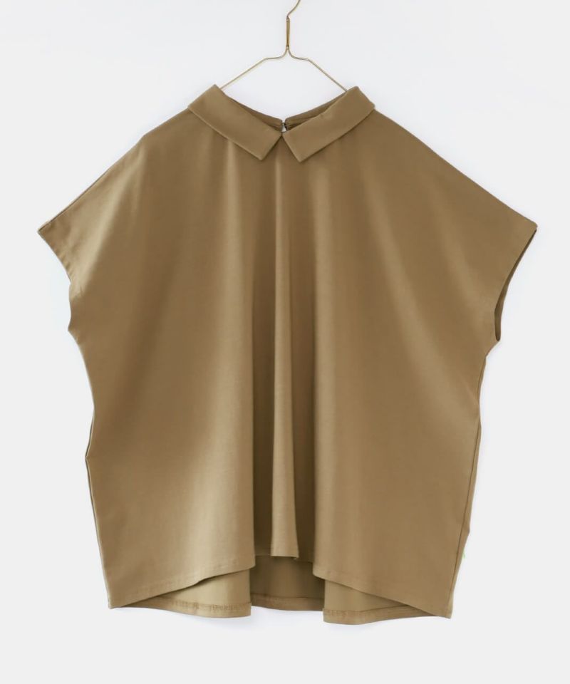 ほのかな光沢感と伸縮性のある生地を使用した襟付きワイドカットソーです。