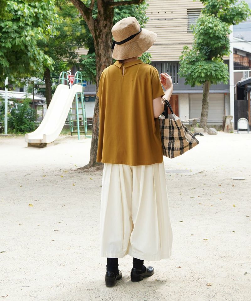 ゆったりとしたボックスシルエットは体のラインを拾いすぎず、リラックスした着心地。