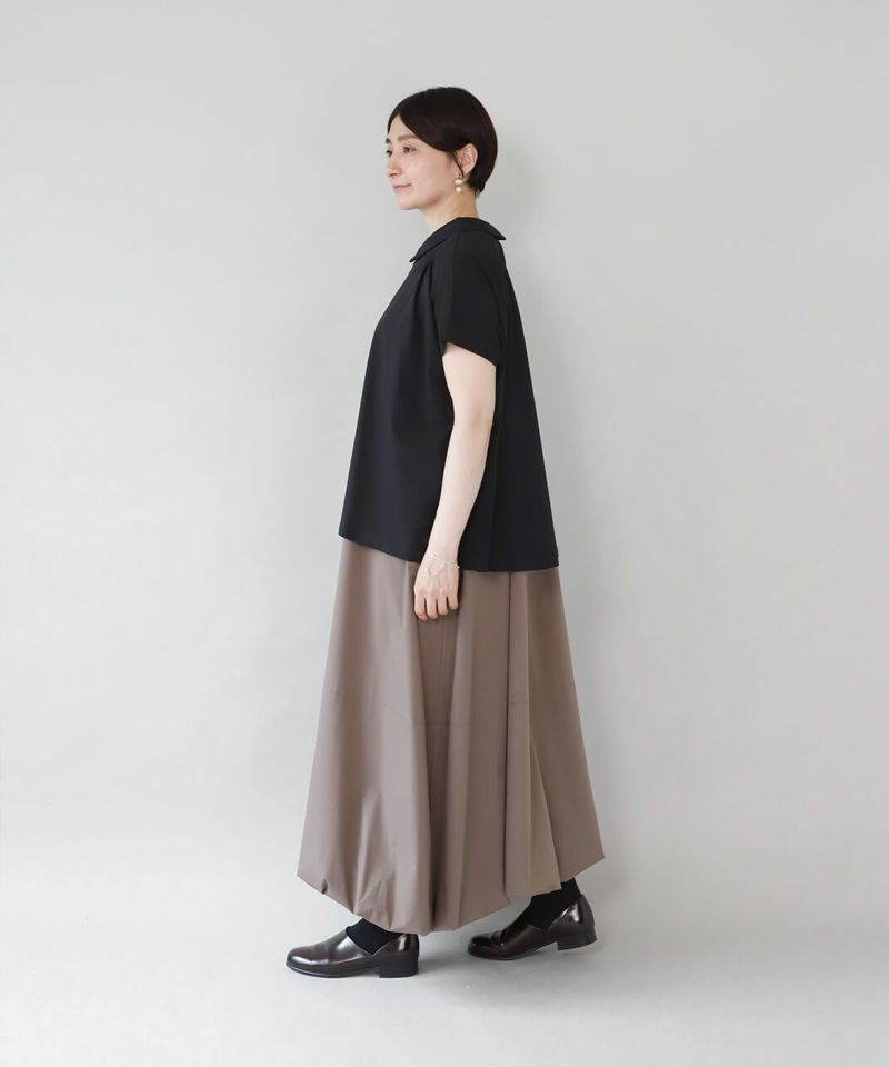 前後差のある裾デザインは自然なドレープを生み、動きのある表情に。