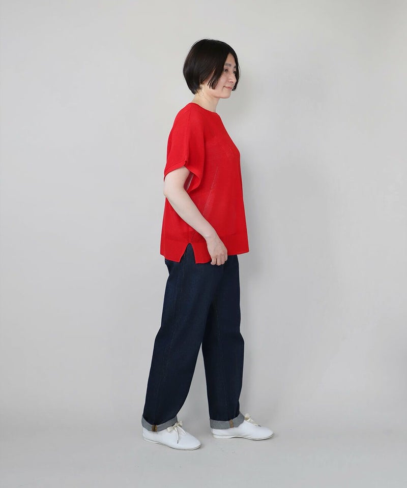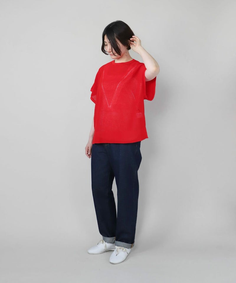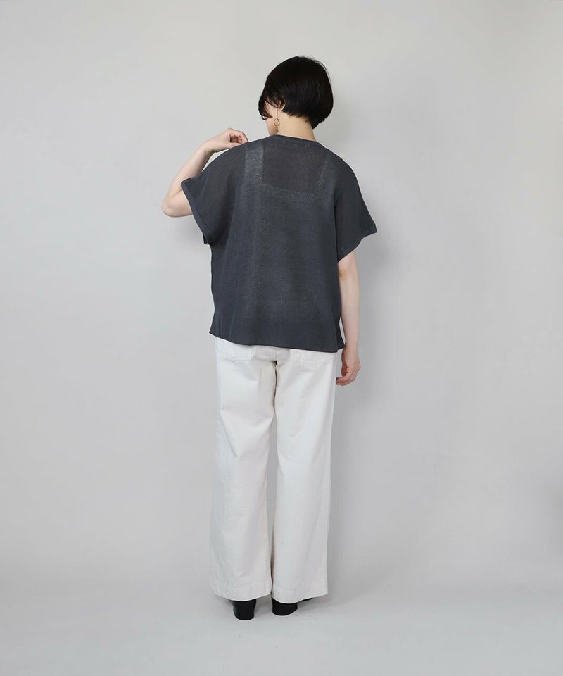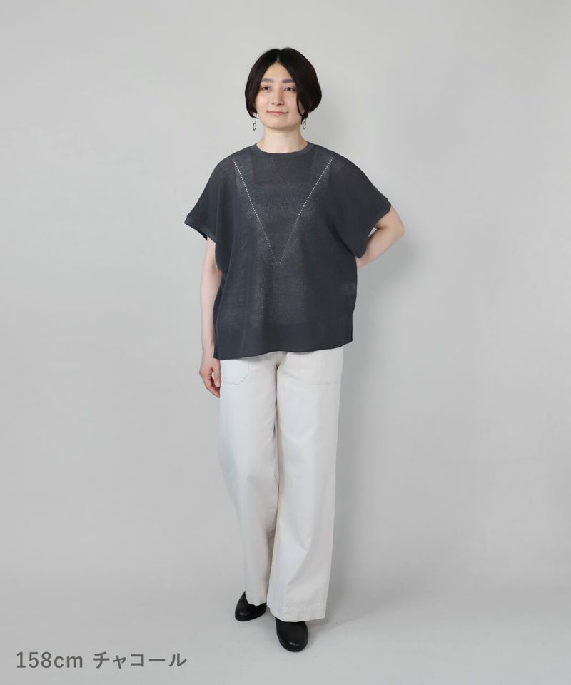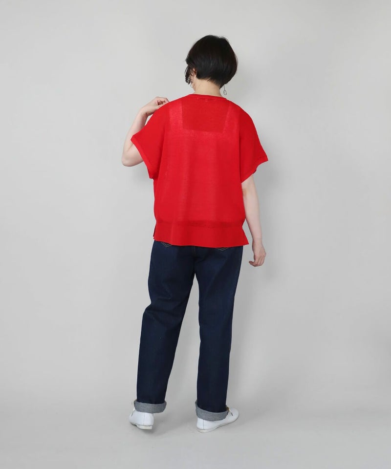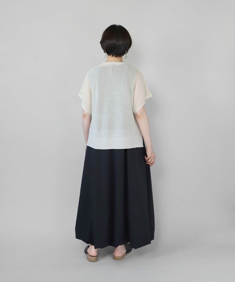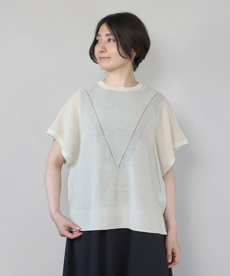 麻とリサイクルポリエステルをブレンドした糸を使用し、ふくらみのある畦編みで仕立てたニットベストです。 凹凸のあるシャリ感のドライタッチな肌触りと伸縮性が着心地を良くしてくれます。アイレットでさり気なく模様を入れ、シンプルながらもデザインにもこだわりが。タンクトップやカットソーはもちろん、ワンピースに合わせても様になる1着です。 ニット製品ながらご自宅で洗濯が可能なのも嬉しいポイントです。