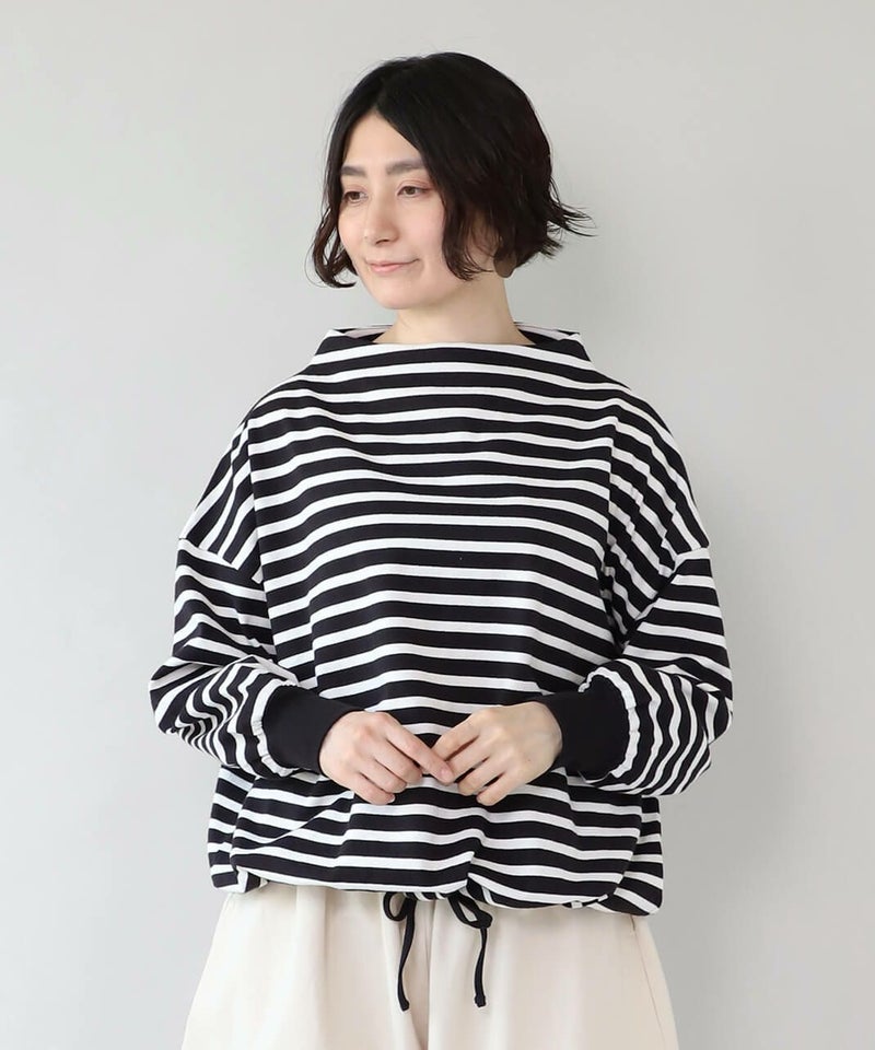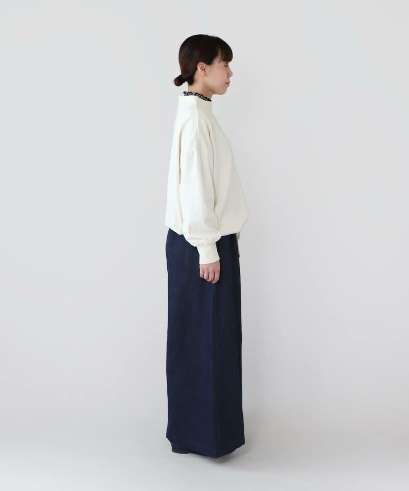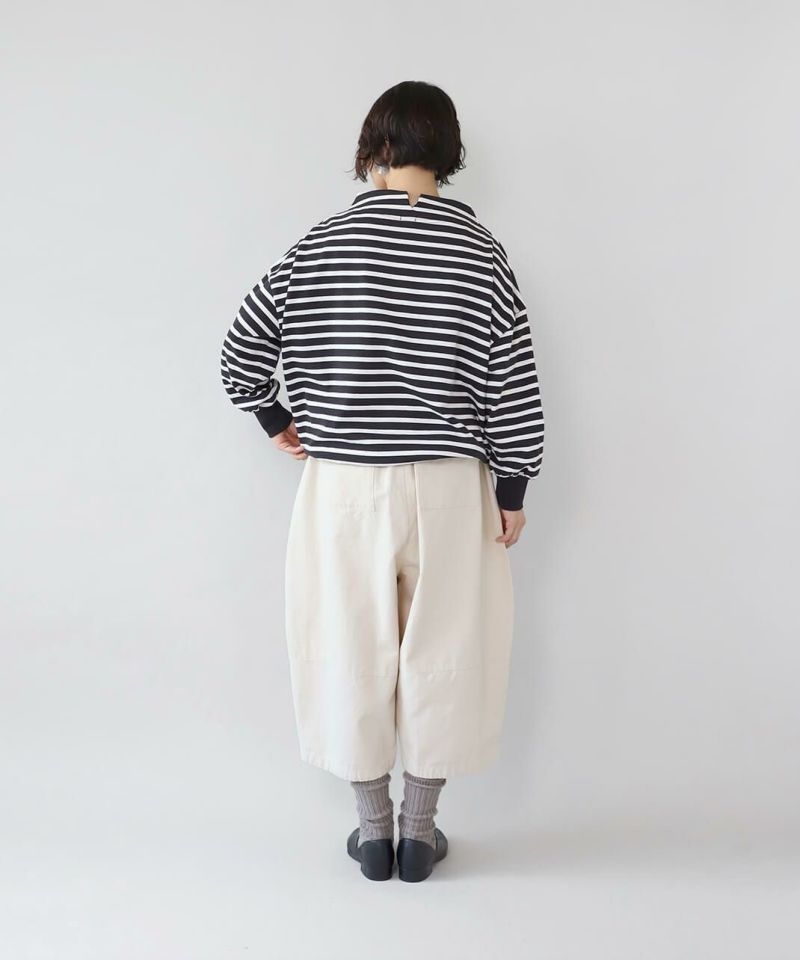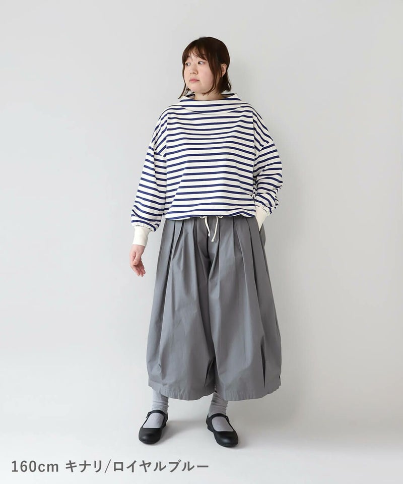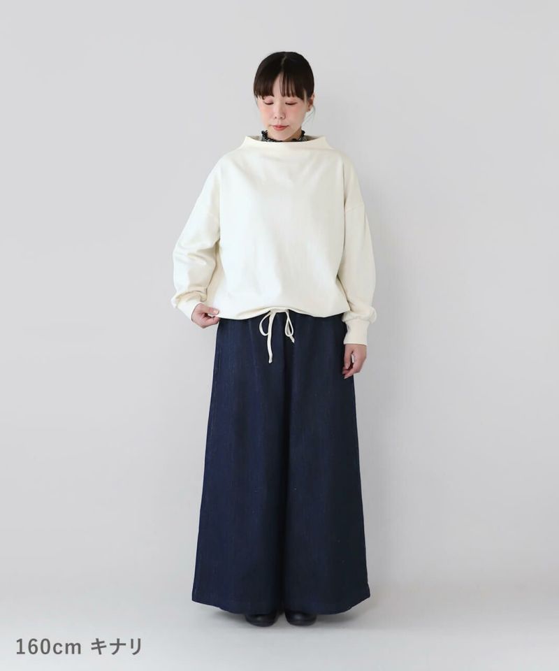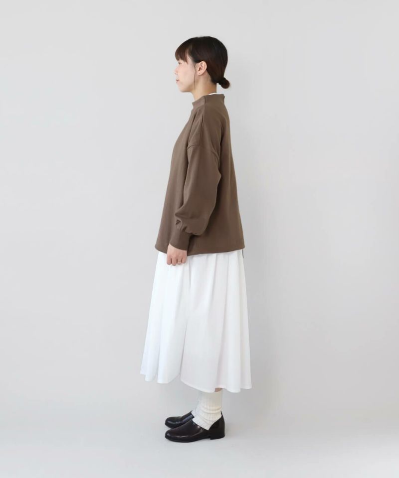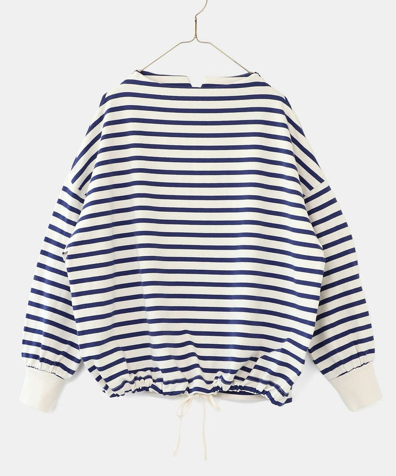 しっかりとした厚みで柔らかな肌触りのコットンを使用したプルオーバーです。 裾にぐるりと紐が入っているので、自分好みのバルーンシルエットに出来る楽しい1着です。ボトルネックには後ろにスリットが入ったおしゃれなデザイン。袖先はリブ切替えのため、まくしあげることも可能です。ワイドな身頃とドロップショルダーでゆったりとした着心地。そのままの着用はもちろんですが、ワンピースとの重ね着にもおすすめです。